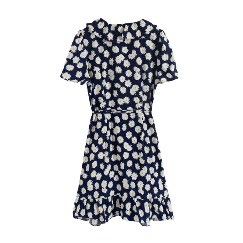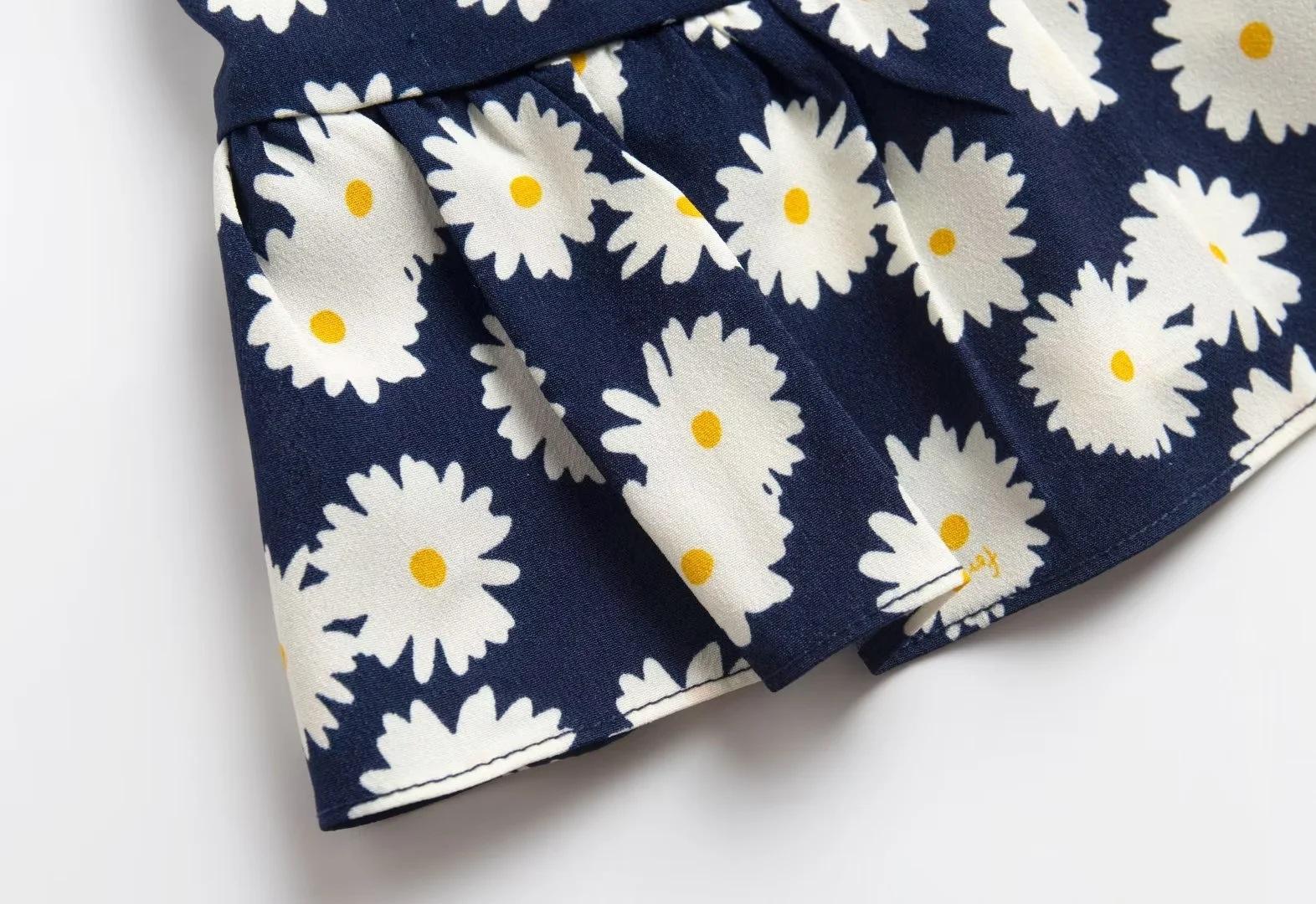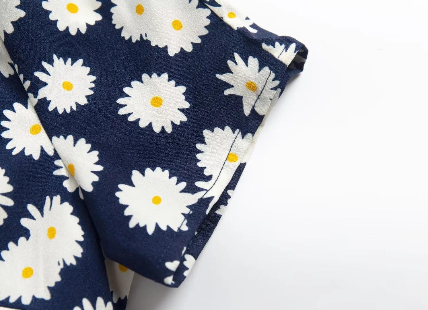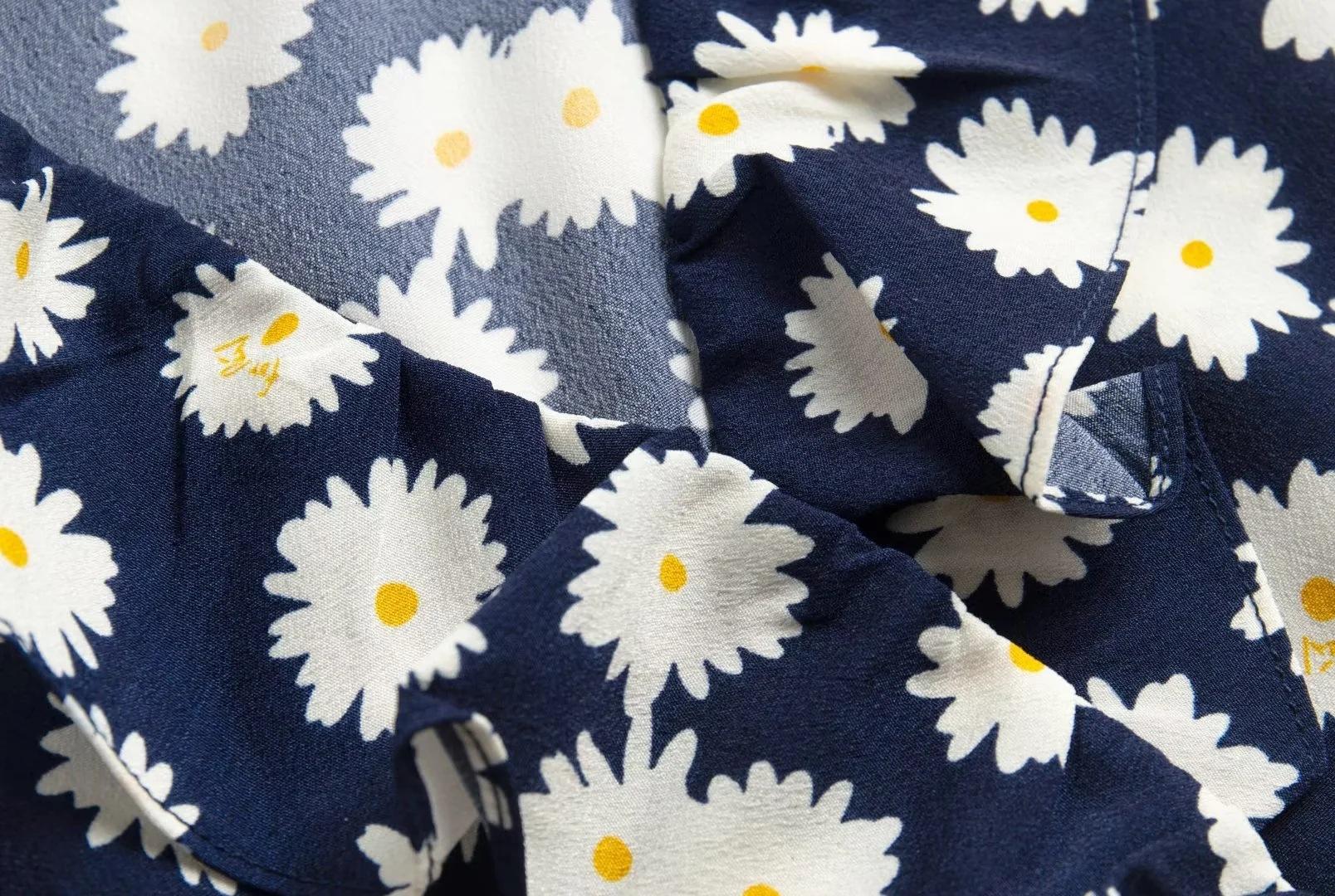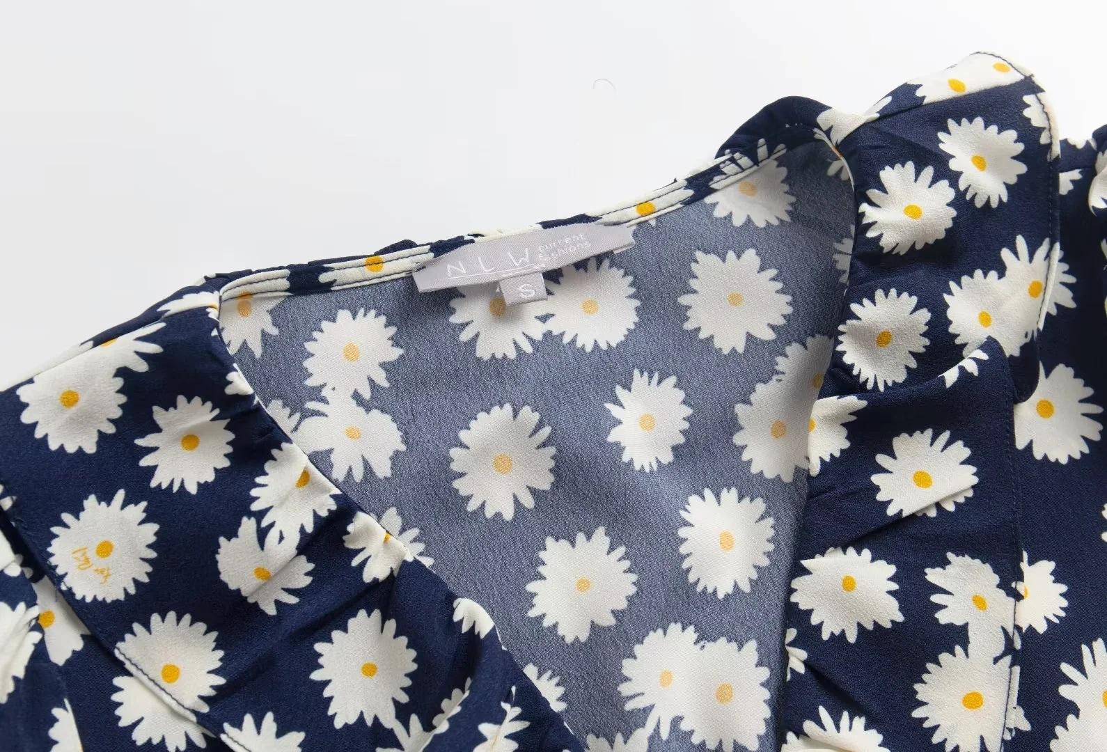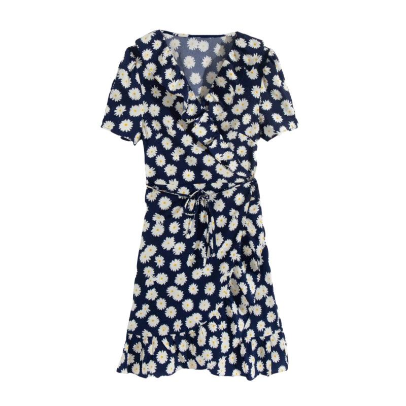 Vestido cruzado de cintura alta francesa con dobladillo con volantes y falda estampada elegante con cuello en V nuevo de verano