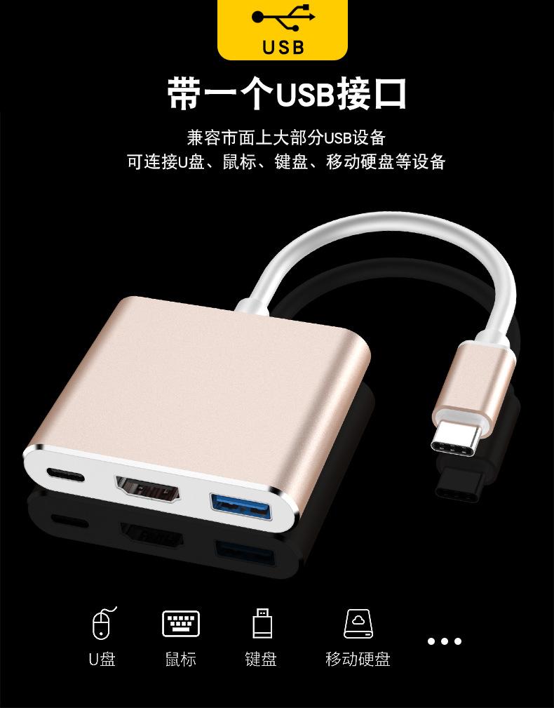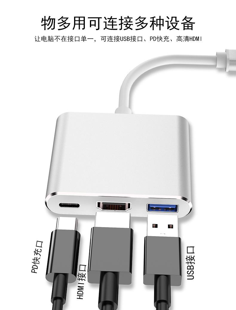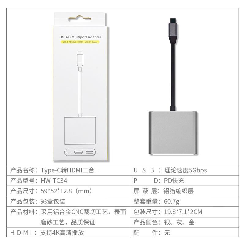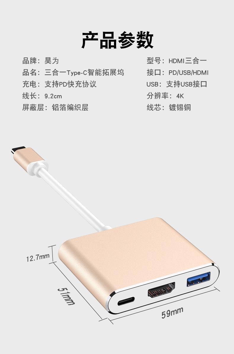 Estación de acoplamiento para concentrador de expansión transfronterizo tipo C a HDMI, tres en uno, USB PD para portátiles