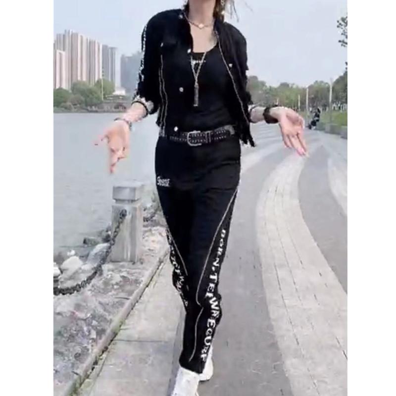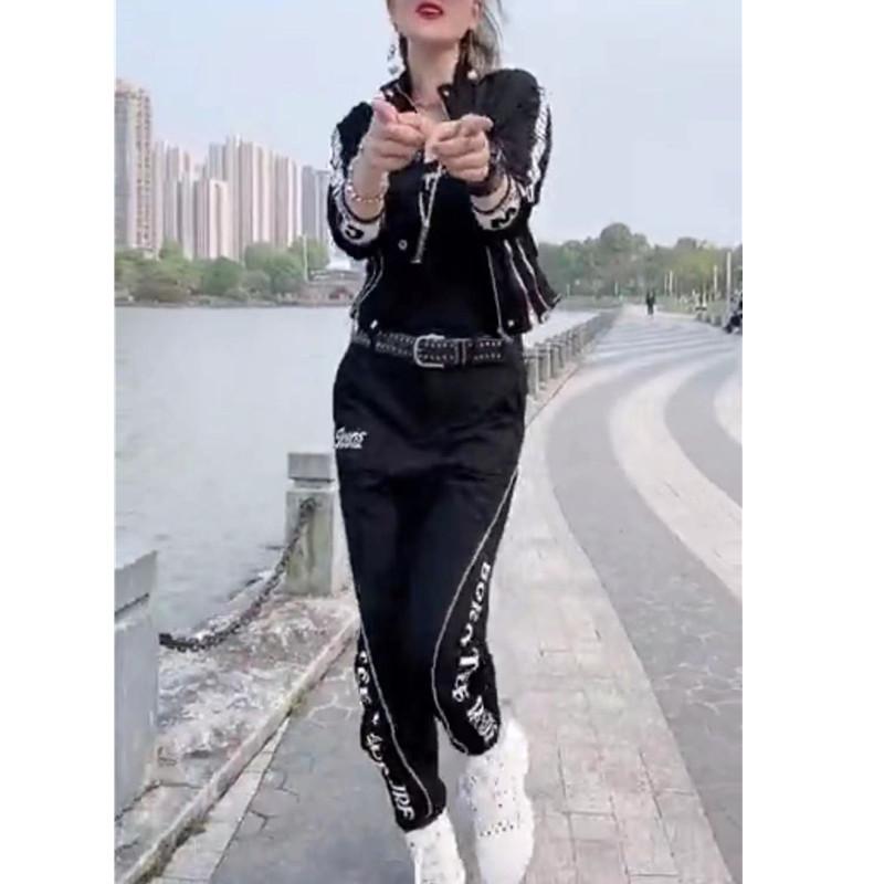 Chaqueta de Moda Primavera/Verano 2025 Nuevo Diseño de Cremallera con Pantalones Casuales con Letras Tendencia