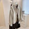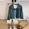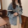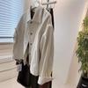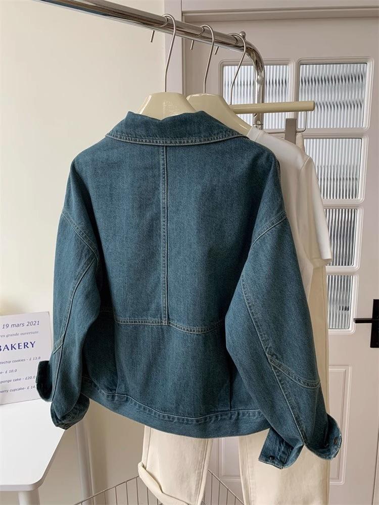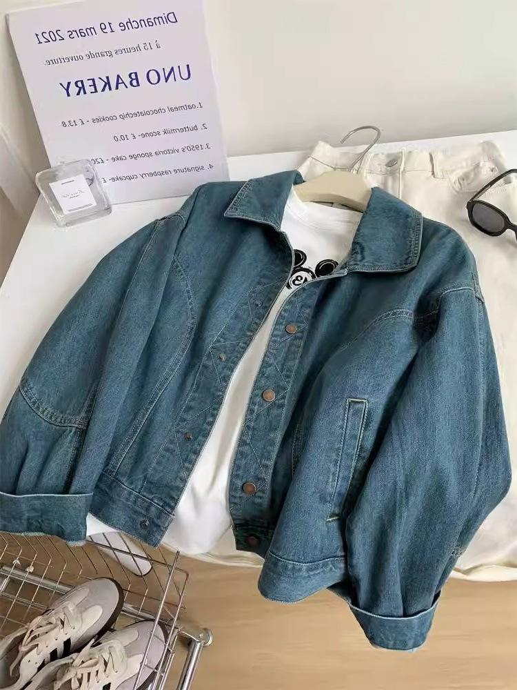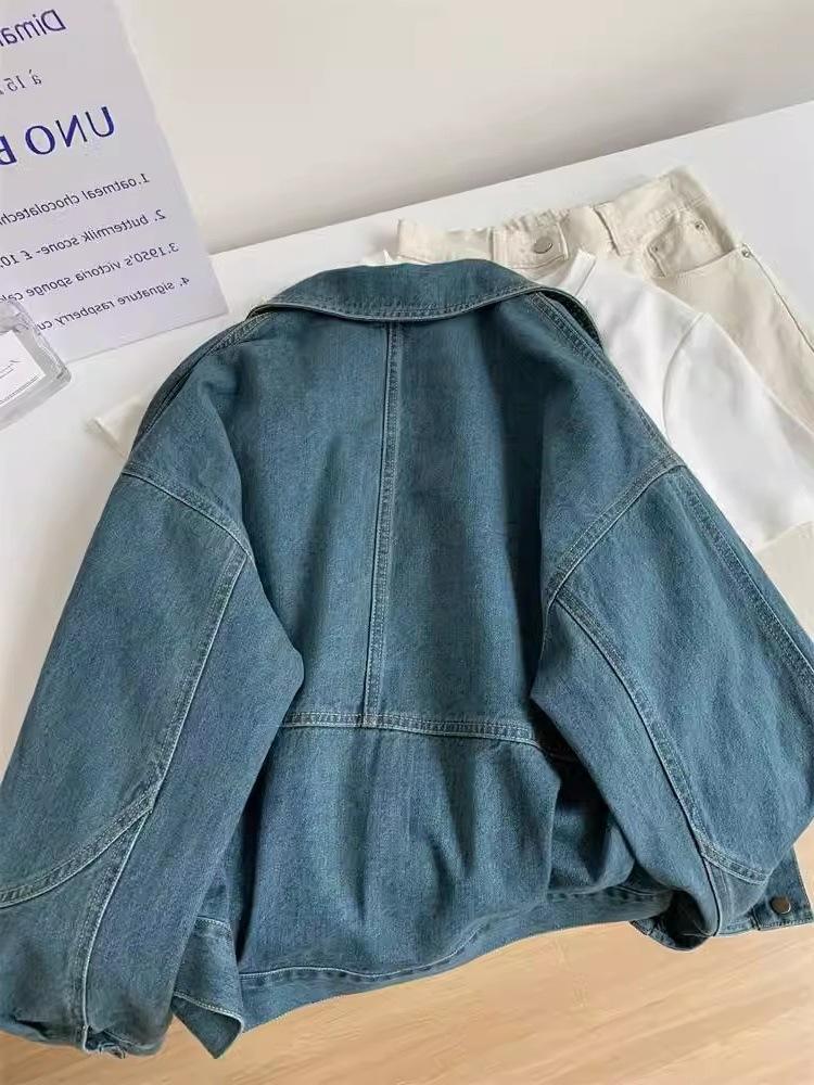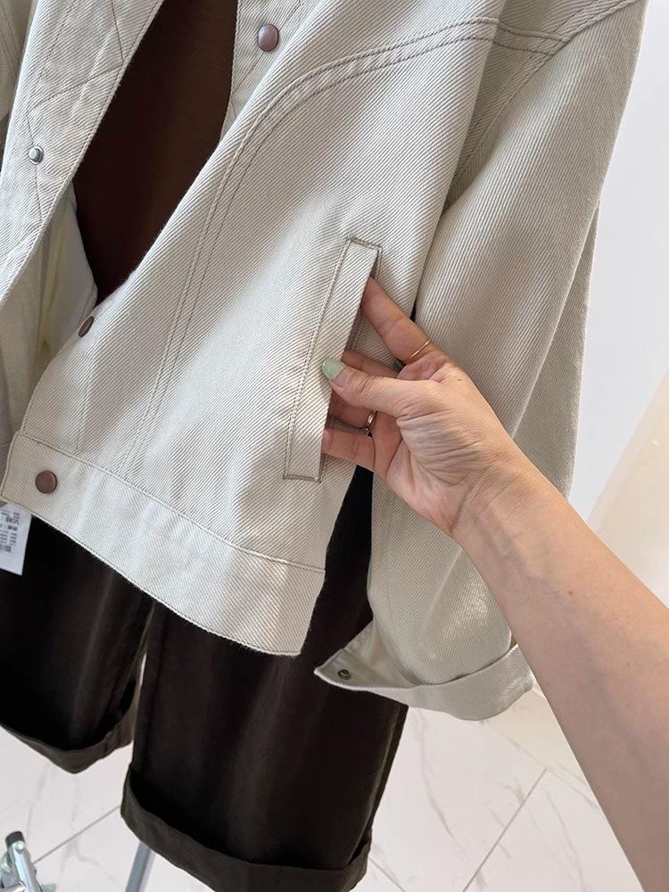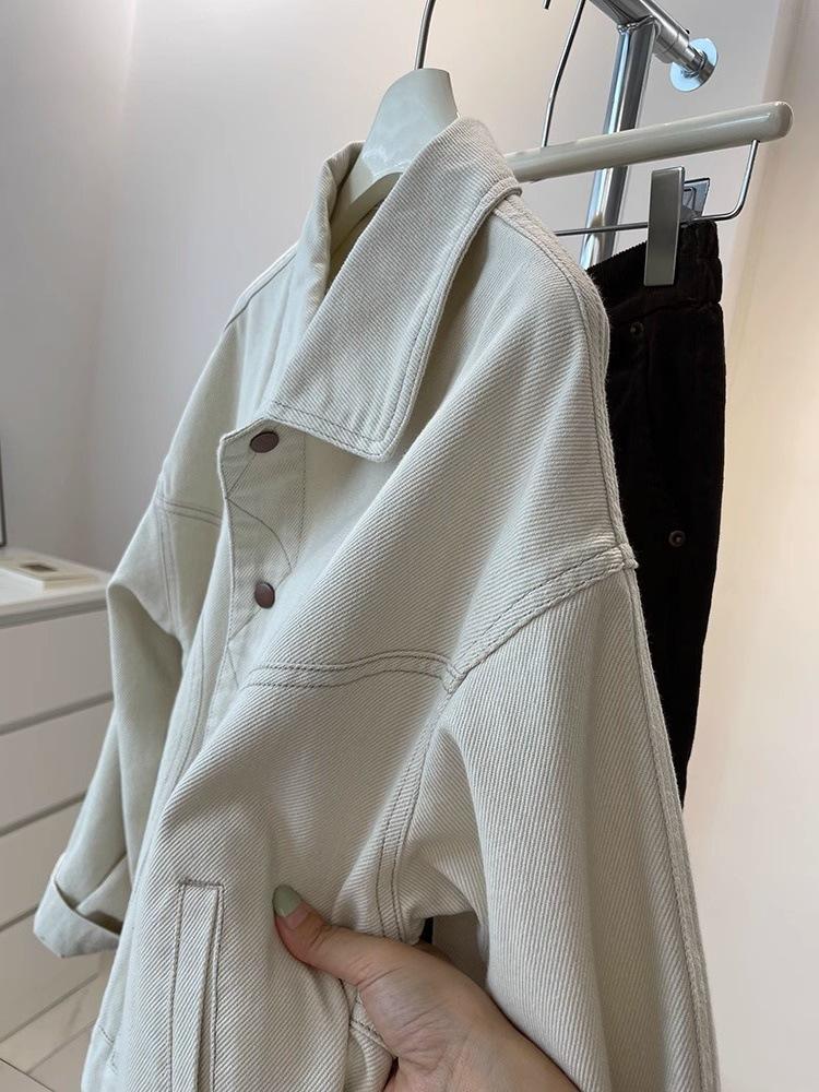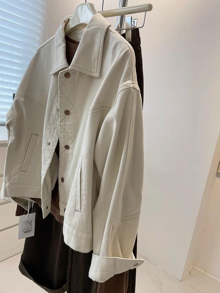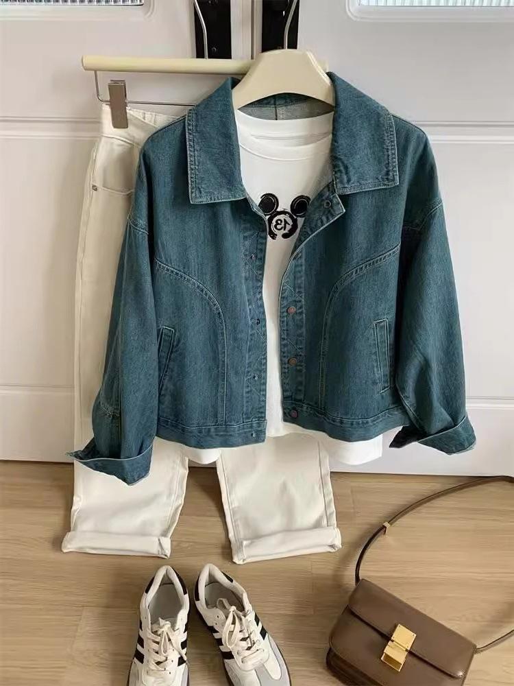 ¡Chamarra de mezclilla beige coreana! Diseño de pespuntes de primavera y otoño Versátil Chaqueta corta casual holgada Top para mujer