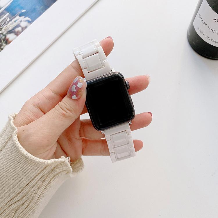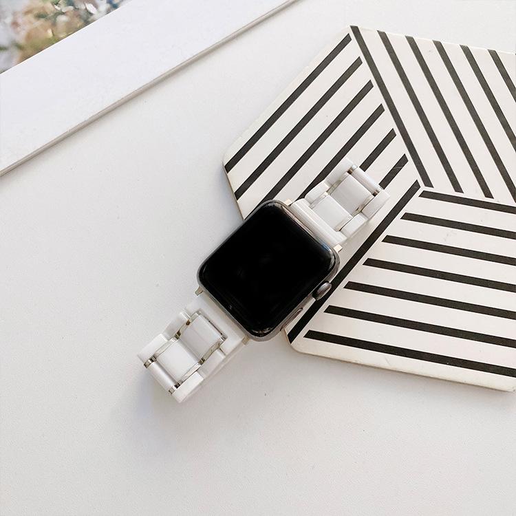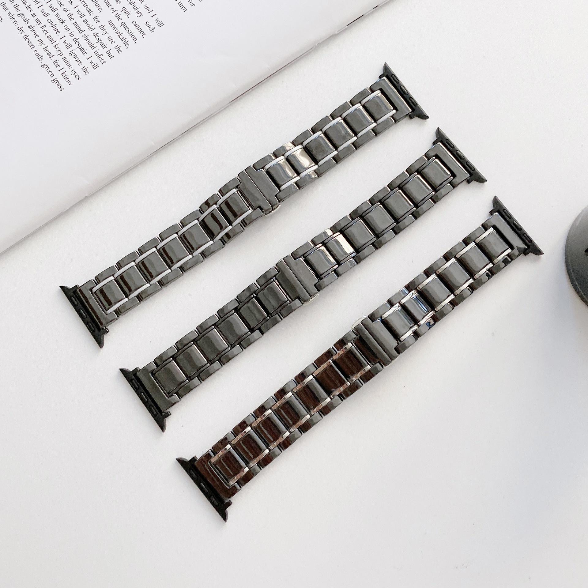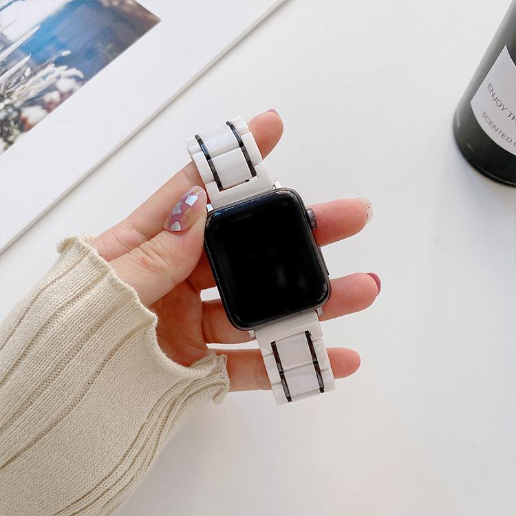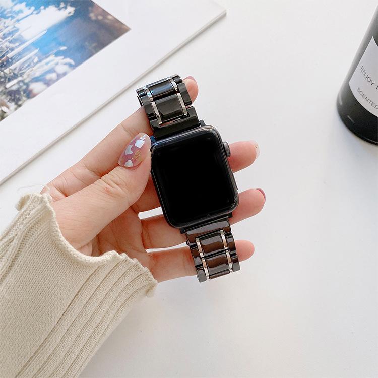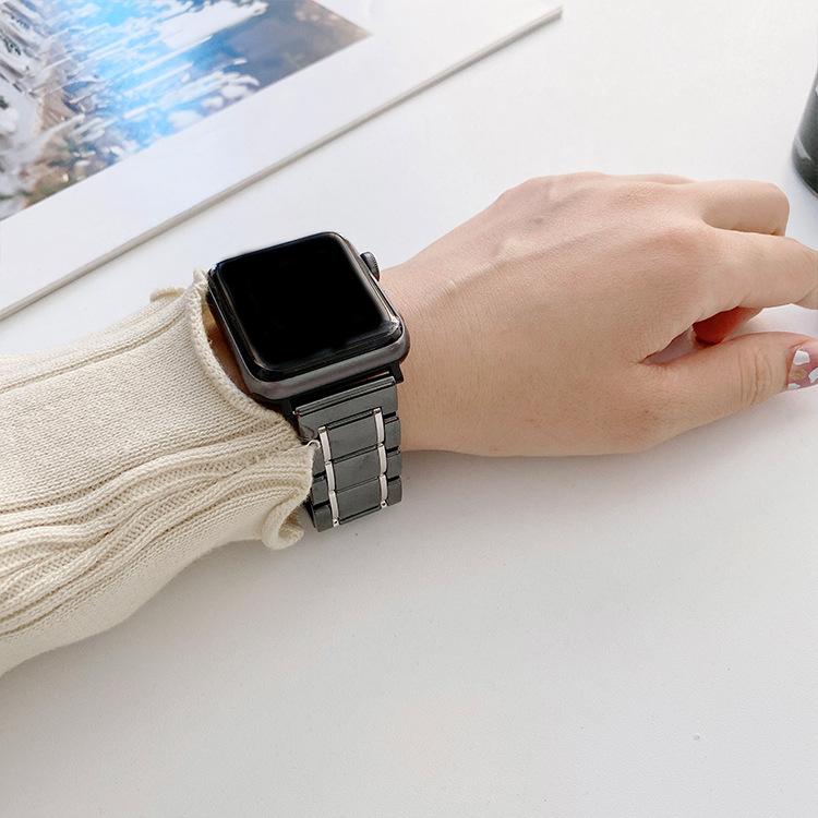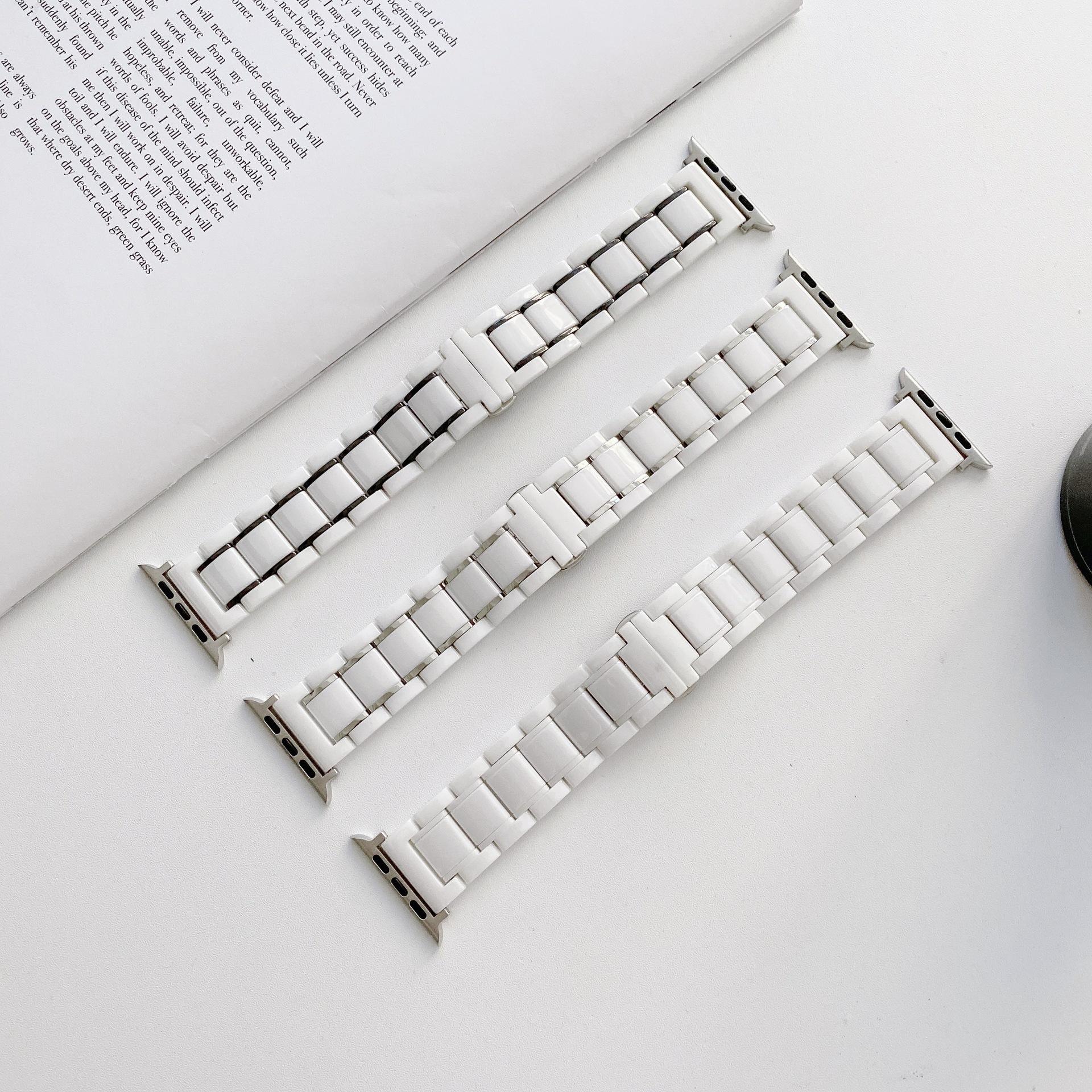 Correa de metal para Apple Watch de 10.ª generación, correa de cerámica de cinco cuentas para Apple Watch SE, pulsera en blanco y negro.