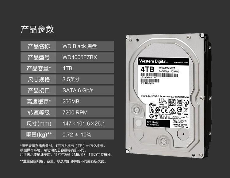 Western Digital (WD) black disk SATA3 7200 to 3.5 inch game hard disk high performance storage film and televi...