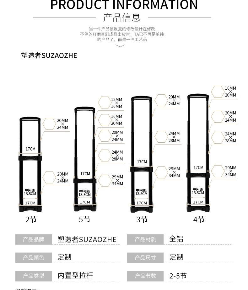 Fábrica de fabricantes de barras de tracción Shaper, accesorios para equipaje, barras de tracción, estuche para cosméticos, caja de herramientas, barras de tracción, estante para barras de tracción de aleación de aluminio.