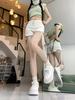 Pantalones cortos vaqueros ajustados de cintura alta con tirantes para mujer, de verano, blancos, con botones y corte A