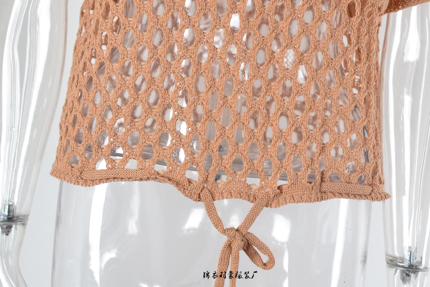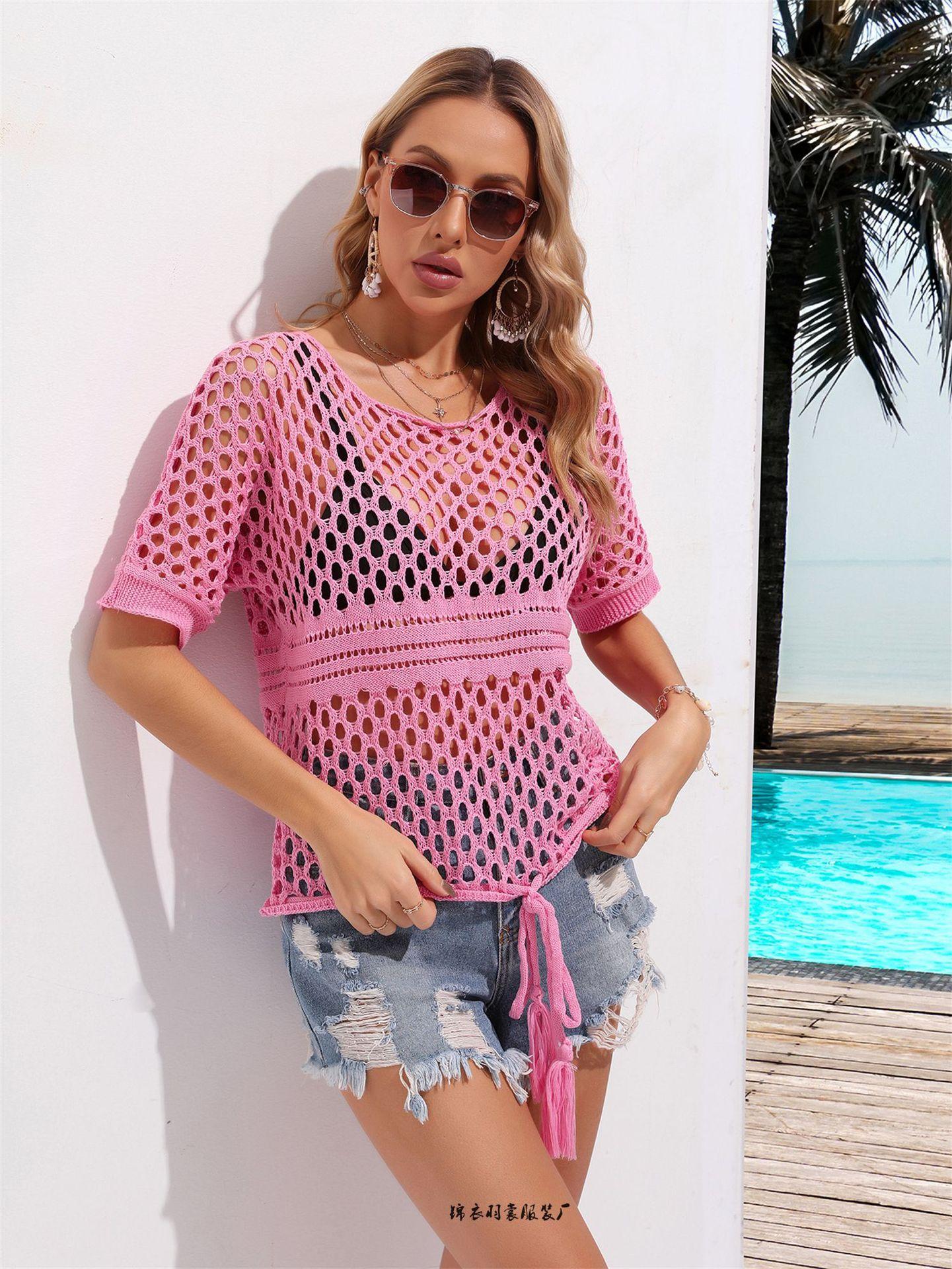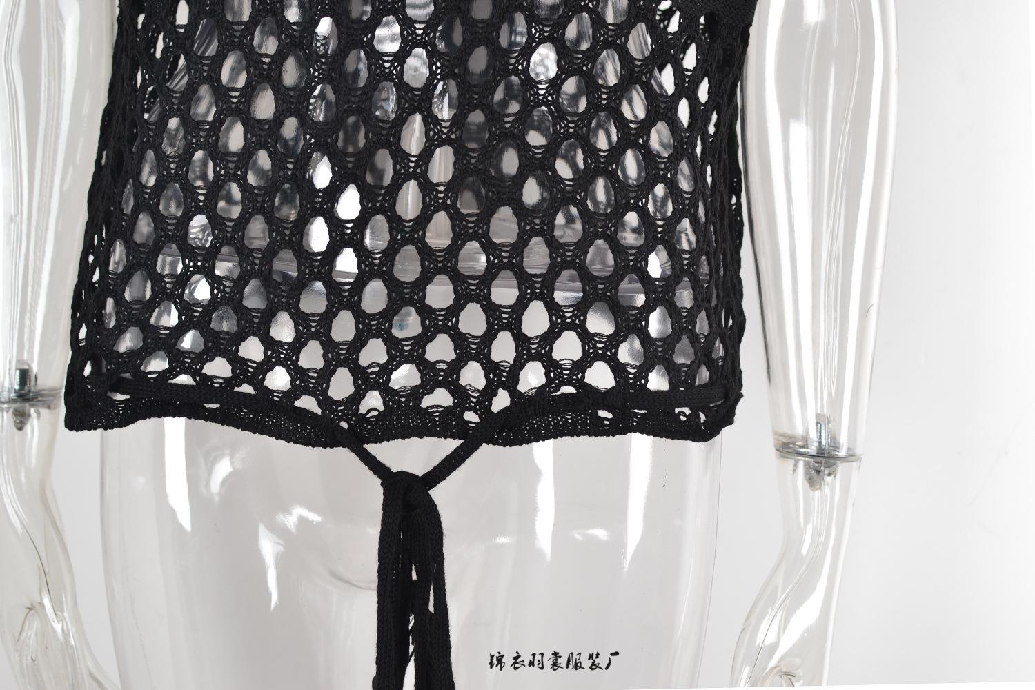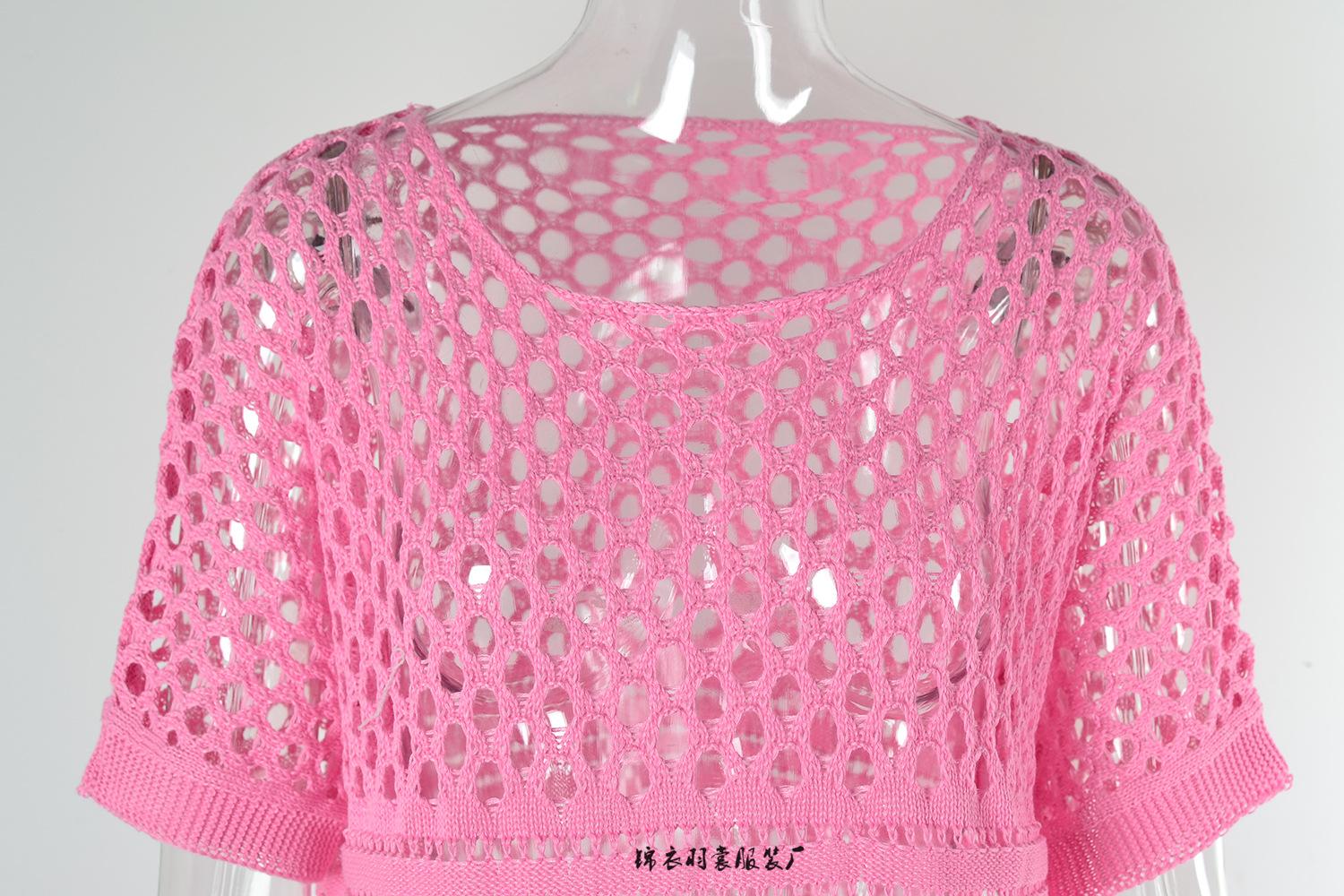2023 Verano nuevo Amazon nuevo bikini hueco con costuras de arcoíris falda de playa blusa tejida