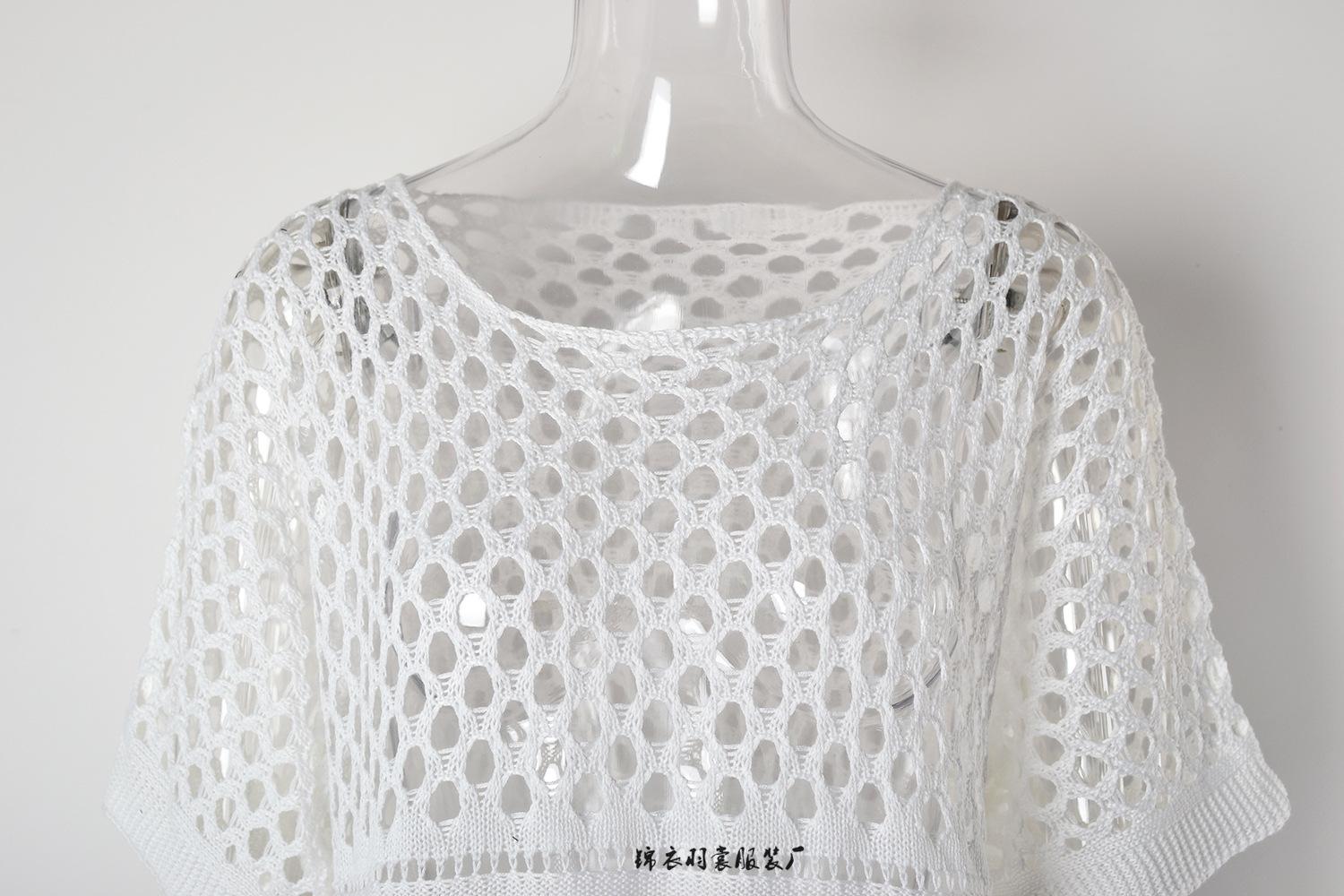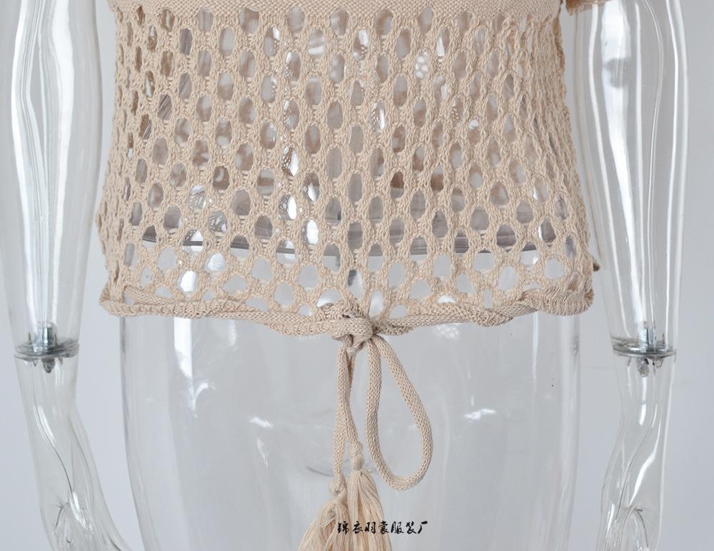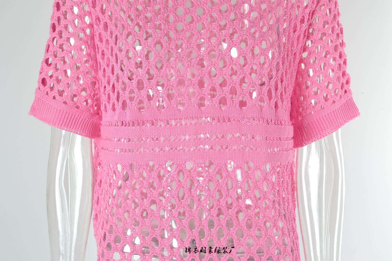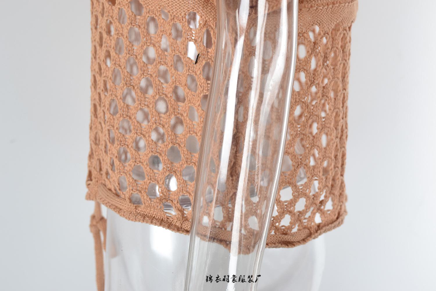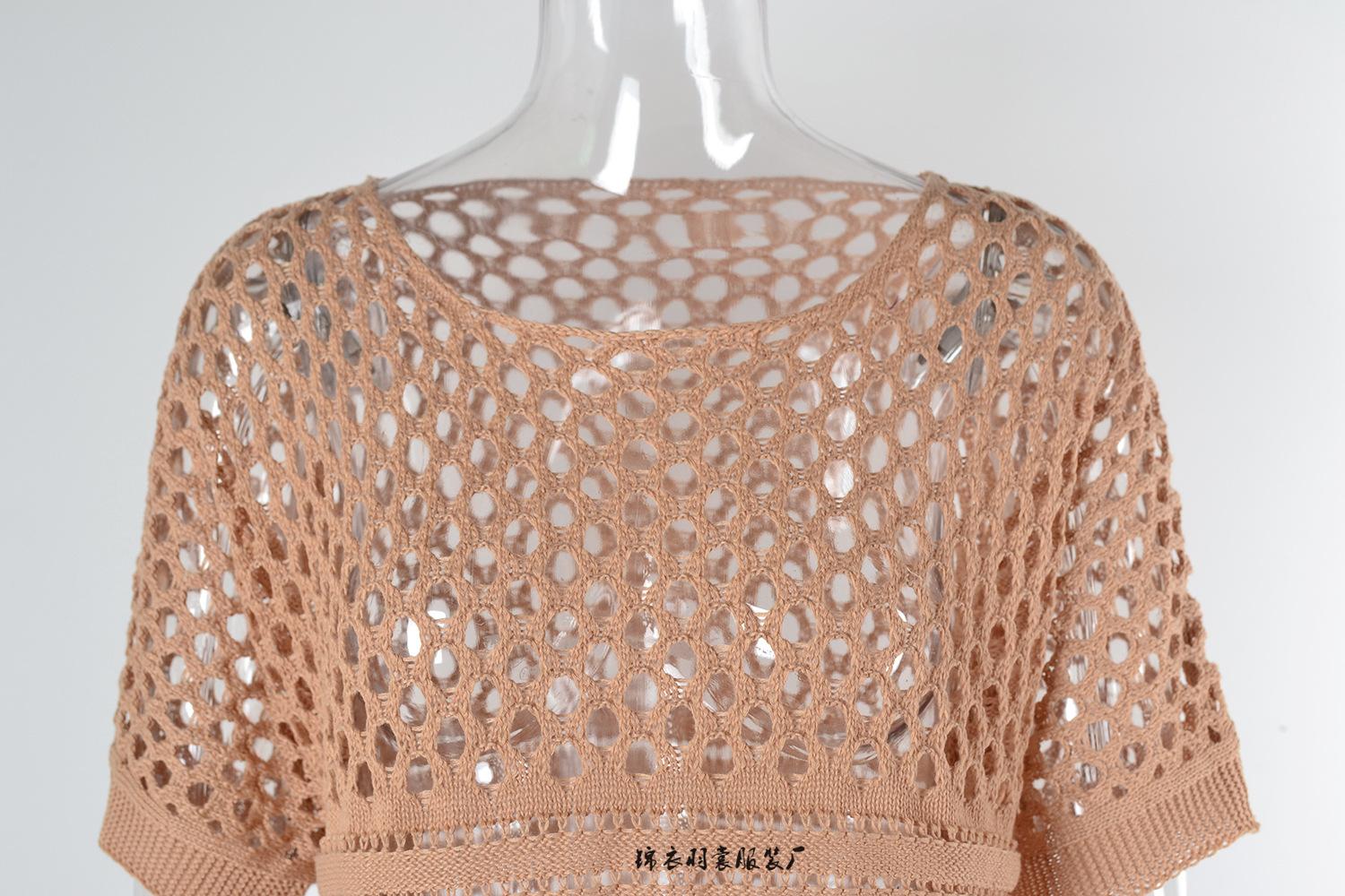 2023 Verano nuevo Amazon nuevo bikini hueco con costuras de arcoíris falda de playa blusa tejida