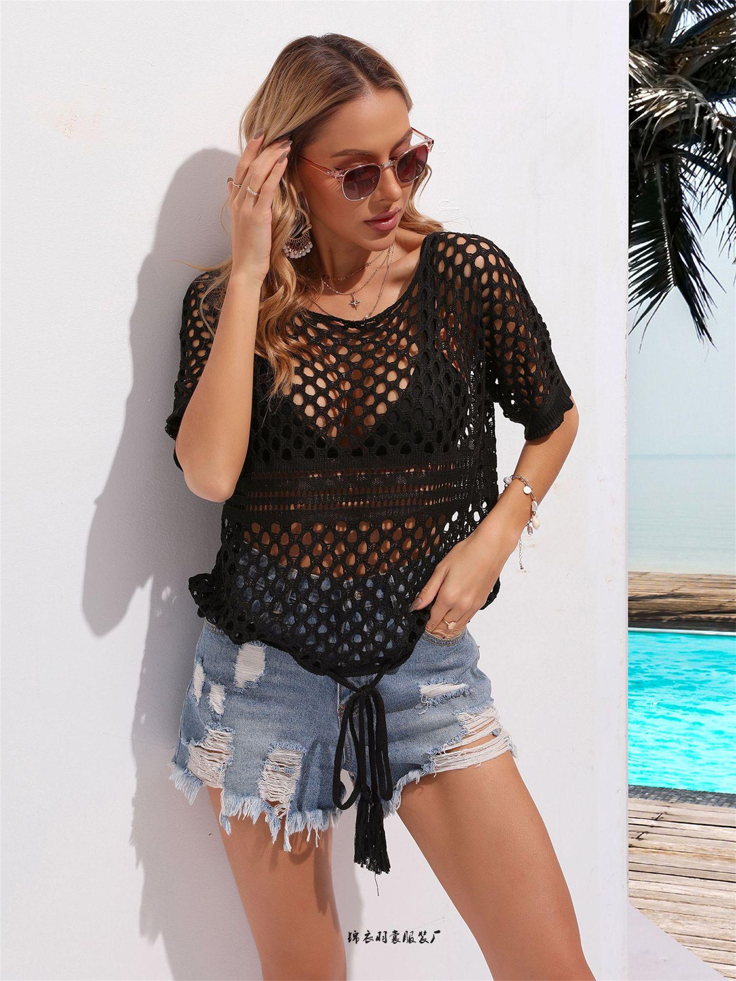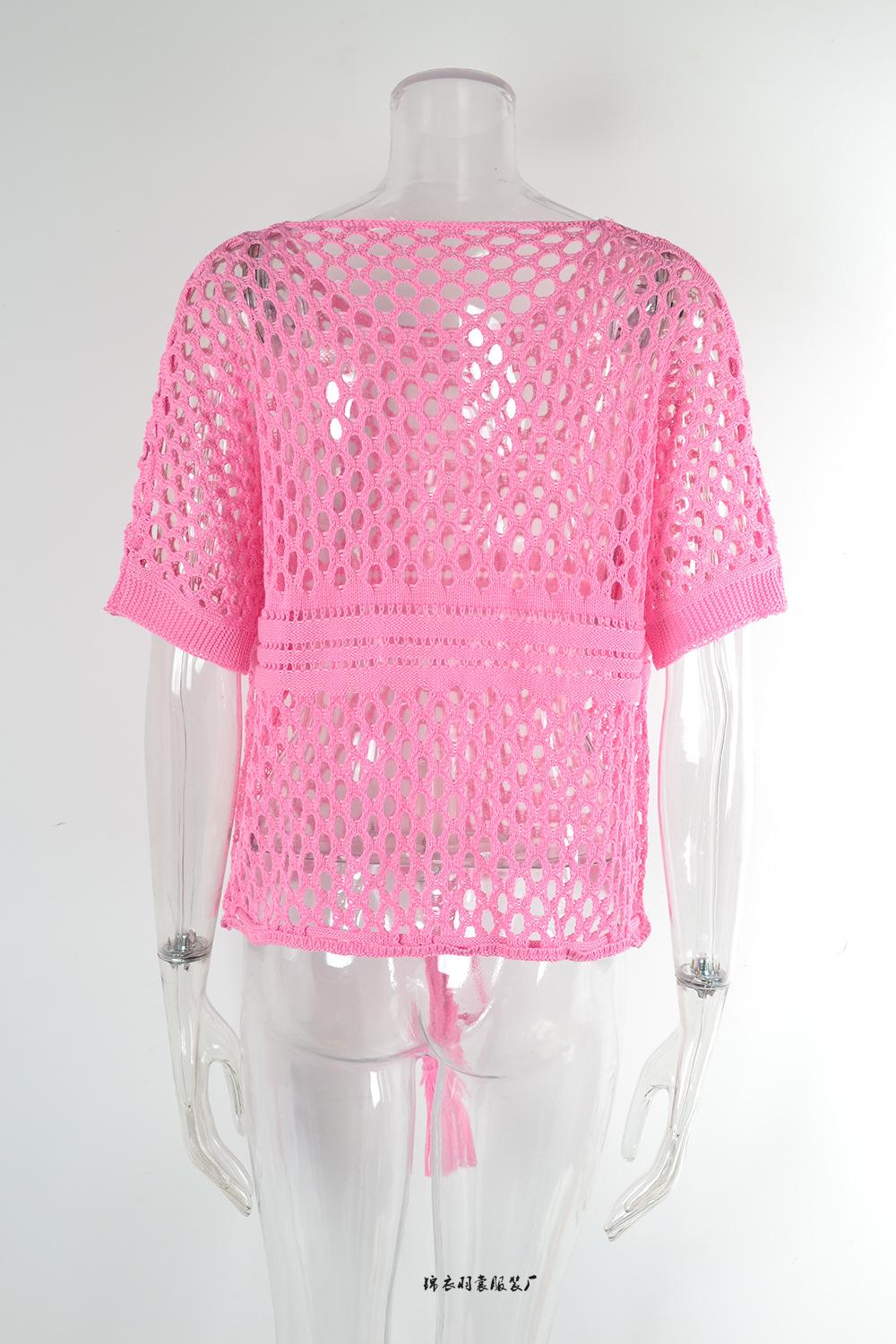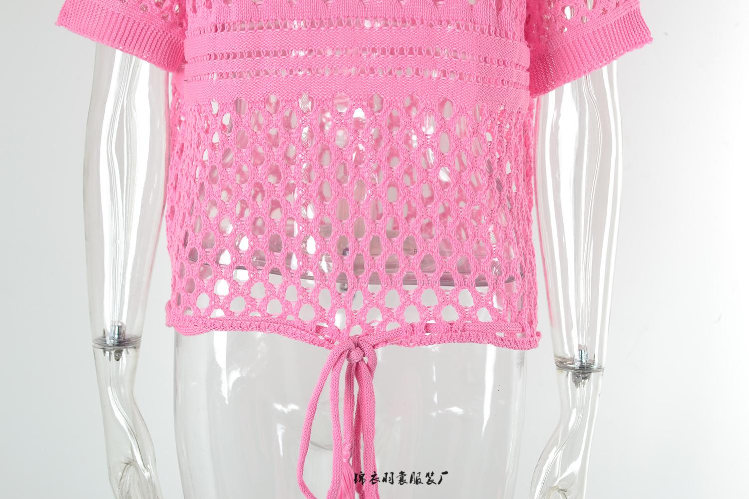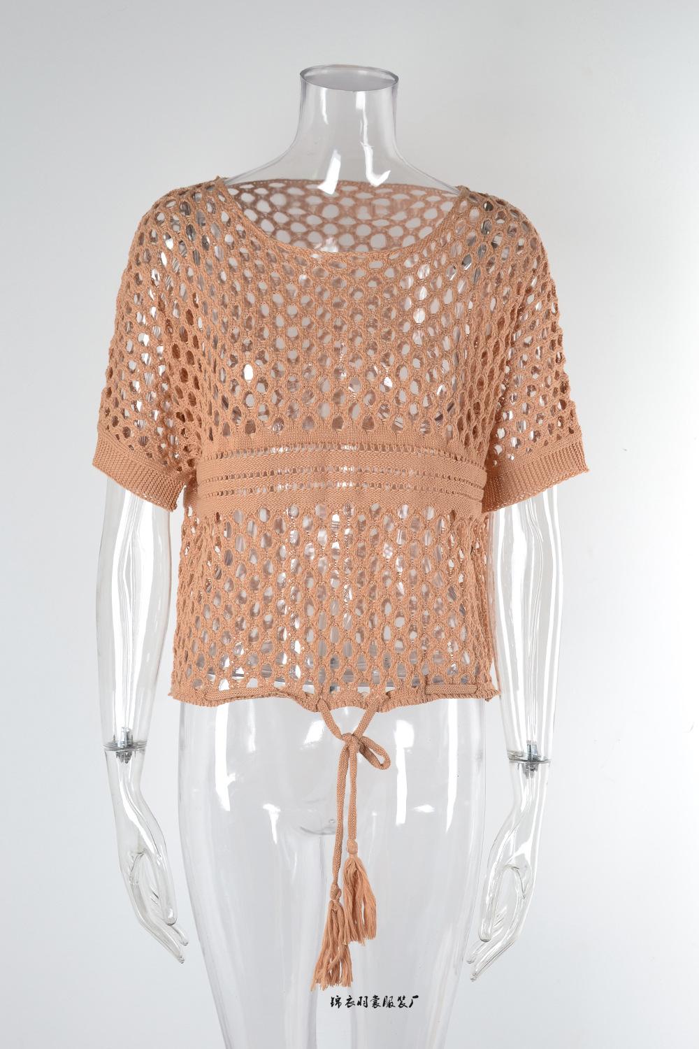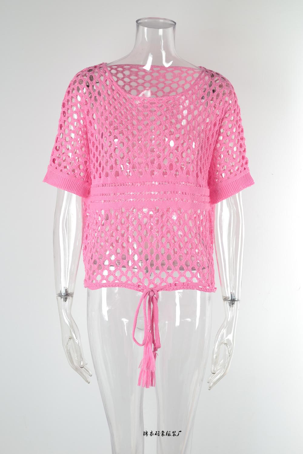 2023 Verano nuevo Amazon nuevo bikini hueco con costuras de arcoíris falda de playa blusa tejida