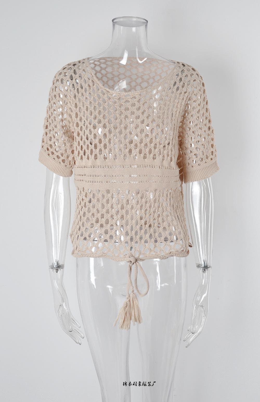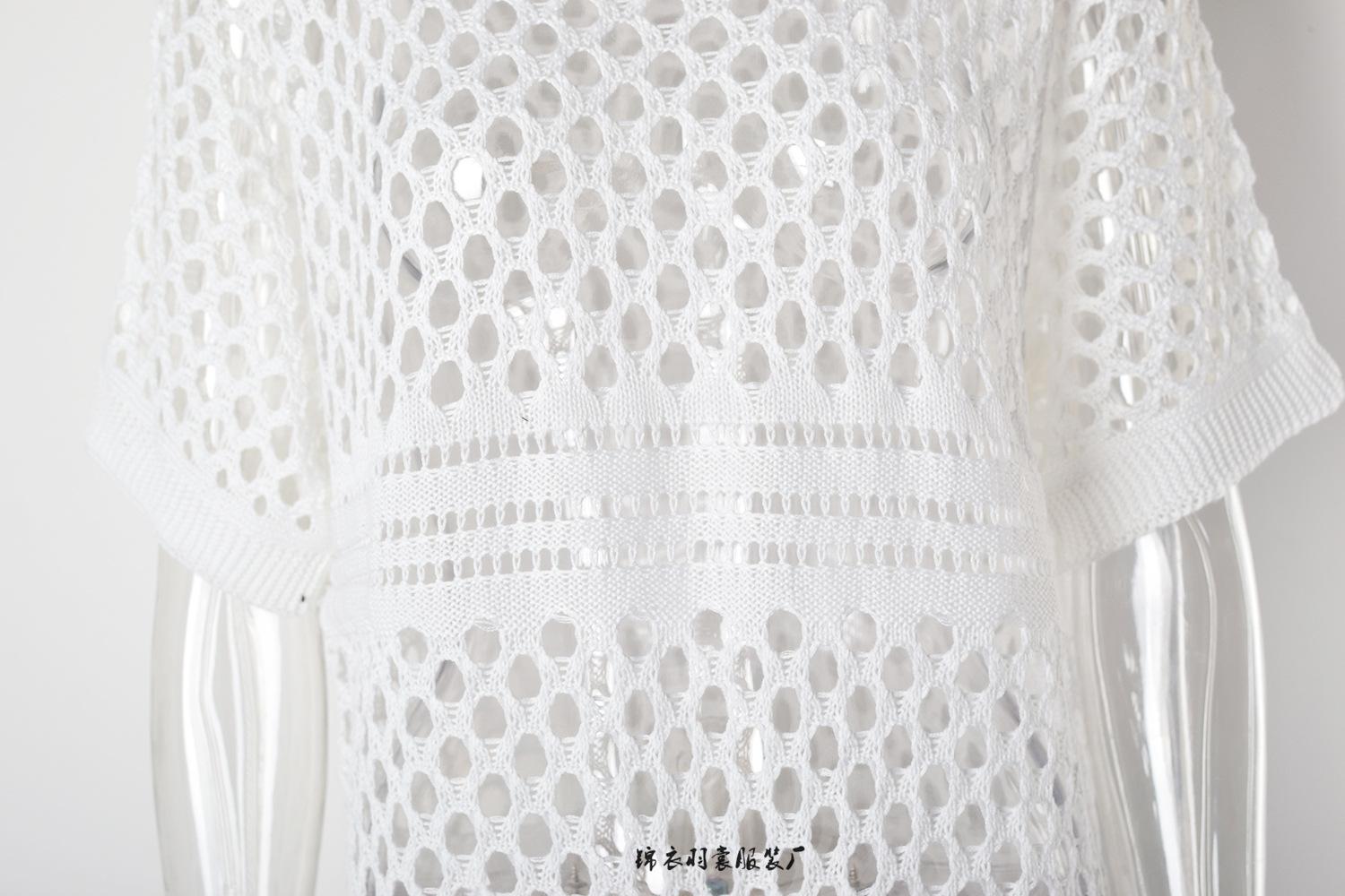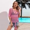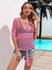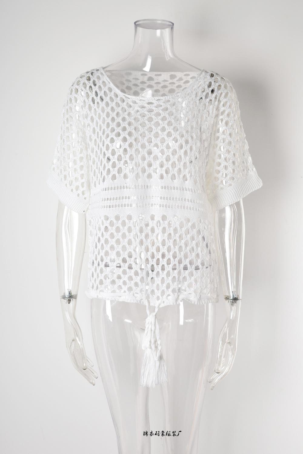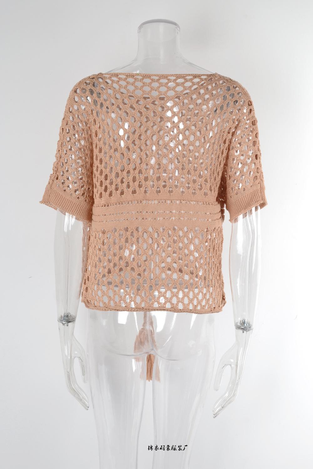 2023 Verano nuevo Amazon nuevo bikini hueco con costuras de arcoíris falda de playa blusa tejida