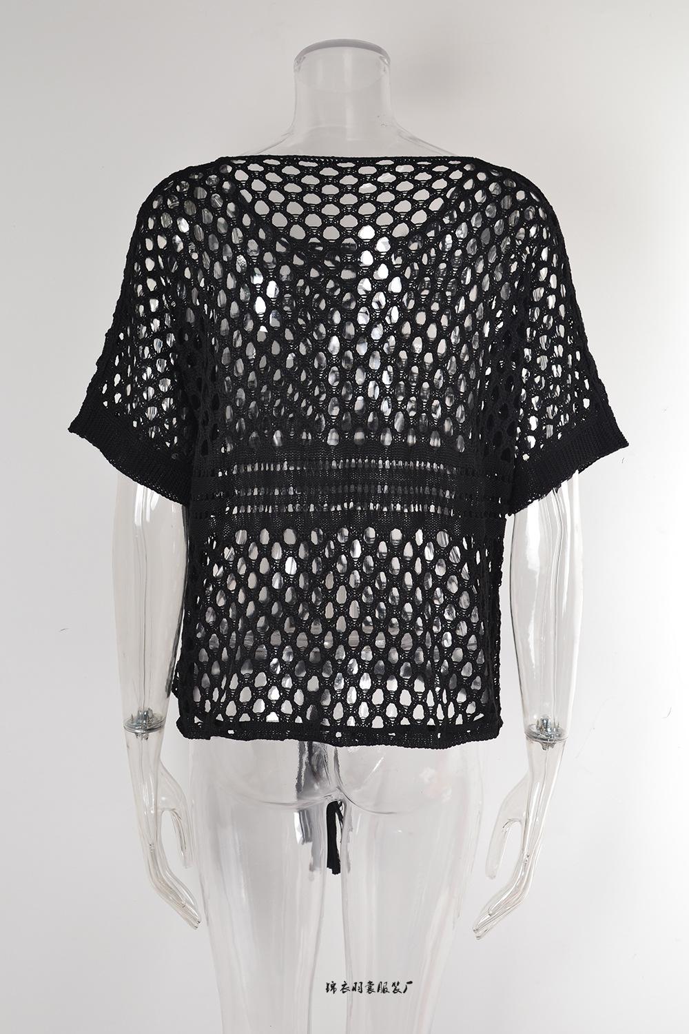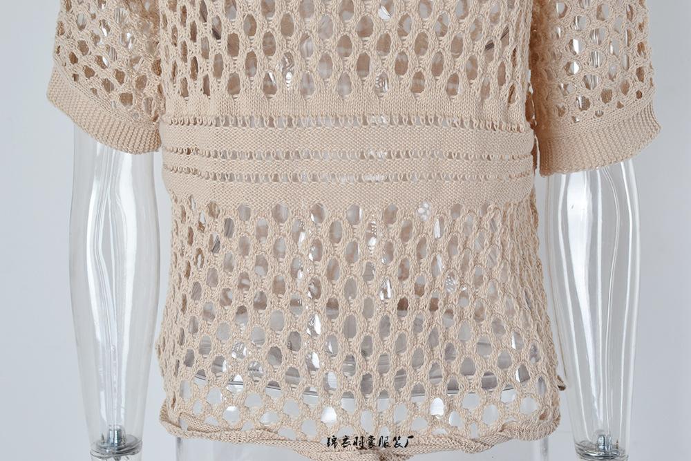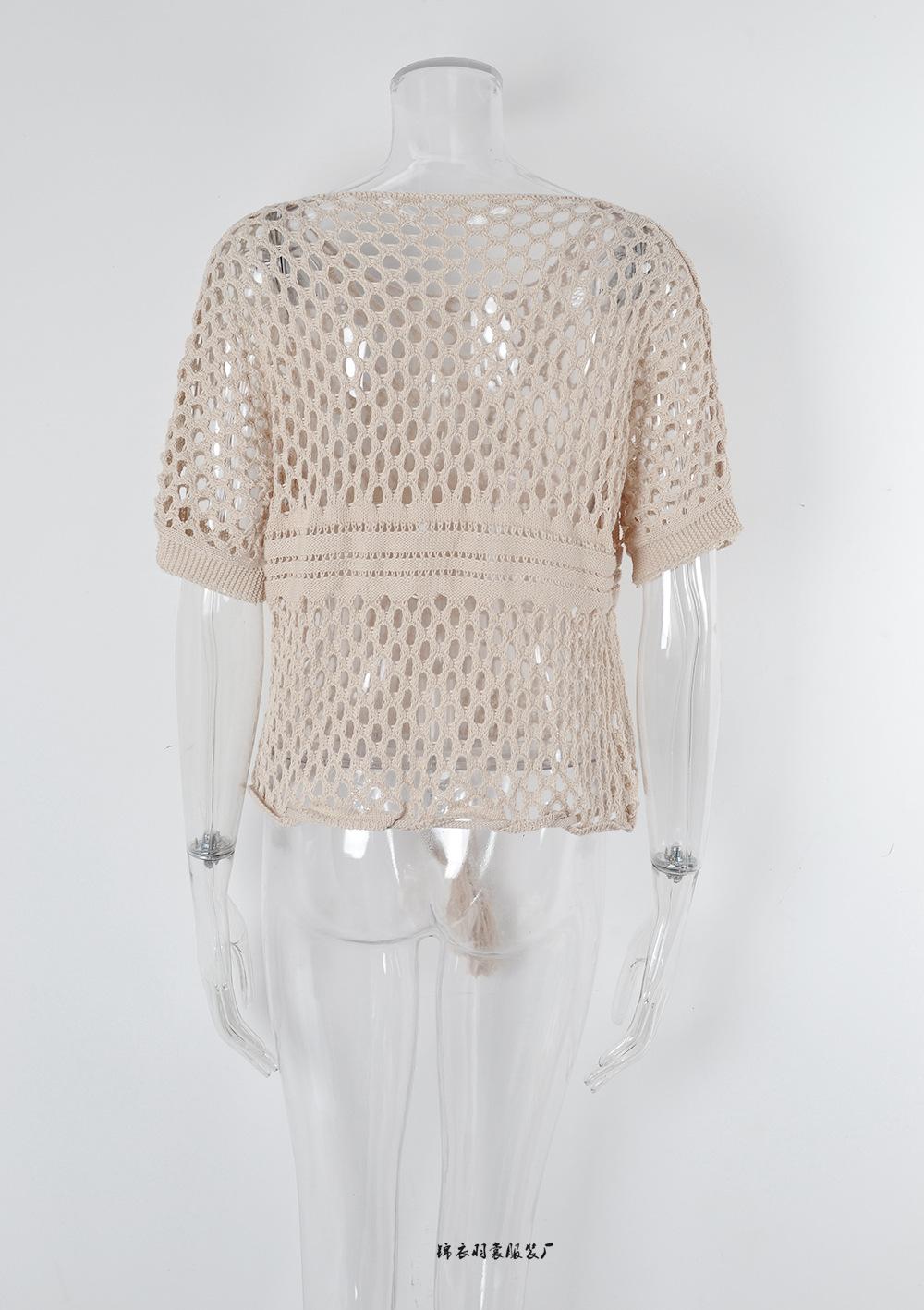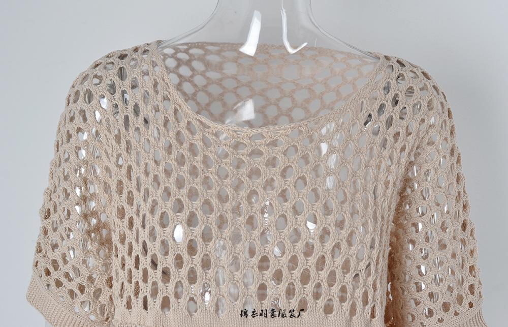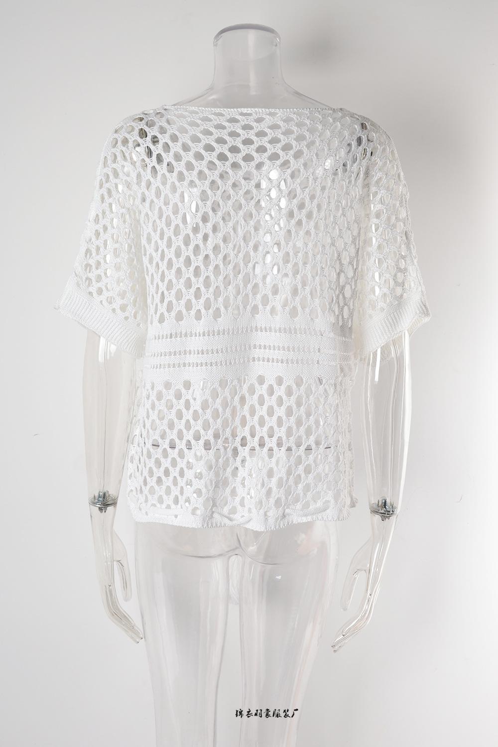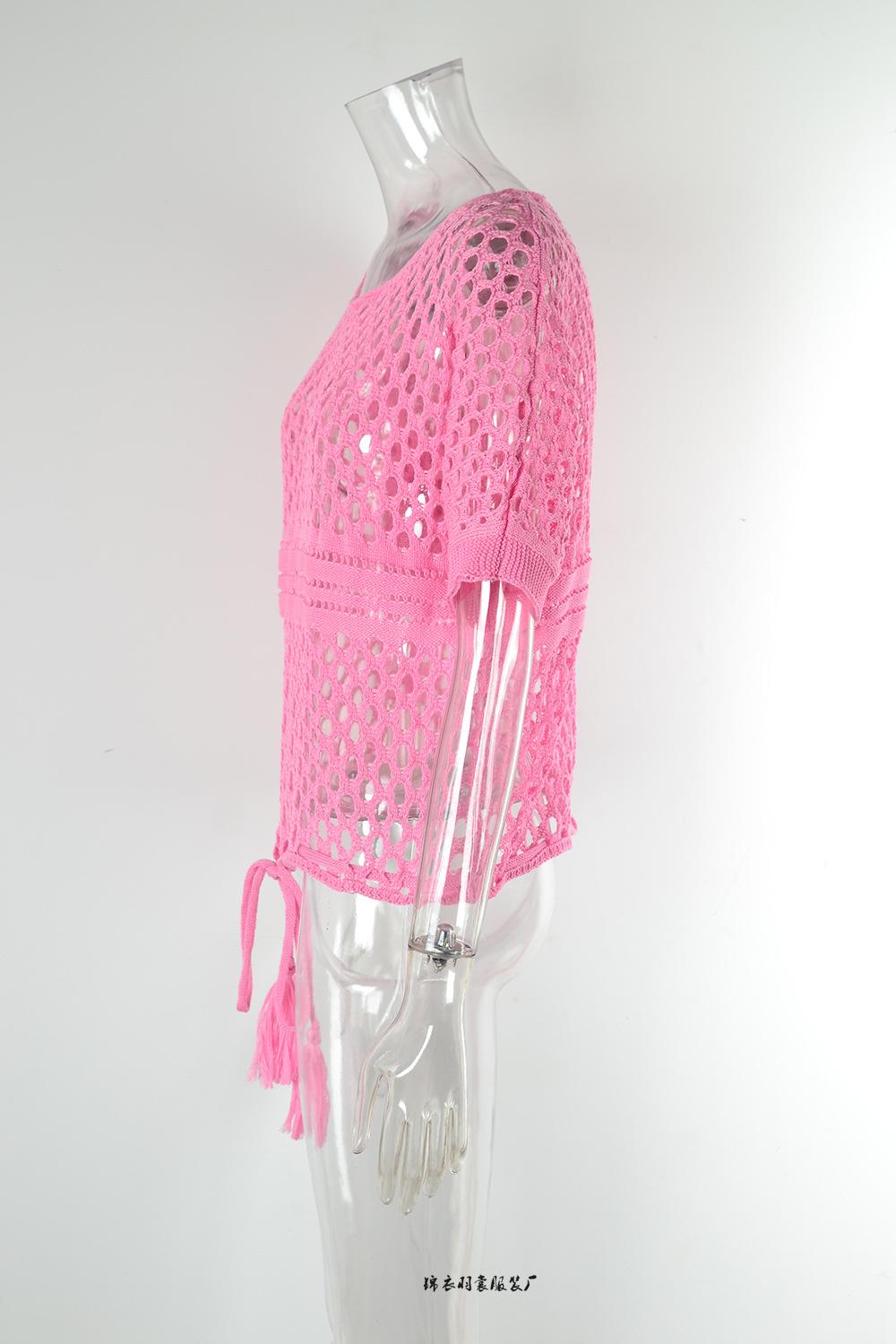 2023 Verano nuevo Amazon nuevo bikini hueco con costuras de arcoíris falda de playa blusa tejida