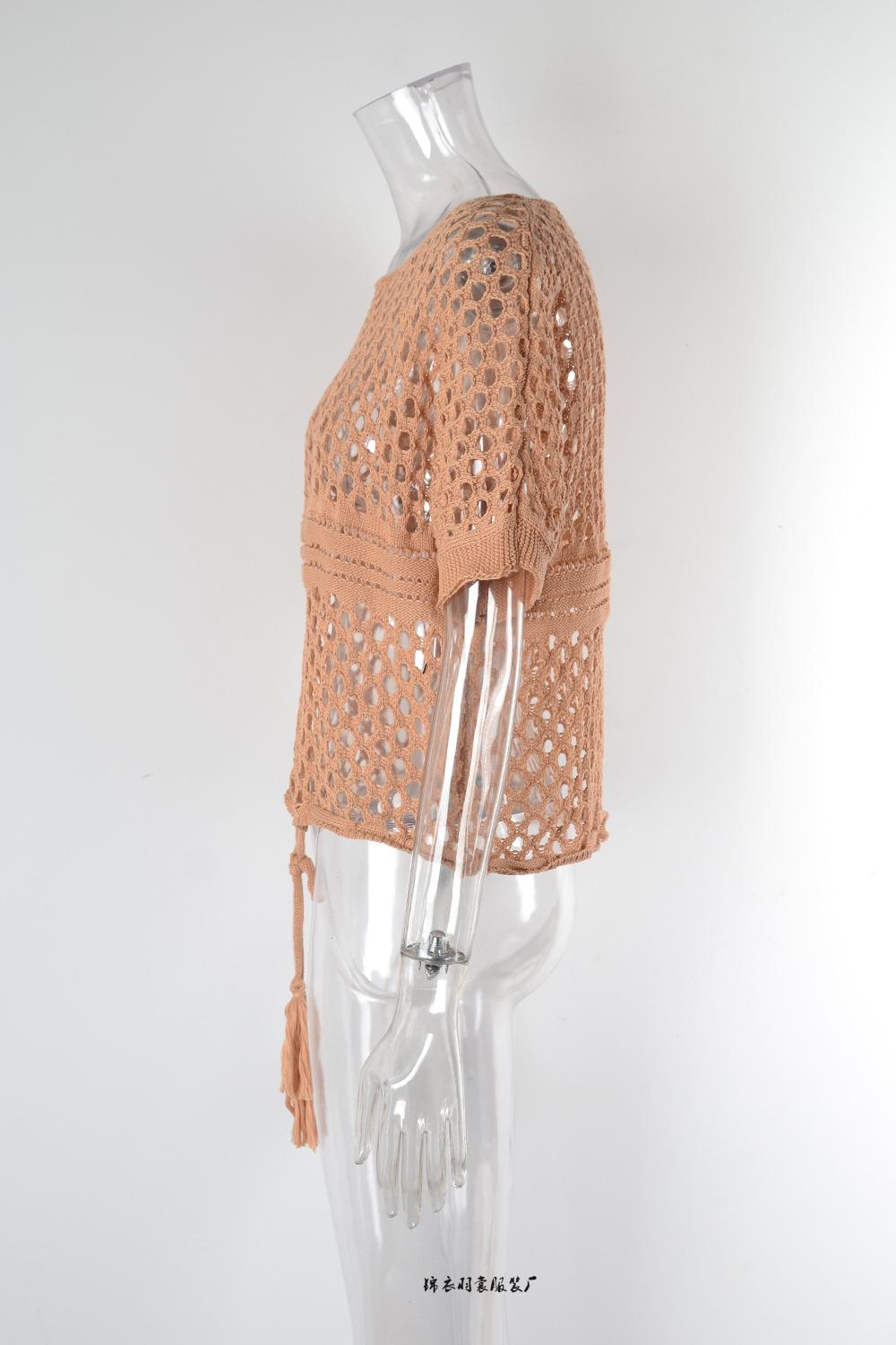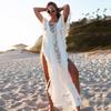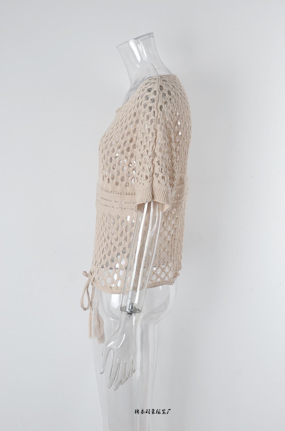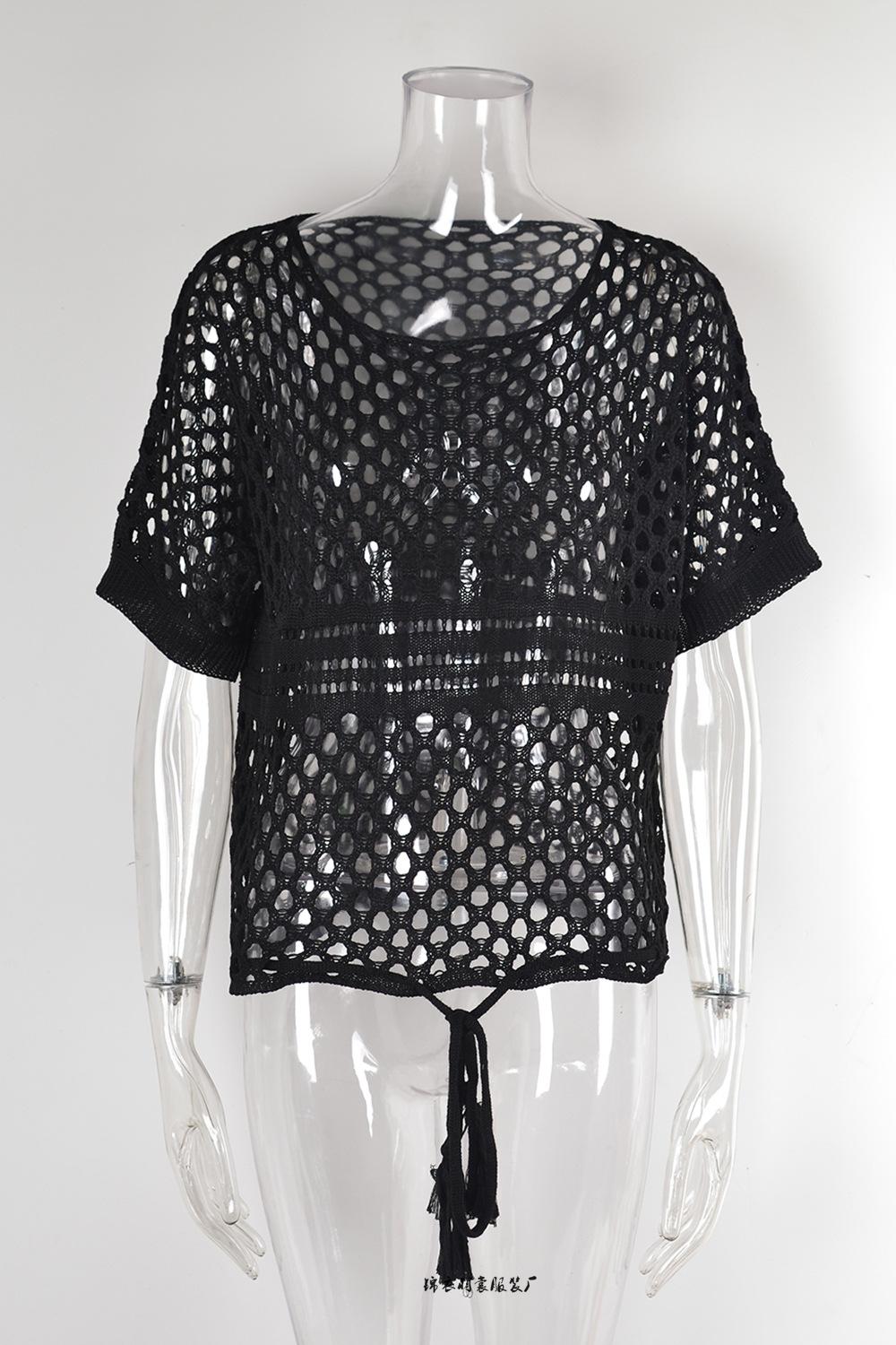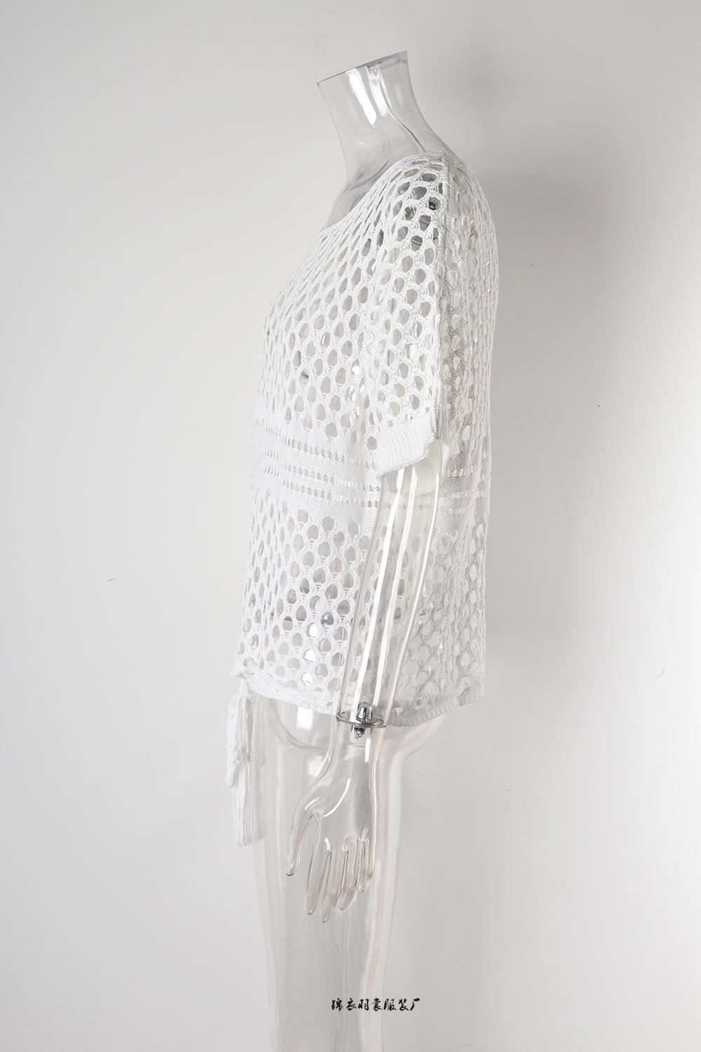 2023 Verano nuevo Amazon nuevo bikini hueco con costuras de arcoíris falda de playa blusa tejida