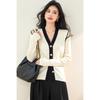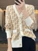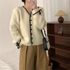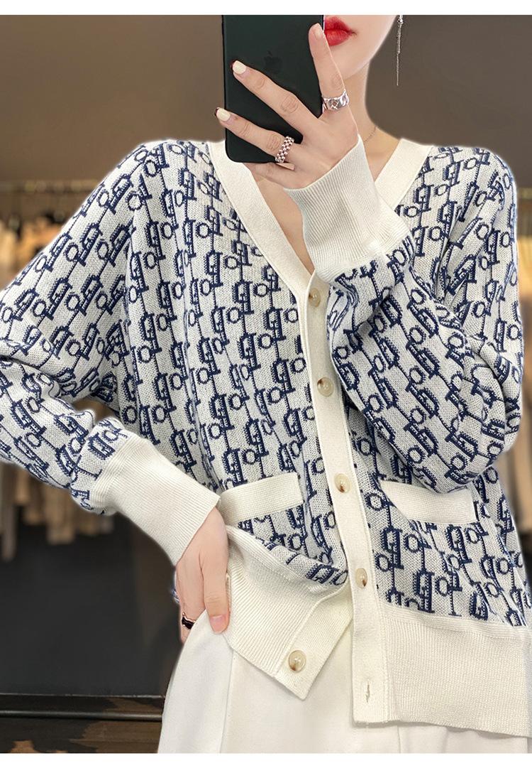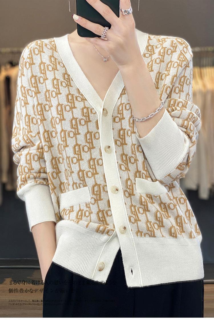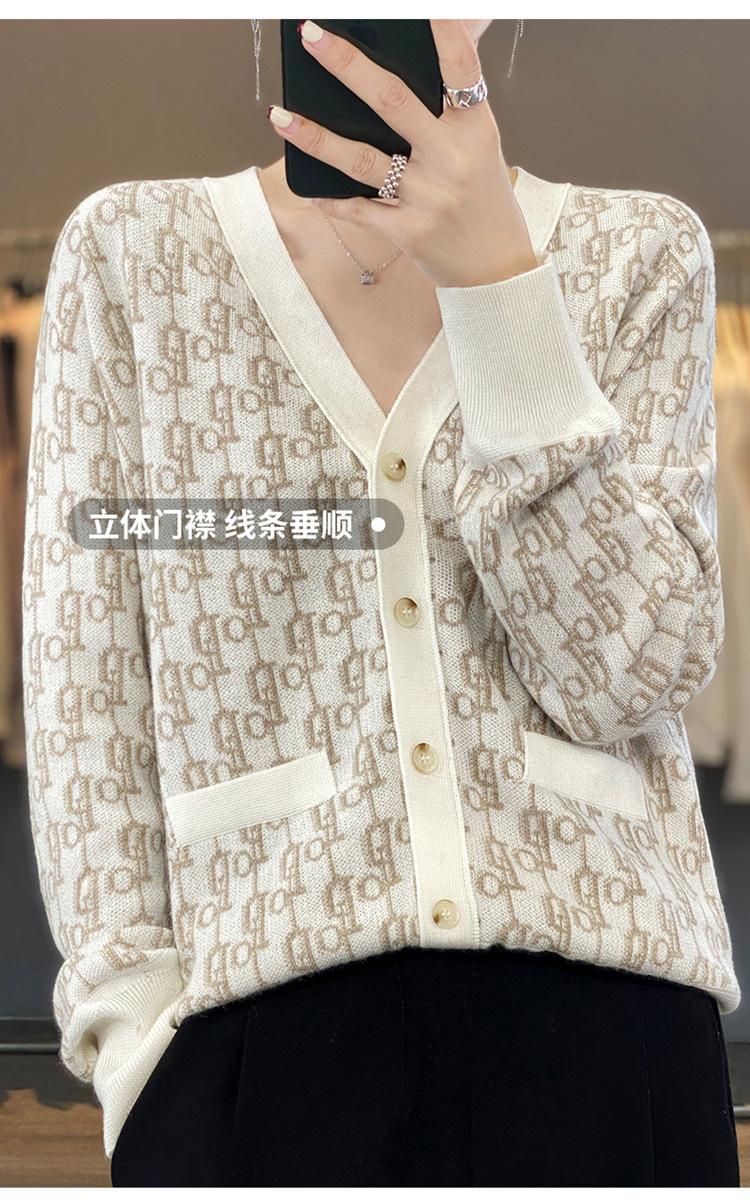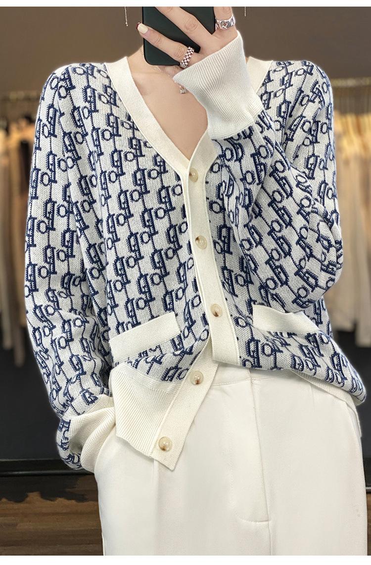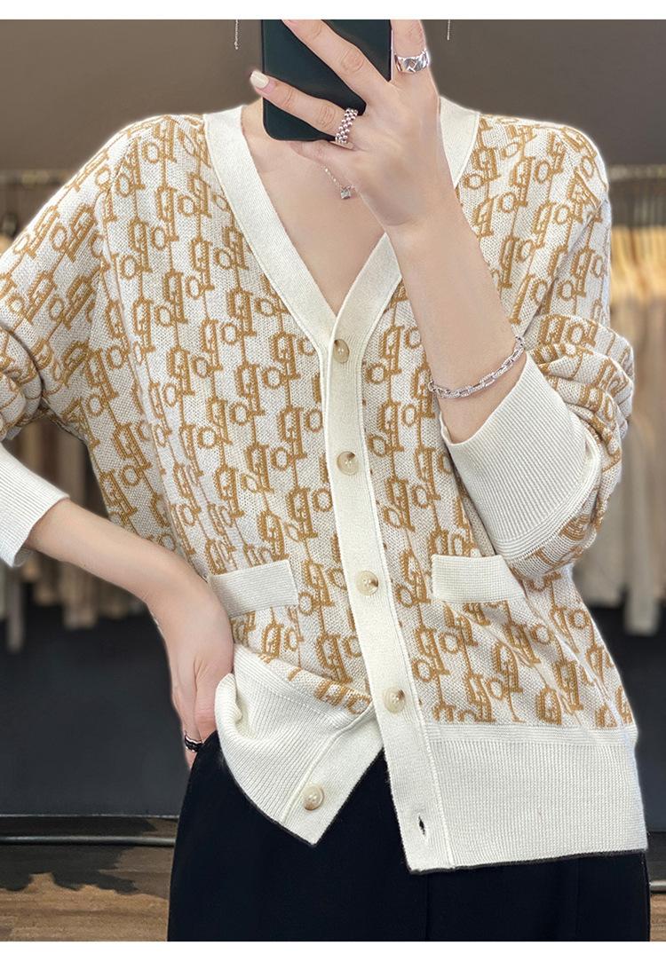 Cárdigan de lana estilo Chanel elegante de estilo francés para mujer, chaqueta de punto suelta con cuello en V y jacquard grueso, suéter exterior de aspecto entallado