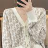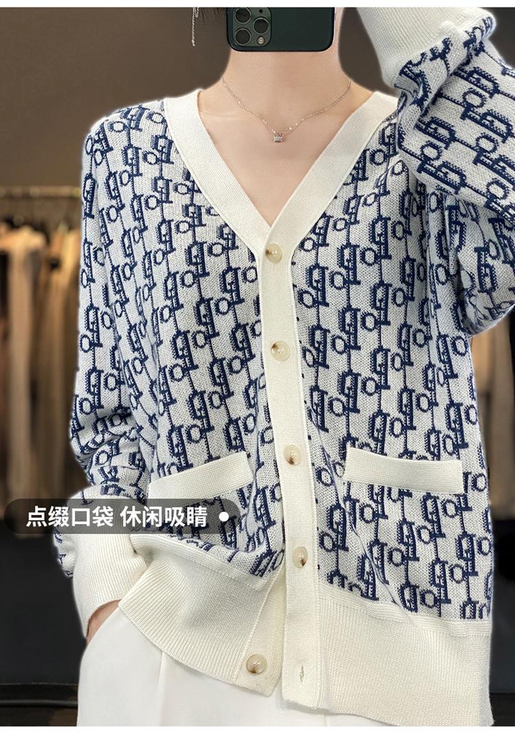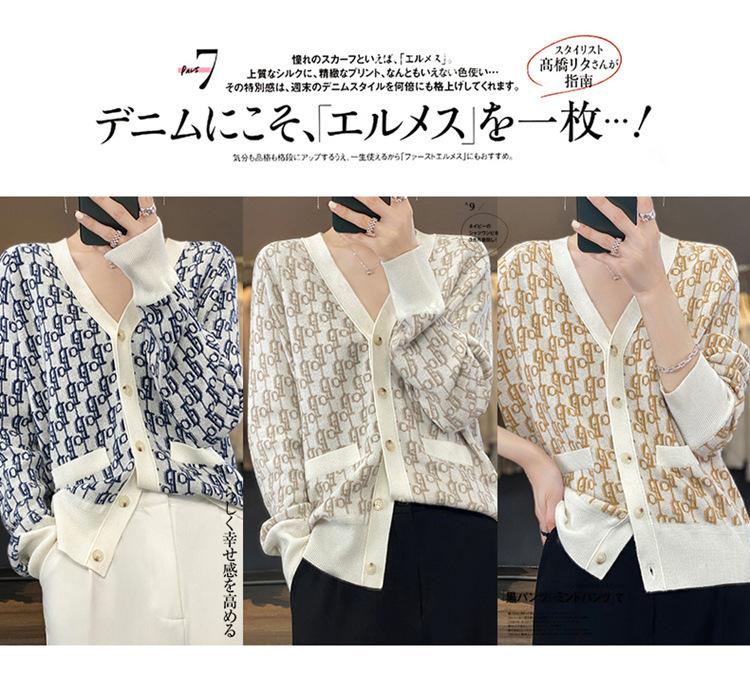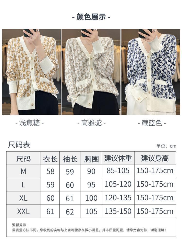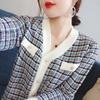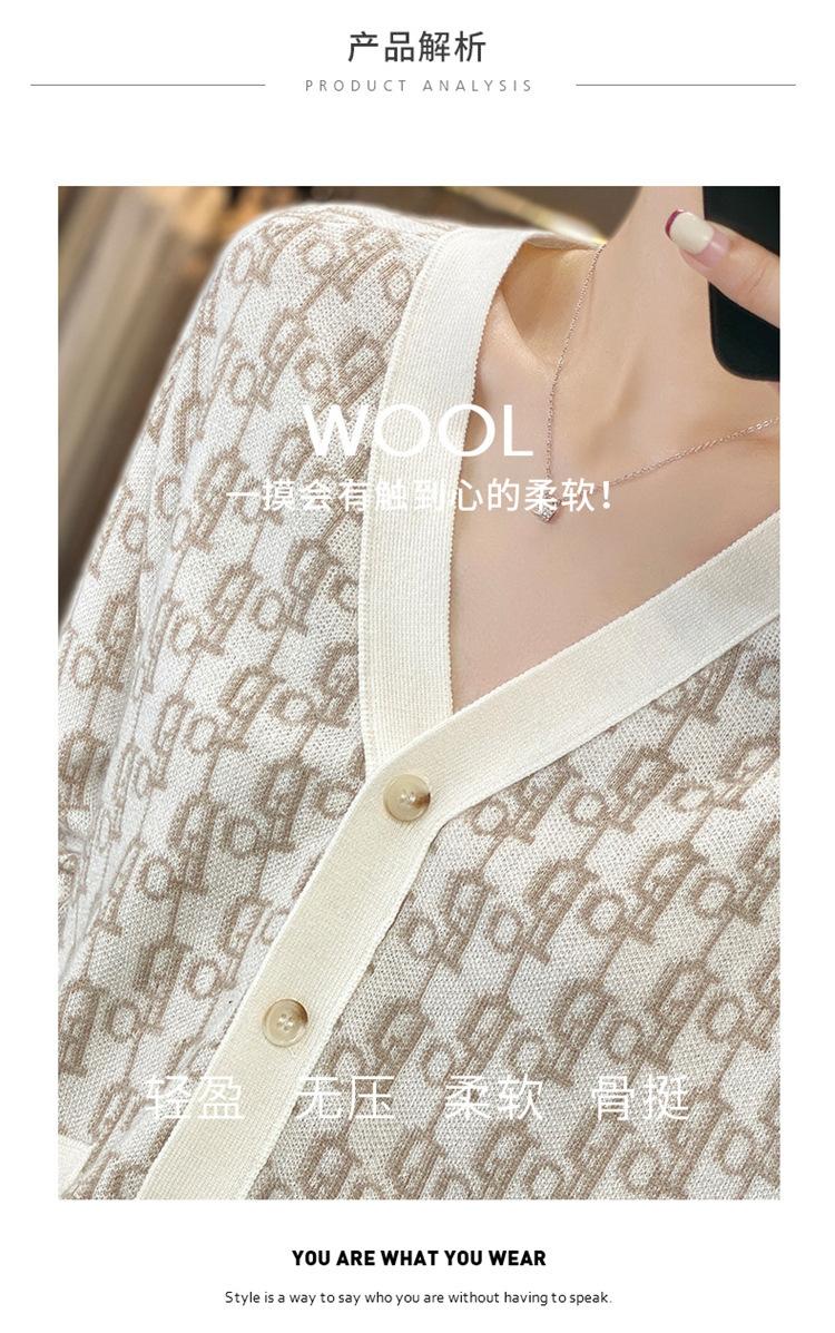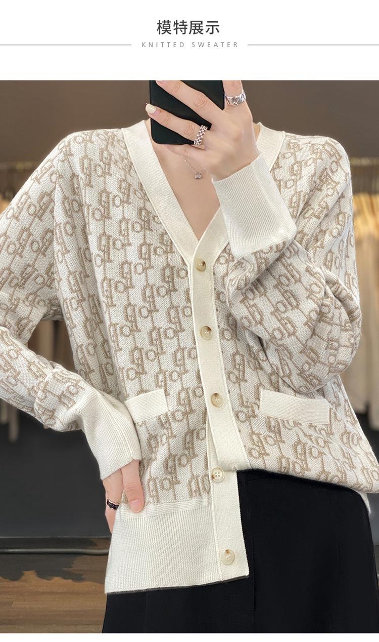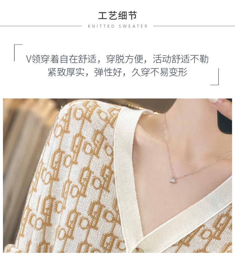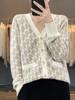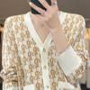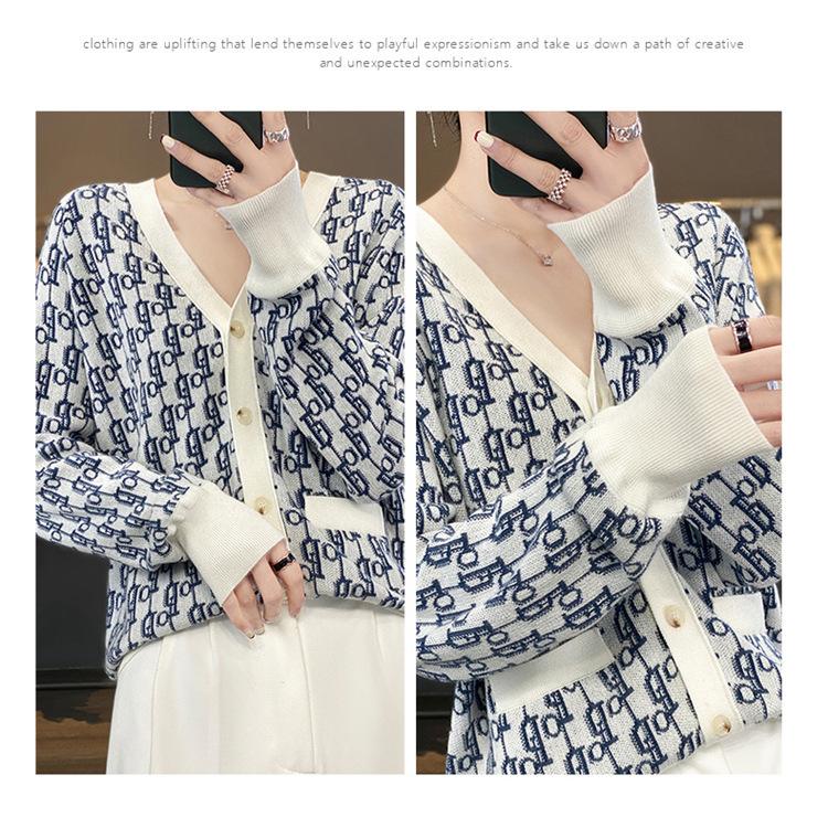 Cárdigan de lana estilo Chanel elegante de estilo francés para mujer, chaqueta de punto suelta con cuello en V y jacquard grueso, suéter exterior de aspecto entallado