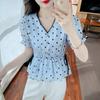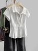 Camisa de gasa sencilla de color liso, elegante, francesa, combinable con todo, fina, holgada, corta, con cuentas, novedad de verano de 2024