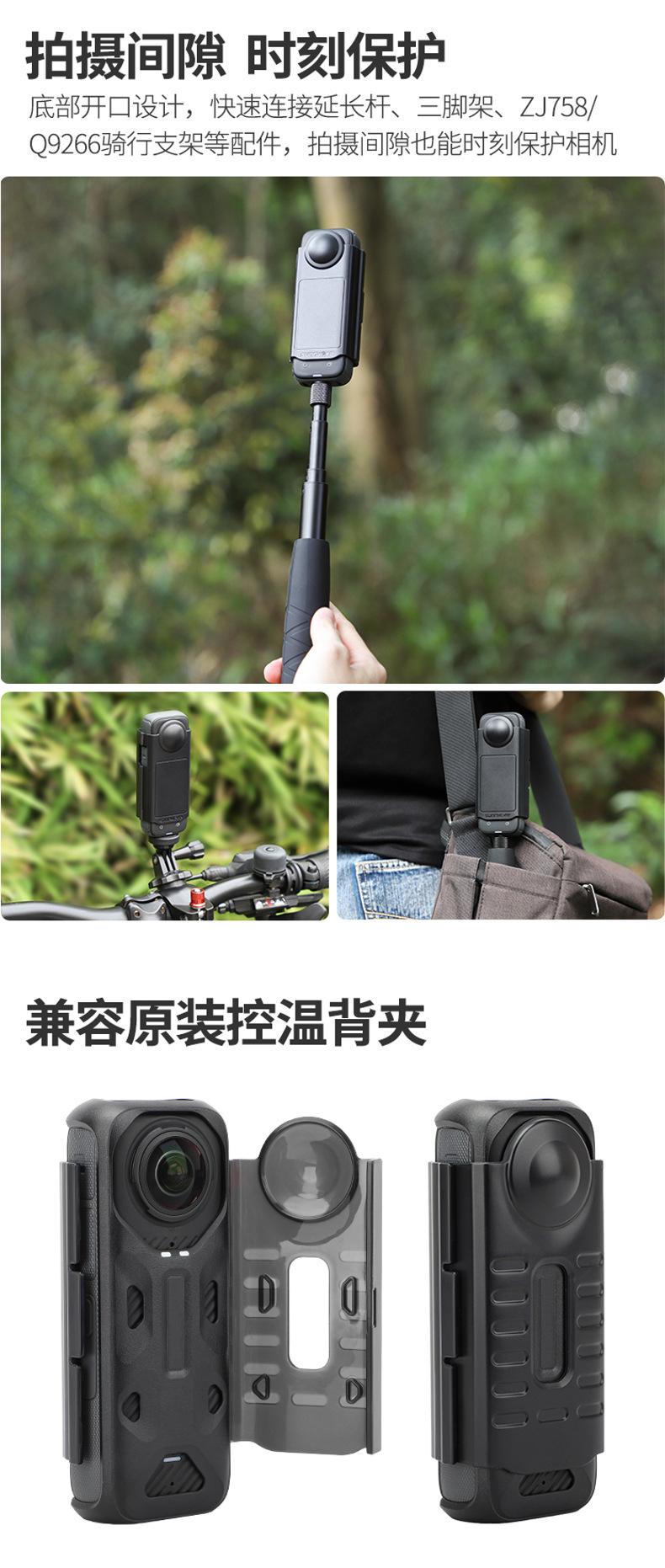 El diseño de apertura inferior permite la conexión rápida a accesorios como barras de extensión, trípodes, soportes para ciclismo ZJ758/Q9266, etc., para que la cámara pueda protegerse en todo momento durante las pausas de grabación.