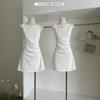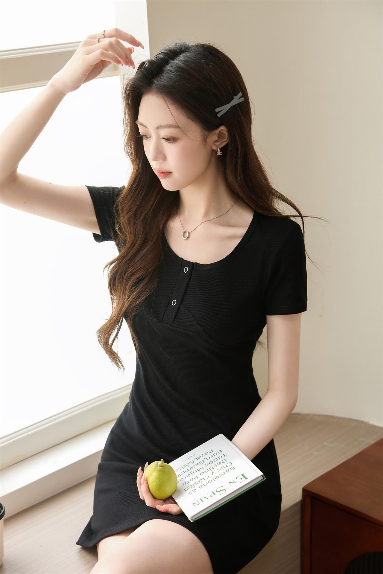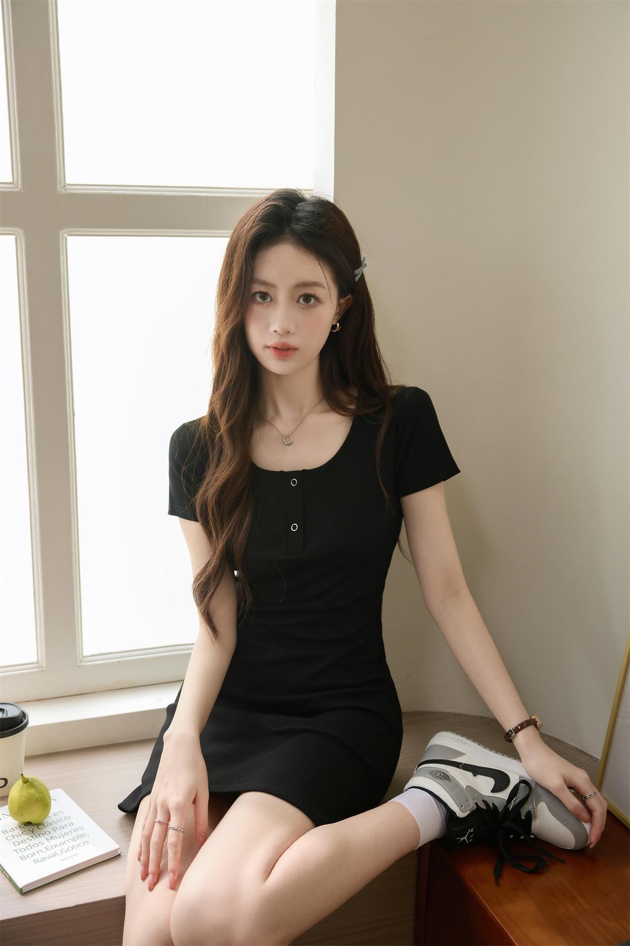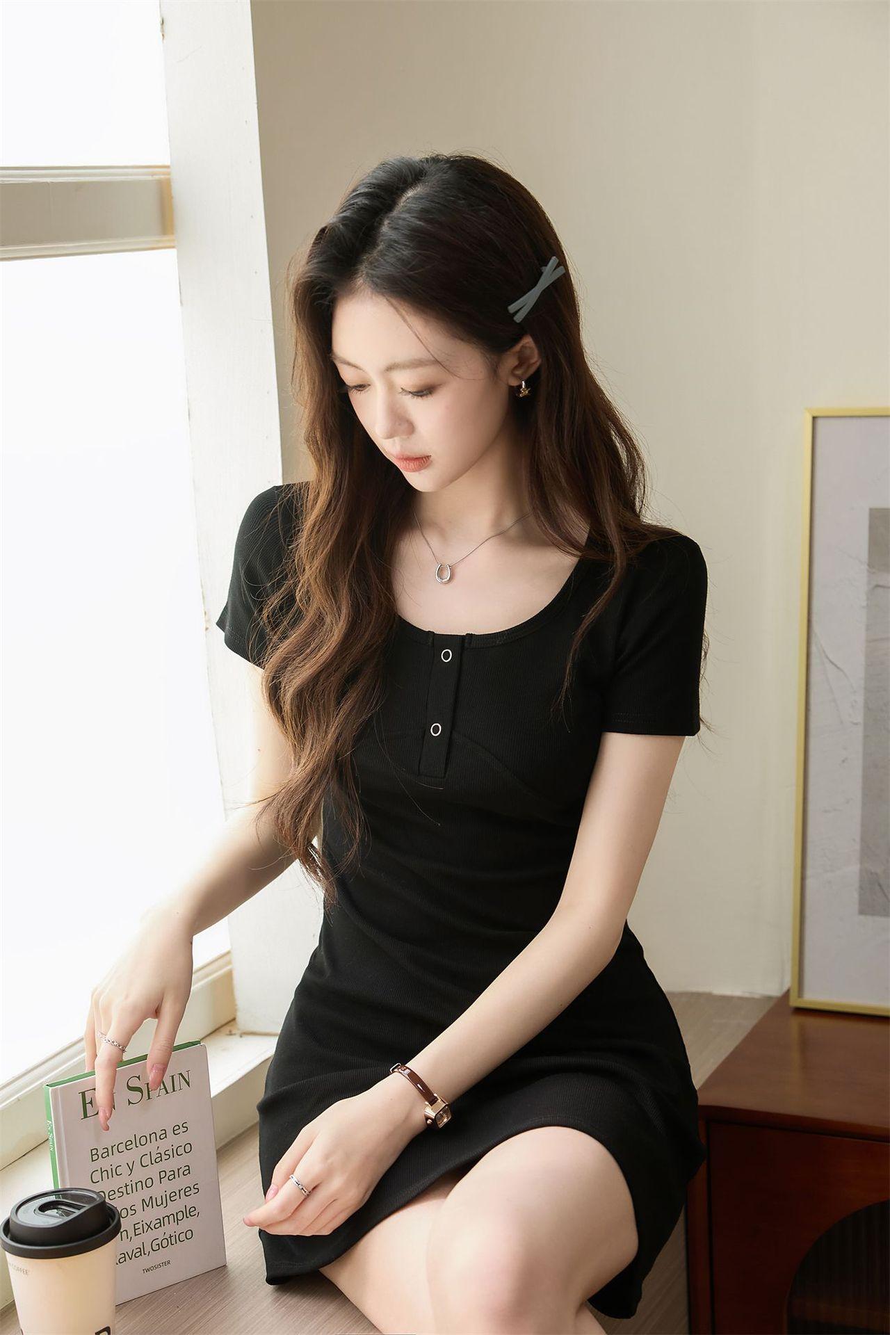[Select You Cotton] Vestido Francés Negro Corto Línea A Cuello Cuadrado para Mujer Verano 2025 Nuevo Algodón Puro Sexy Falda Corta