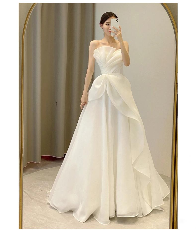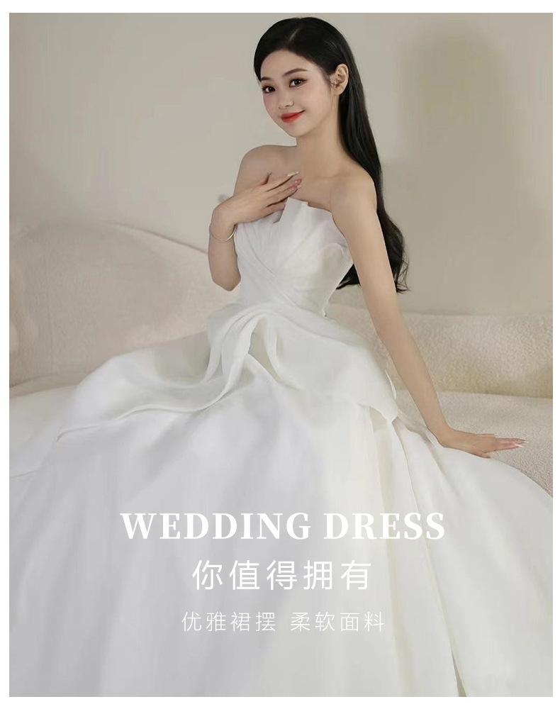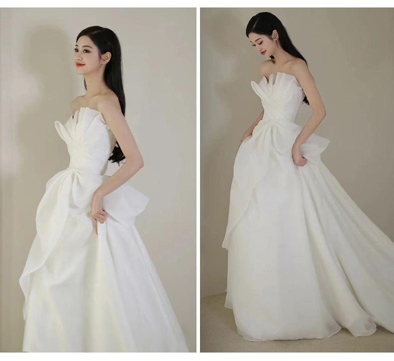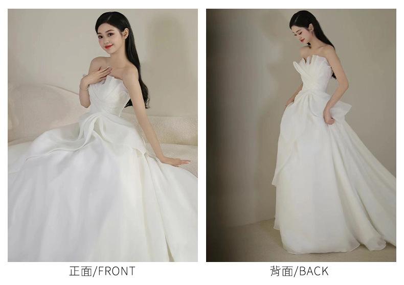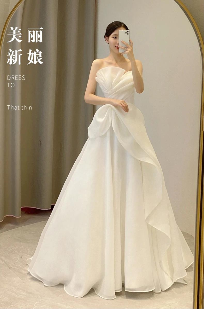Vestido de Novia Ligero 2025 Nuevo Strapless Sencillo Salida Gasa Look Adelgazante Gasa Principal Fotografía de Viaje Gasa de Bienvenida Vestido Cola Pequeña