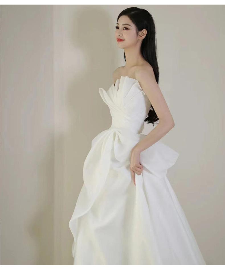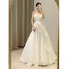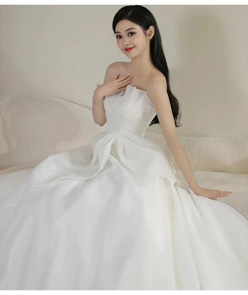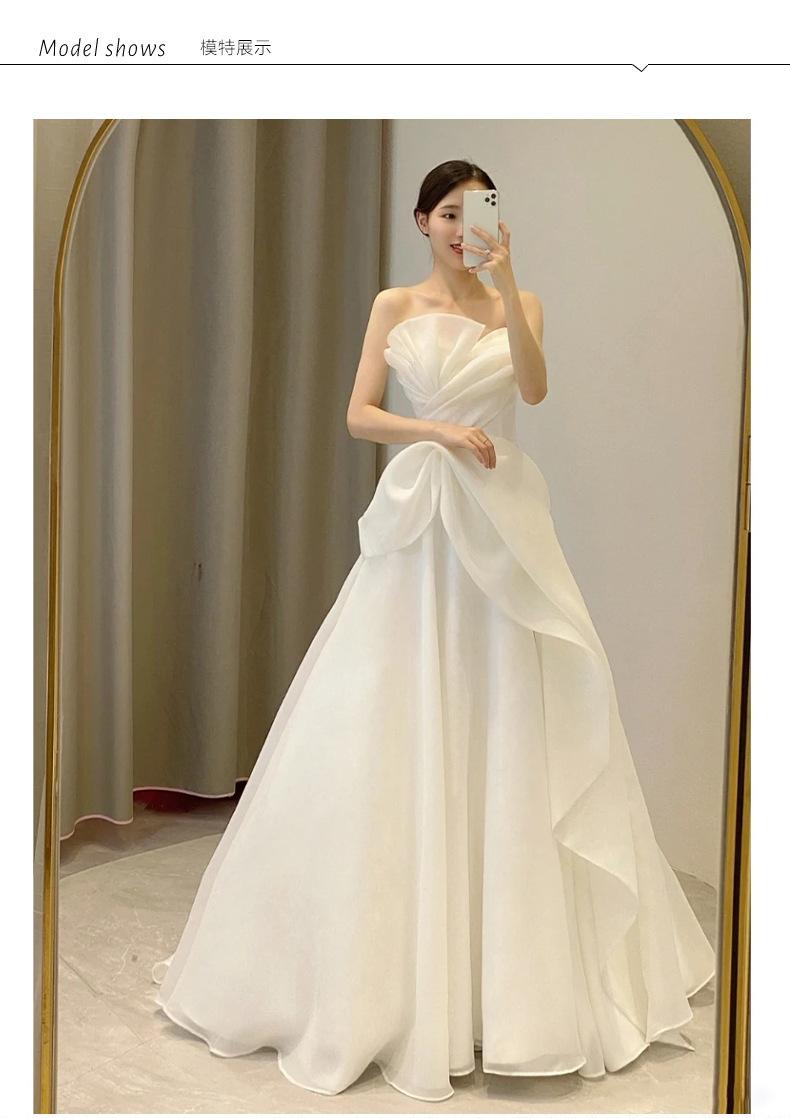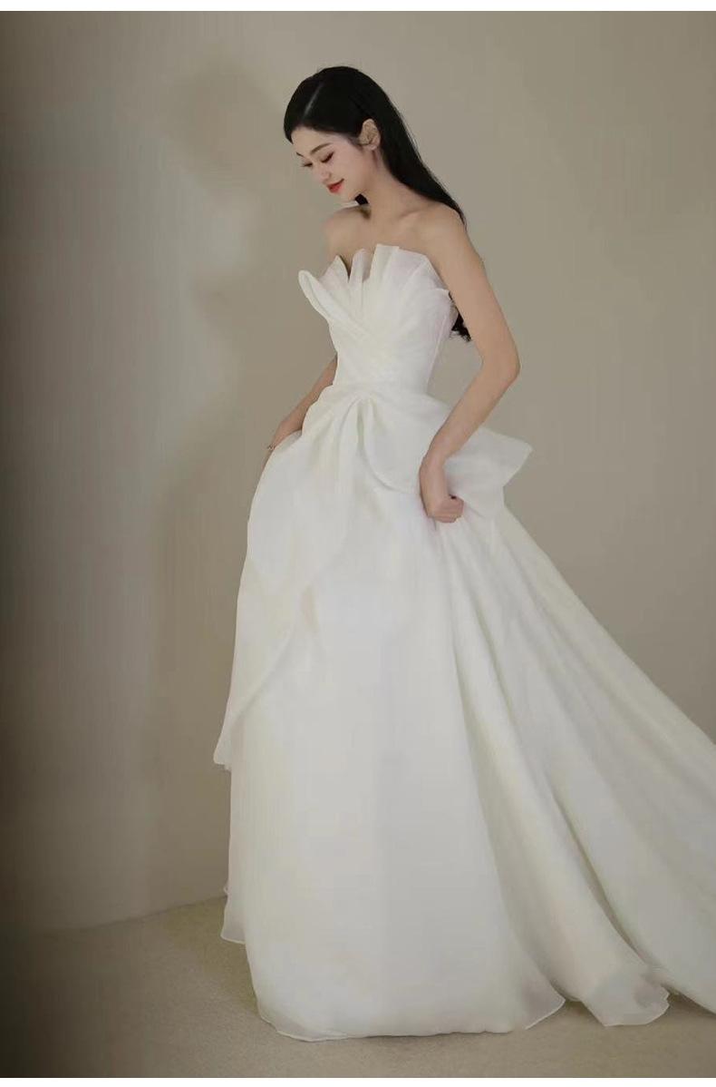 Vestido de Novia Ligero 2025 Nuevo Strapless Sencillo Salida Gasa Look Adelgazante Gasa Principal Fotografía de Viaje Gasa de Bienvenida Vestido Cola Pequeña