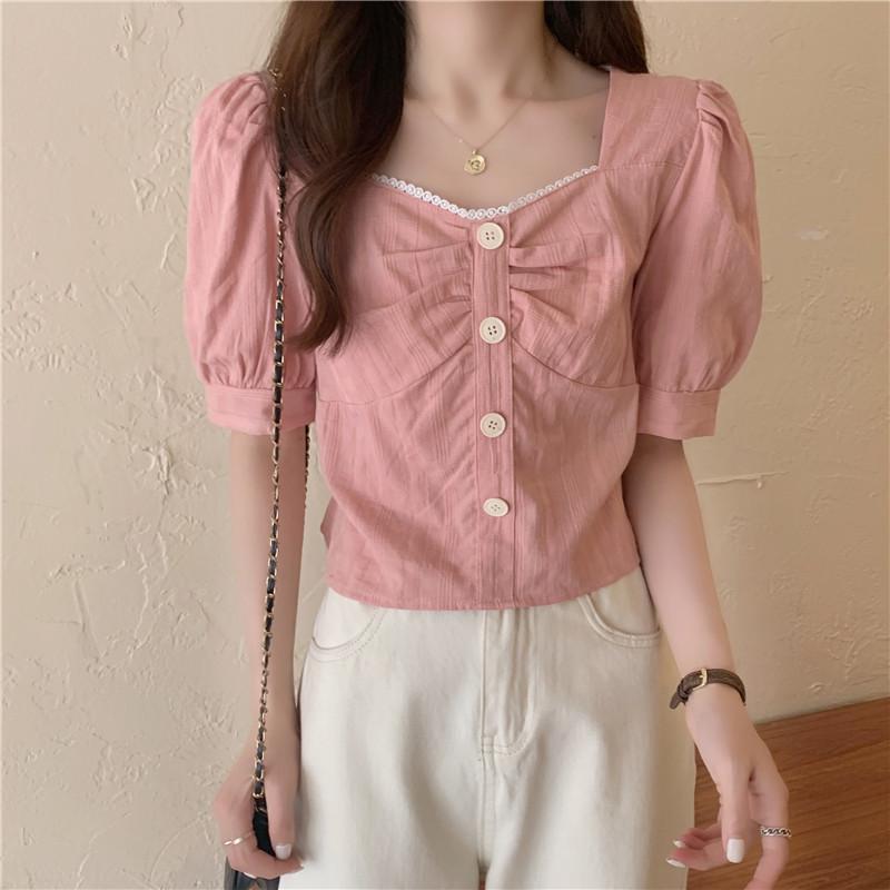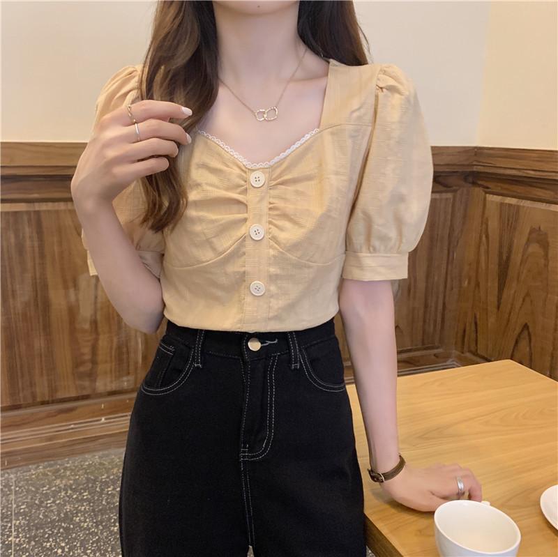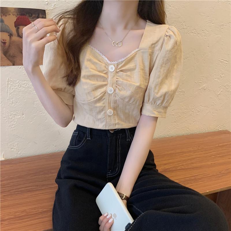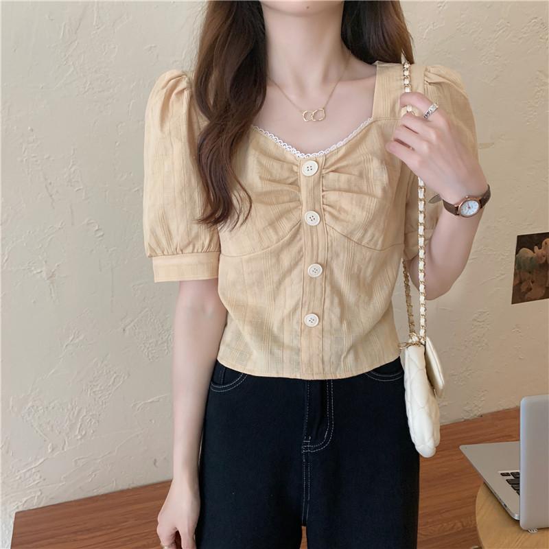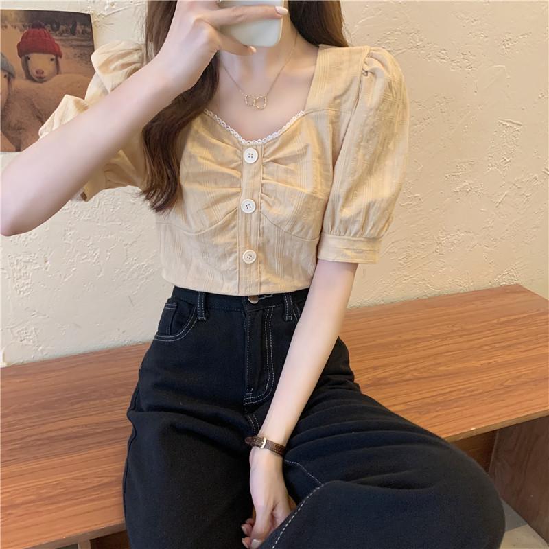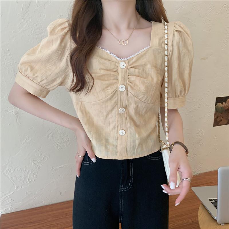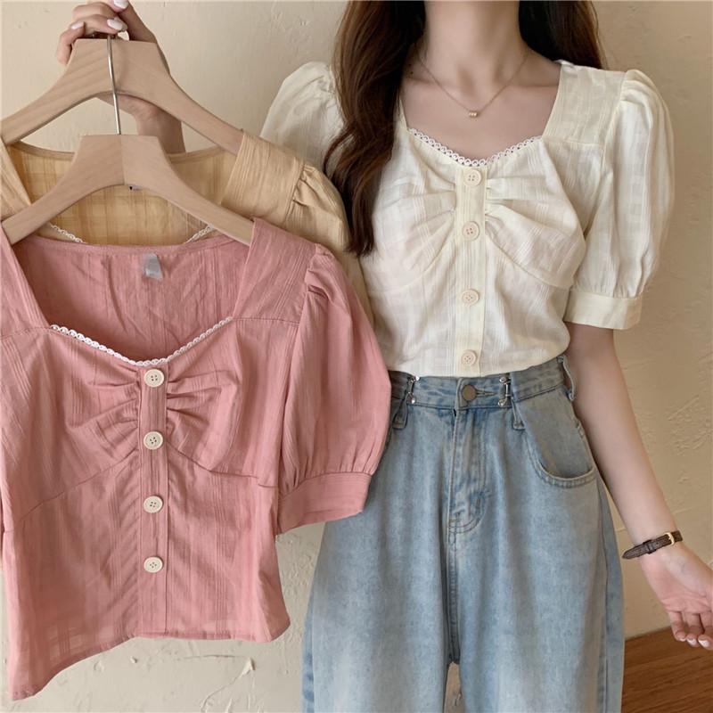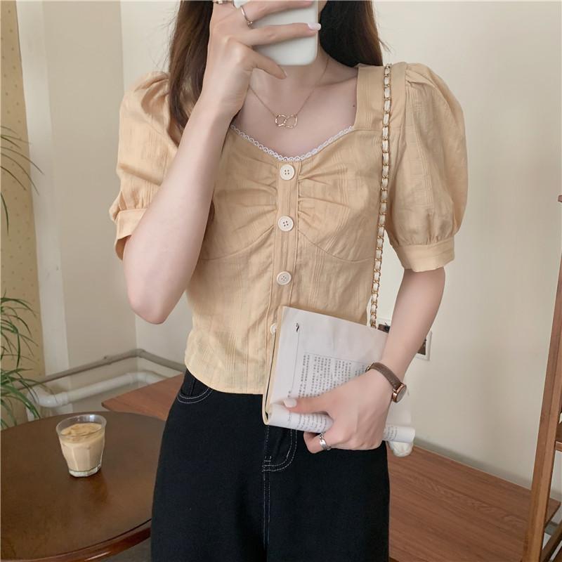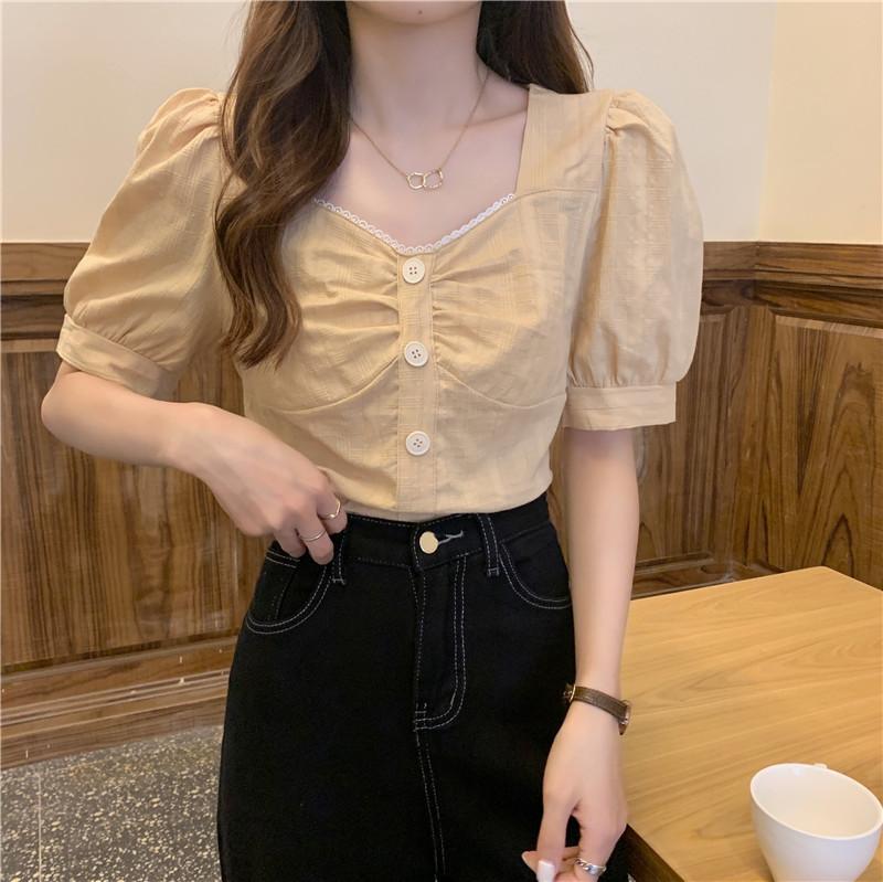 Camisa de diseño de nicho para mujer, fina, de verano 2024, estilo francés, elegante, ajustada, con mangas abullonadas, moderna.