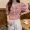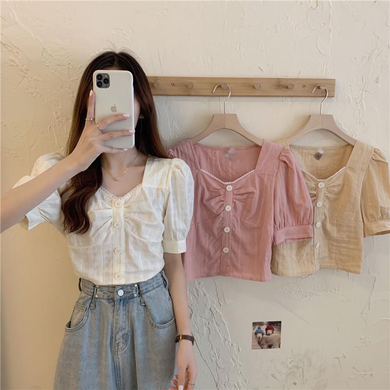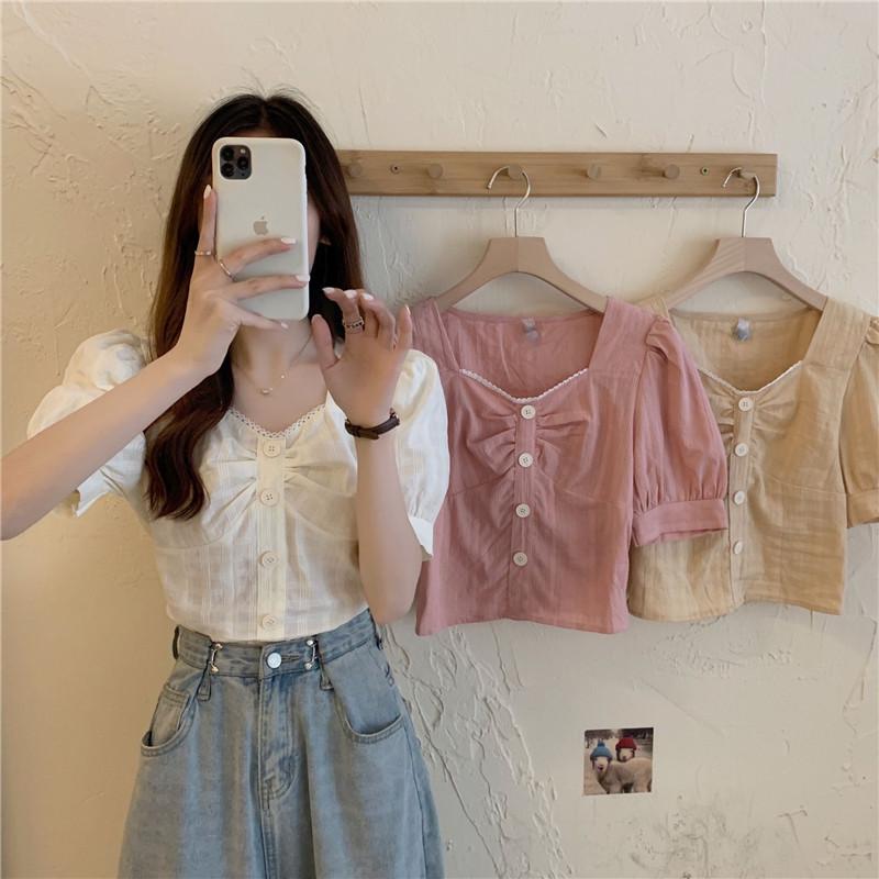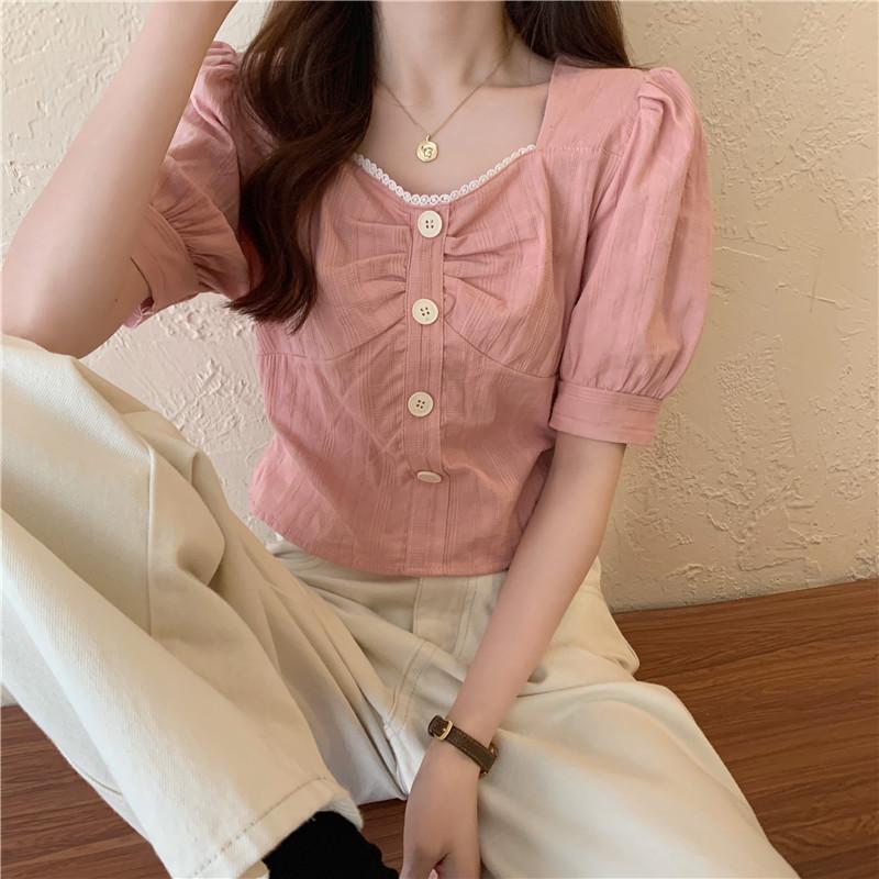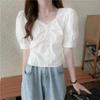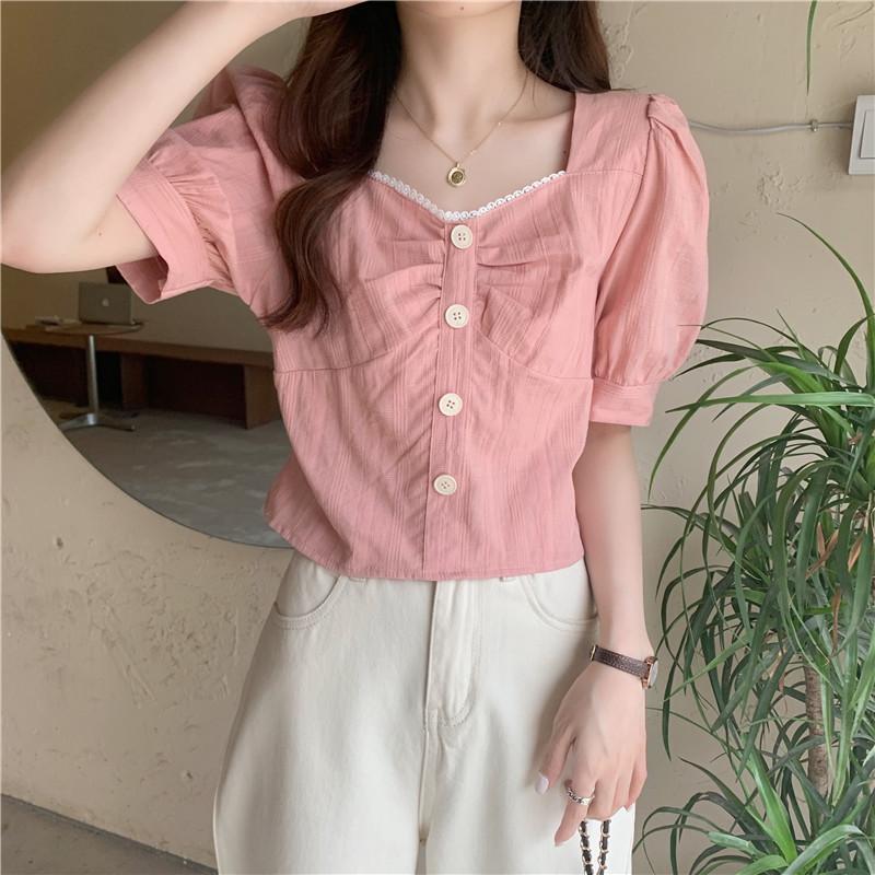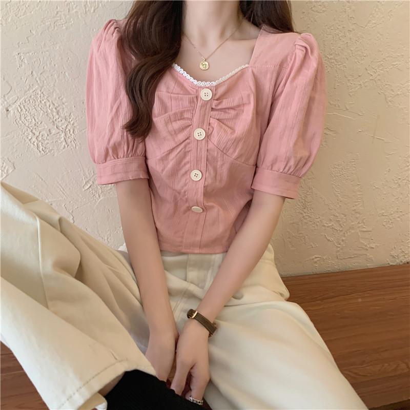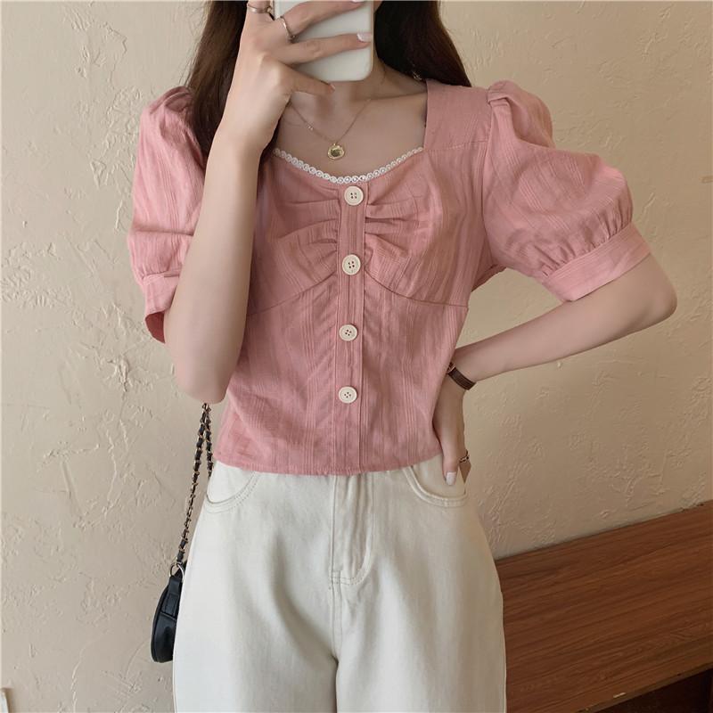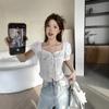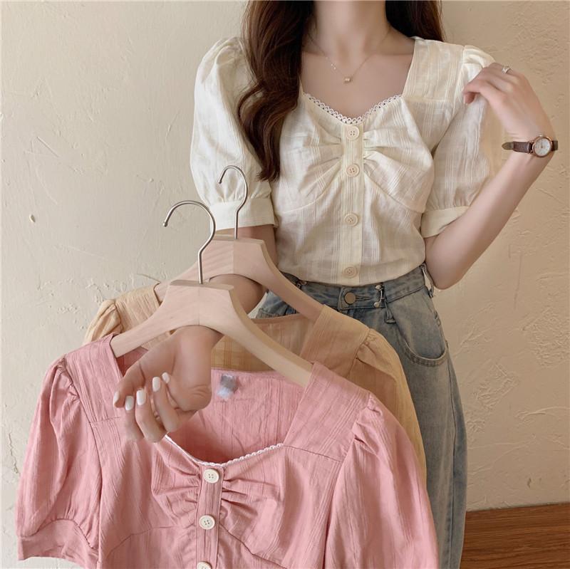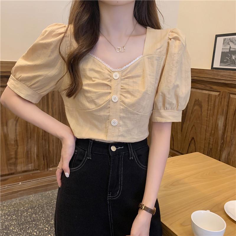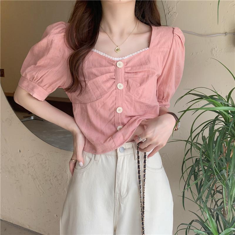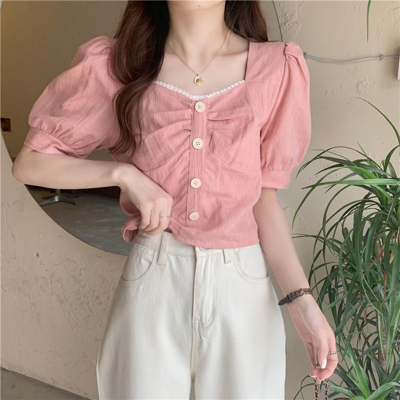 Camisa de diseño de nicho para mujer, fina, de verano 2024, estilo francés, elegante, ajustada, con mangas abullonadas, moderna.