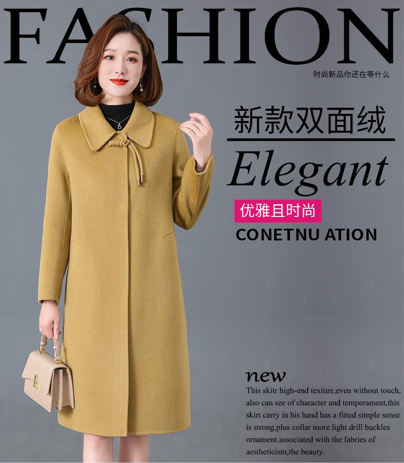 Abrigo de Lana de Doble Vista para Madre 2025 Invierno Abrigo de Lana de Moda para Mujeres de Mediana Edad y Mayores Color Sólido Estilo de Longitud Media
