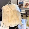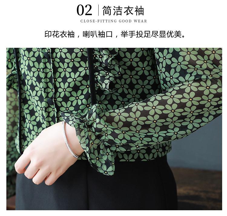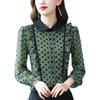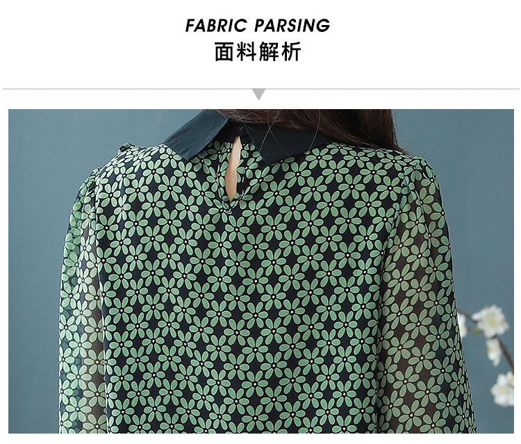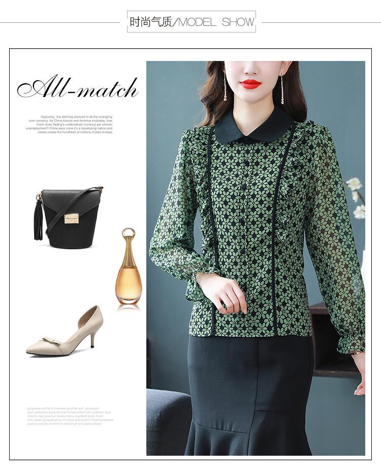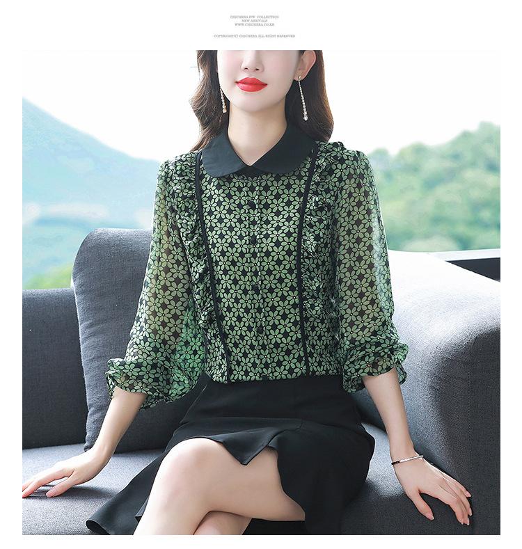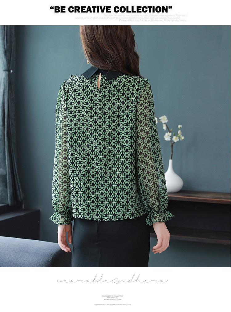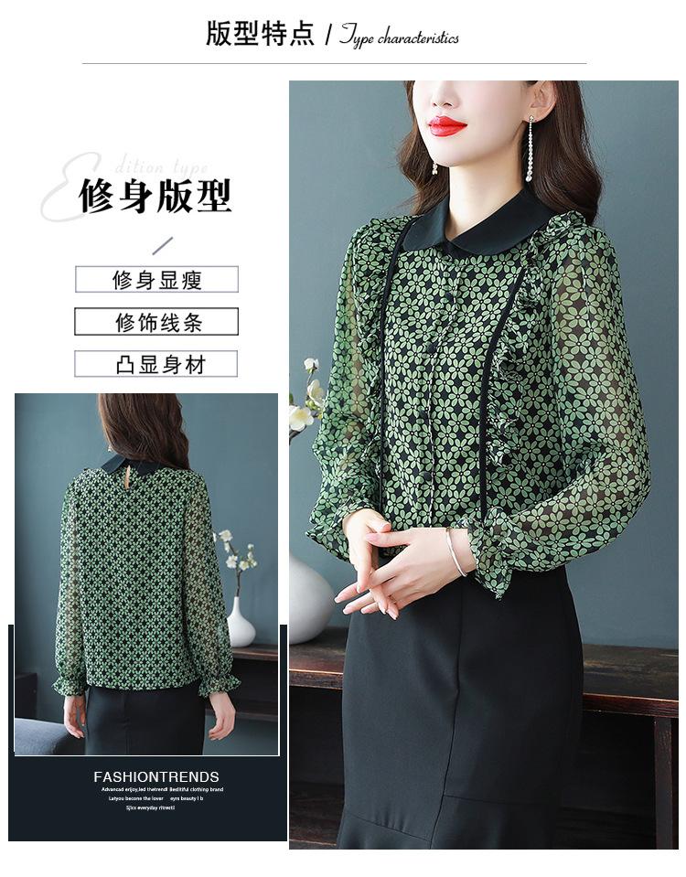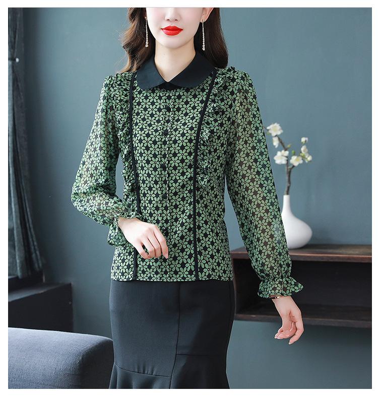 Primavera 2023 Nuevo Estilo Solapa de Color Contrastante Empalmado con Volantes Versátil Top Floral Elegante Camisa de Gasa Moderna
