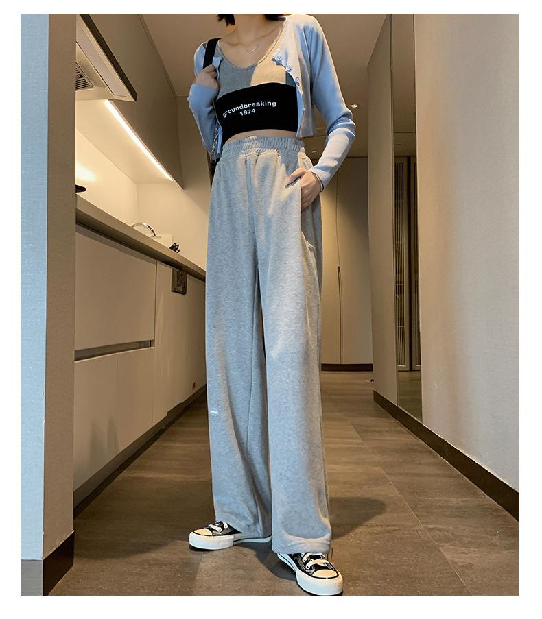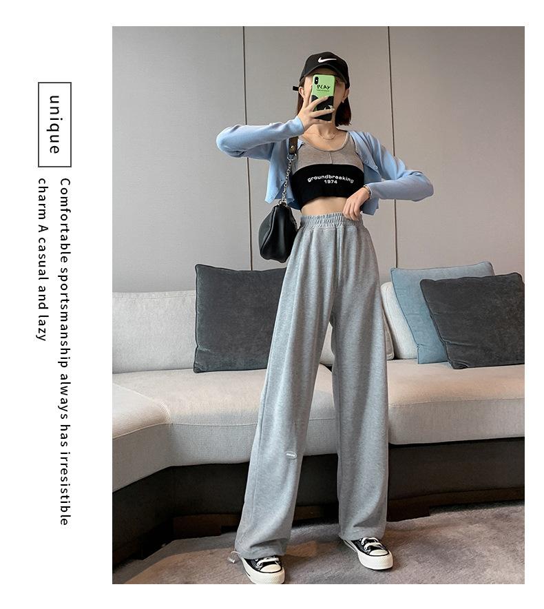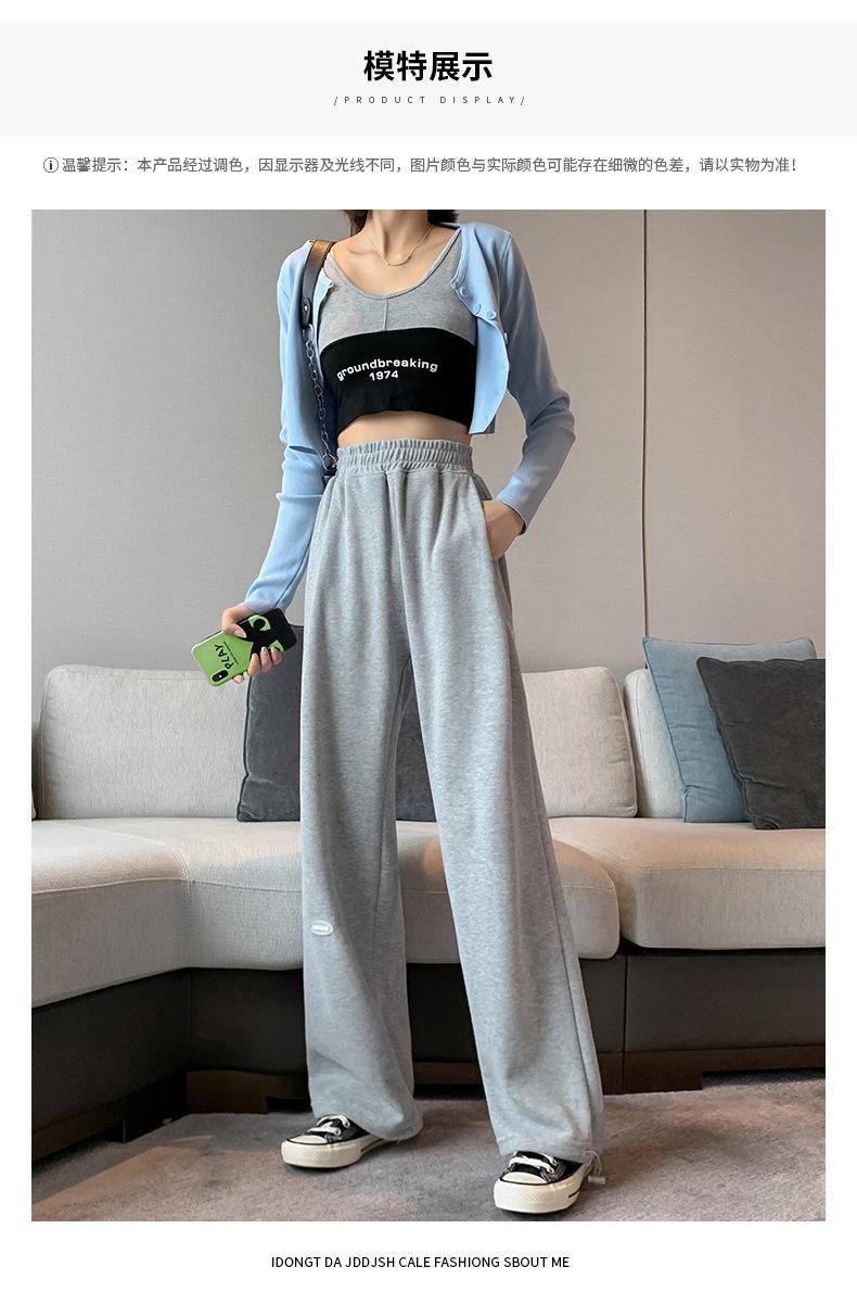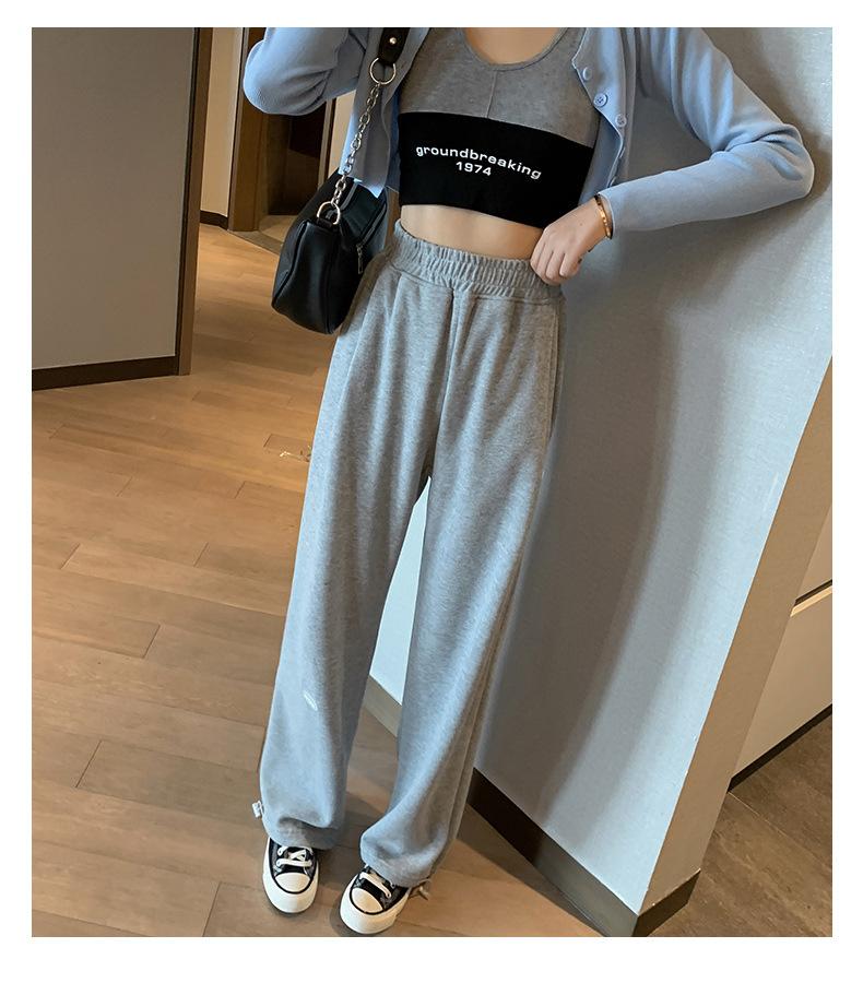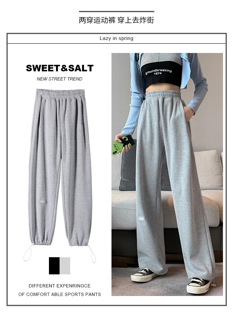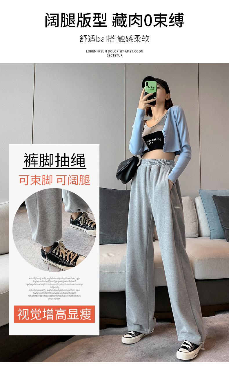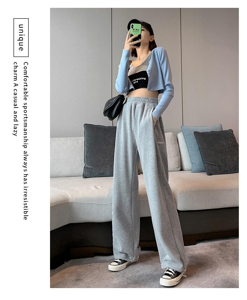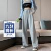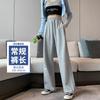 Pantalones deportivos para mujer, primavera y otoño, holgados y casuales, rectos, de cintura alta, con cordón, color gris y pierna ancha.