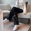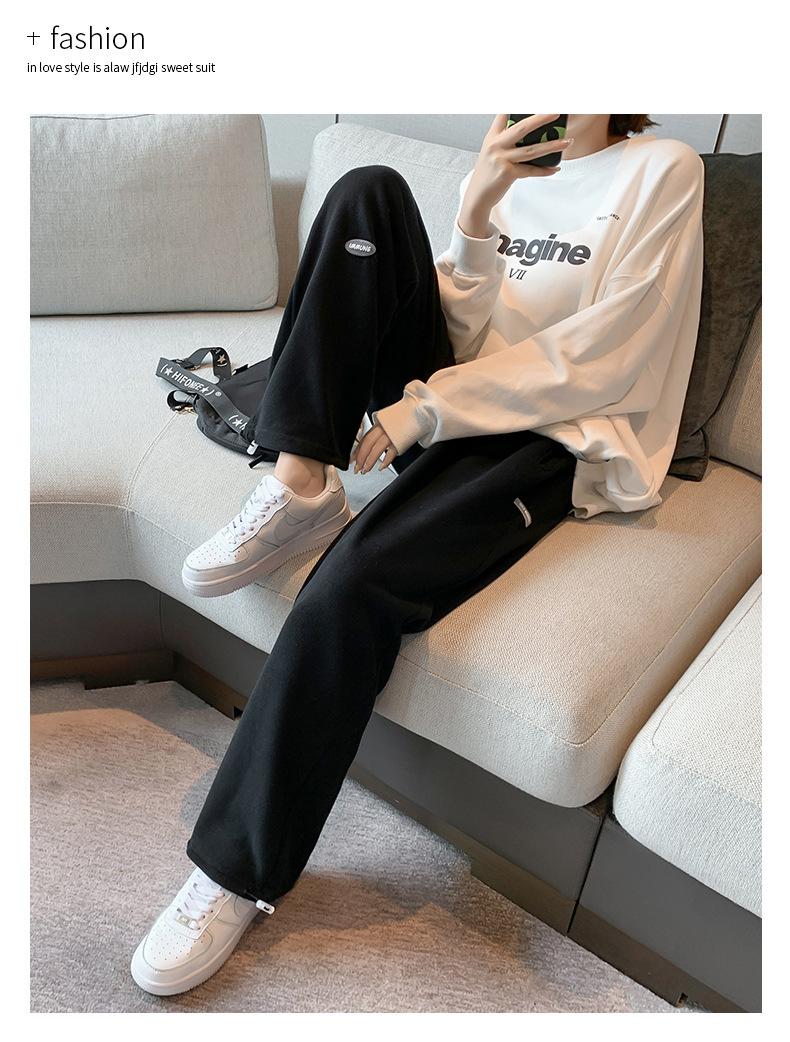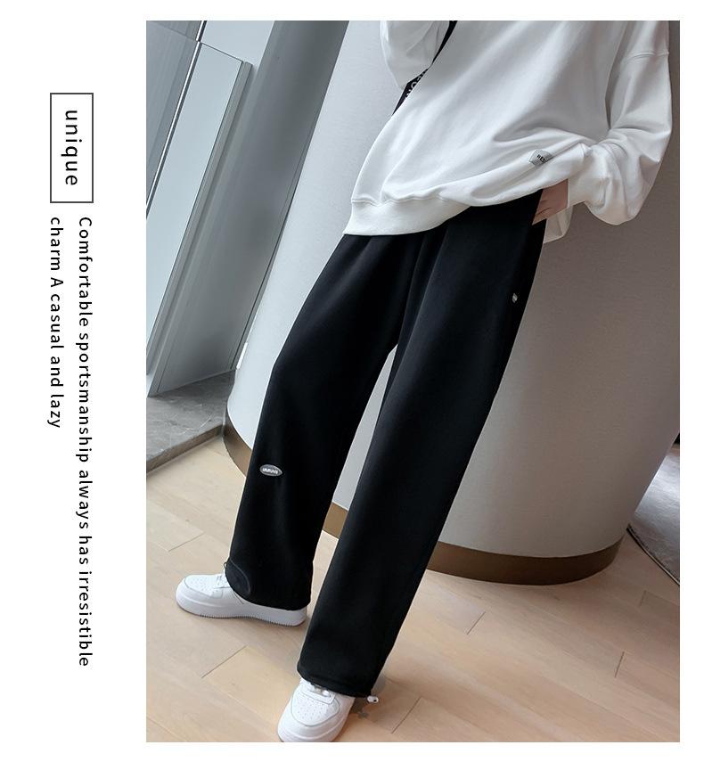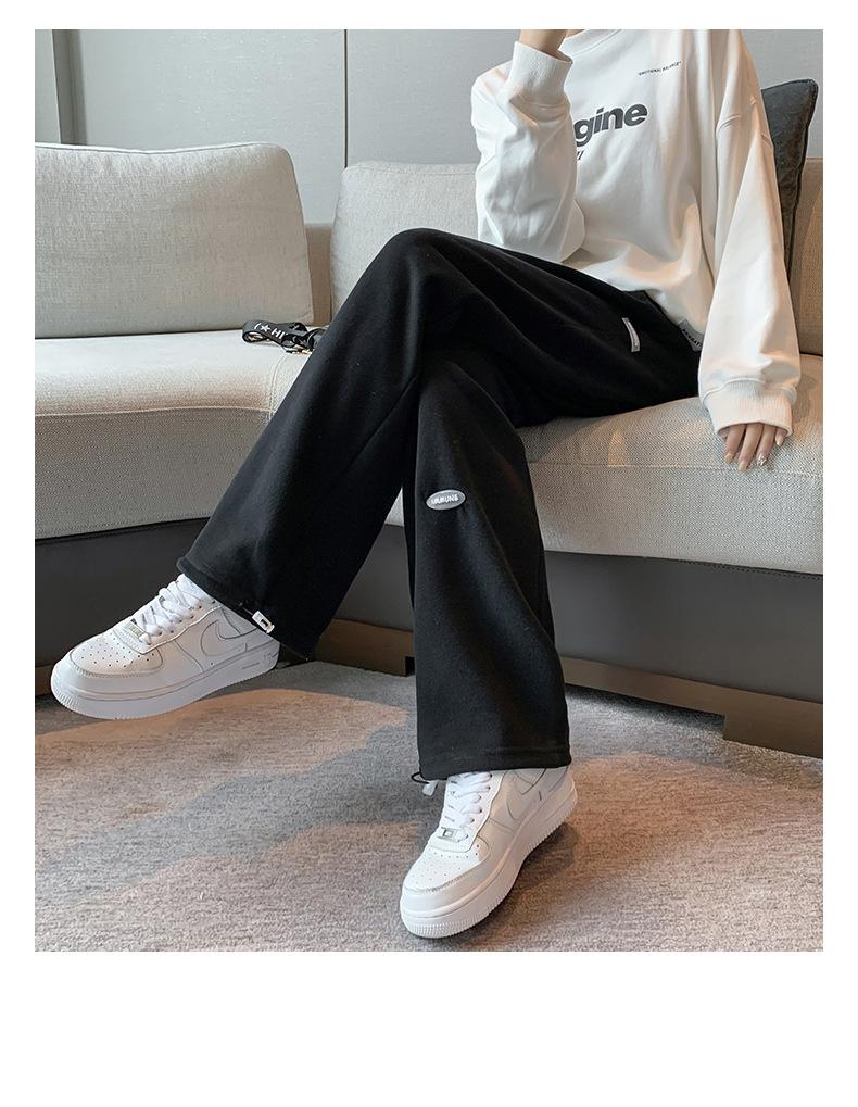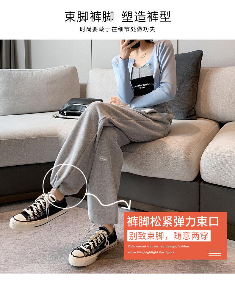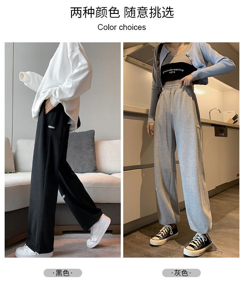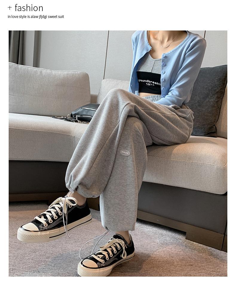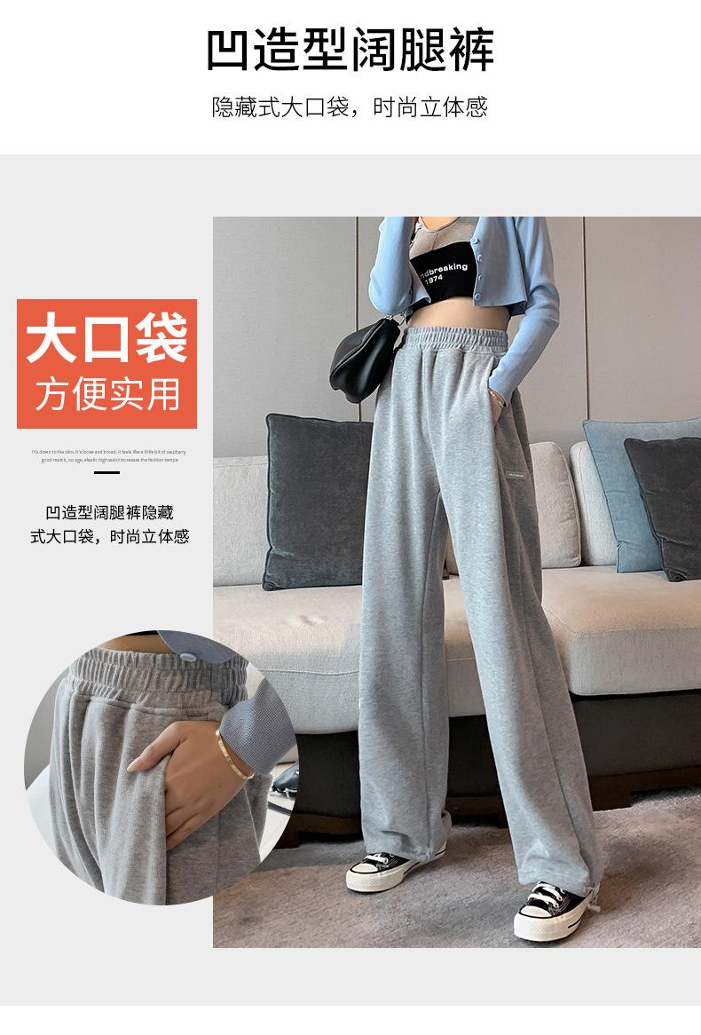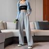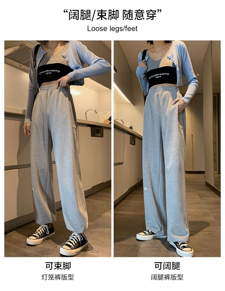 Pantalones deportivos para mujer, primavera y otoño, holgados y casuales, rectos, de cintura alta, con cordón, color gris y pierna ancha.