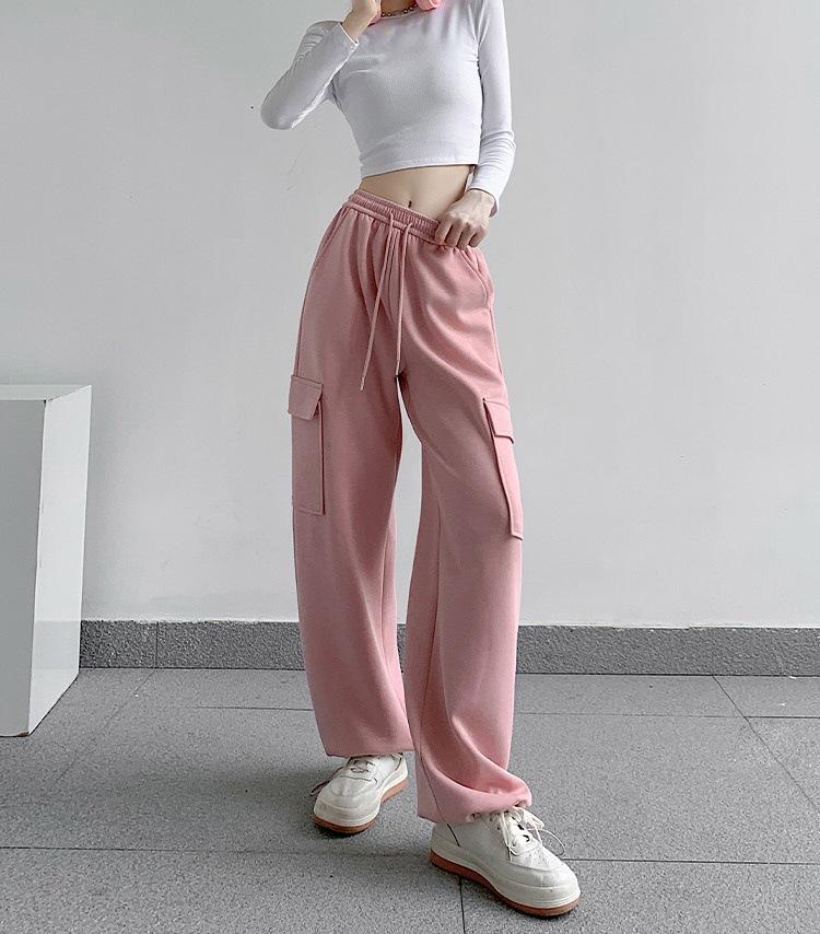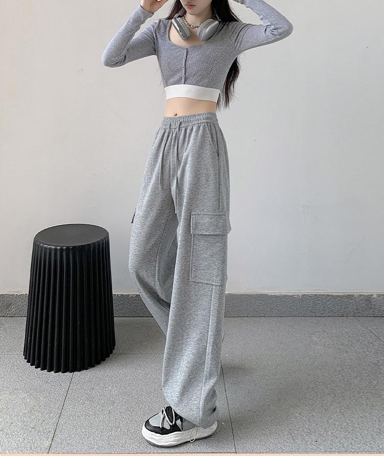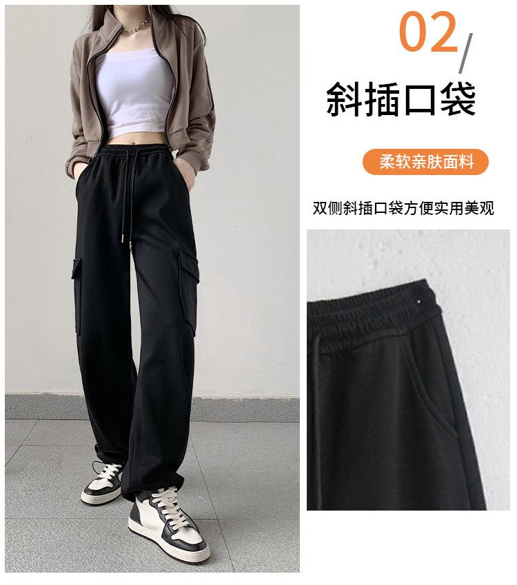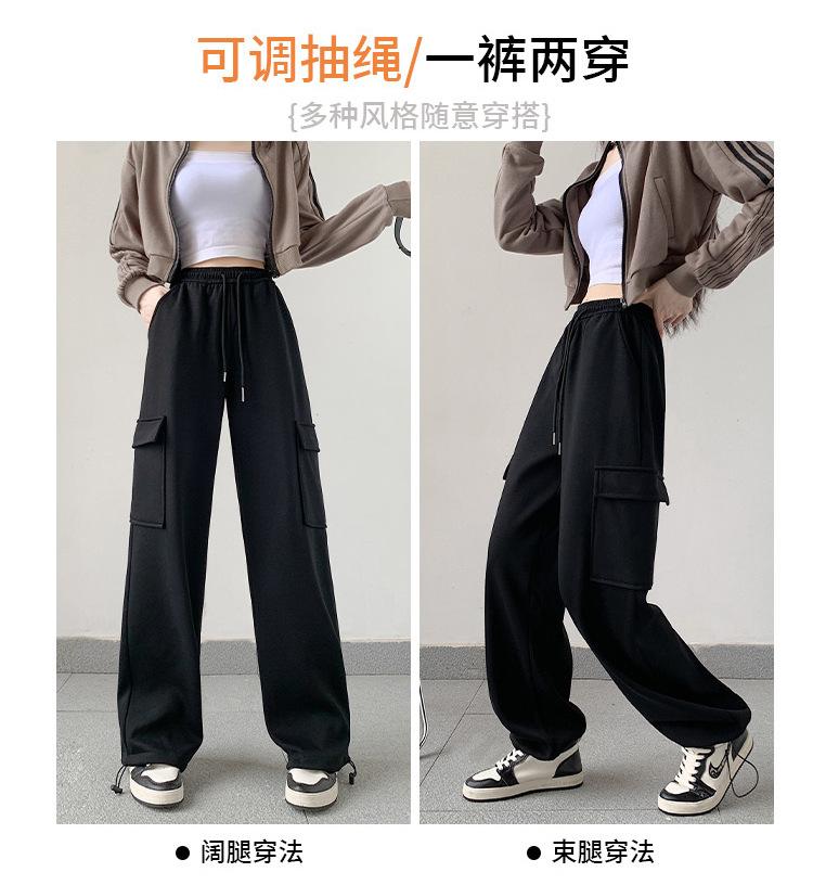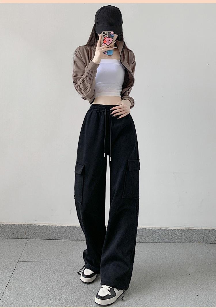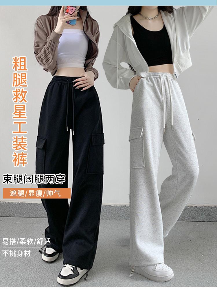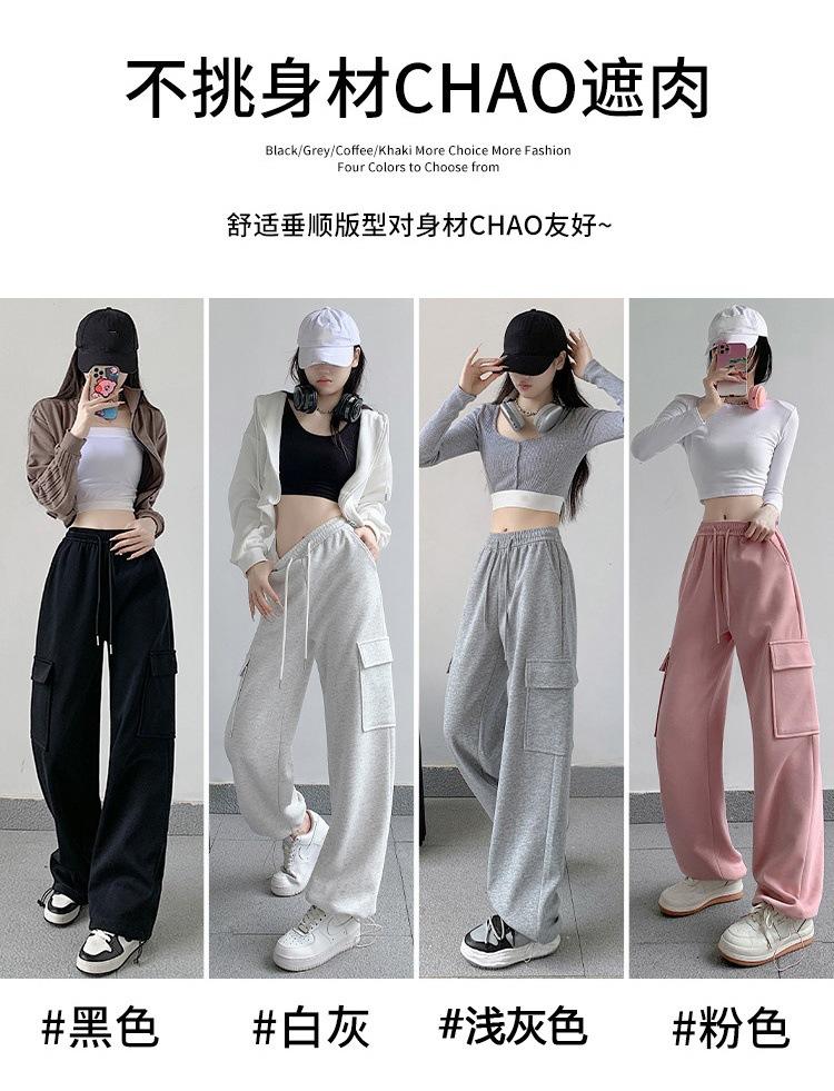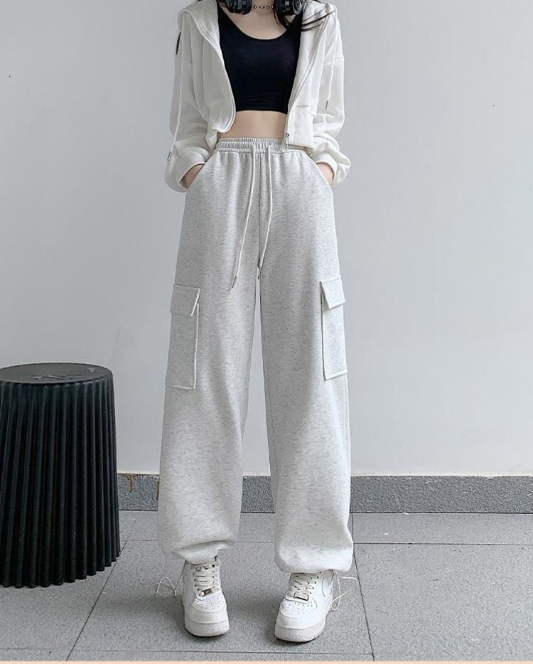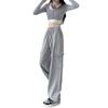 Pantalones deportivos de bolsillo grande para mujer Primavera y Otoño nuevos casuales sueltos cintura alta adelgazantes grises pantalones deportivos tobilleros overoles americanos