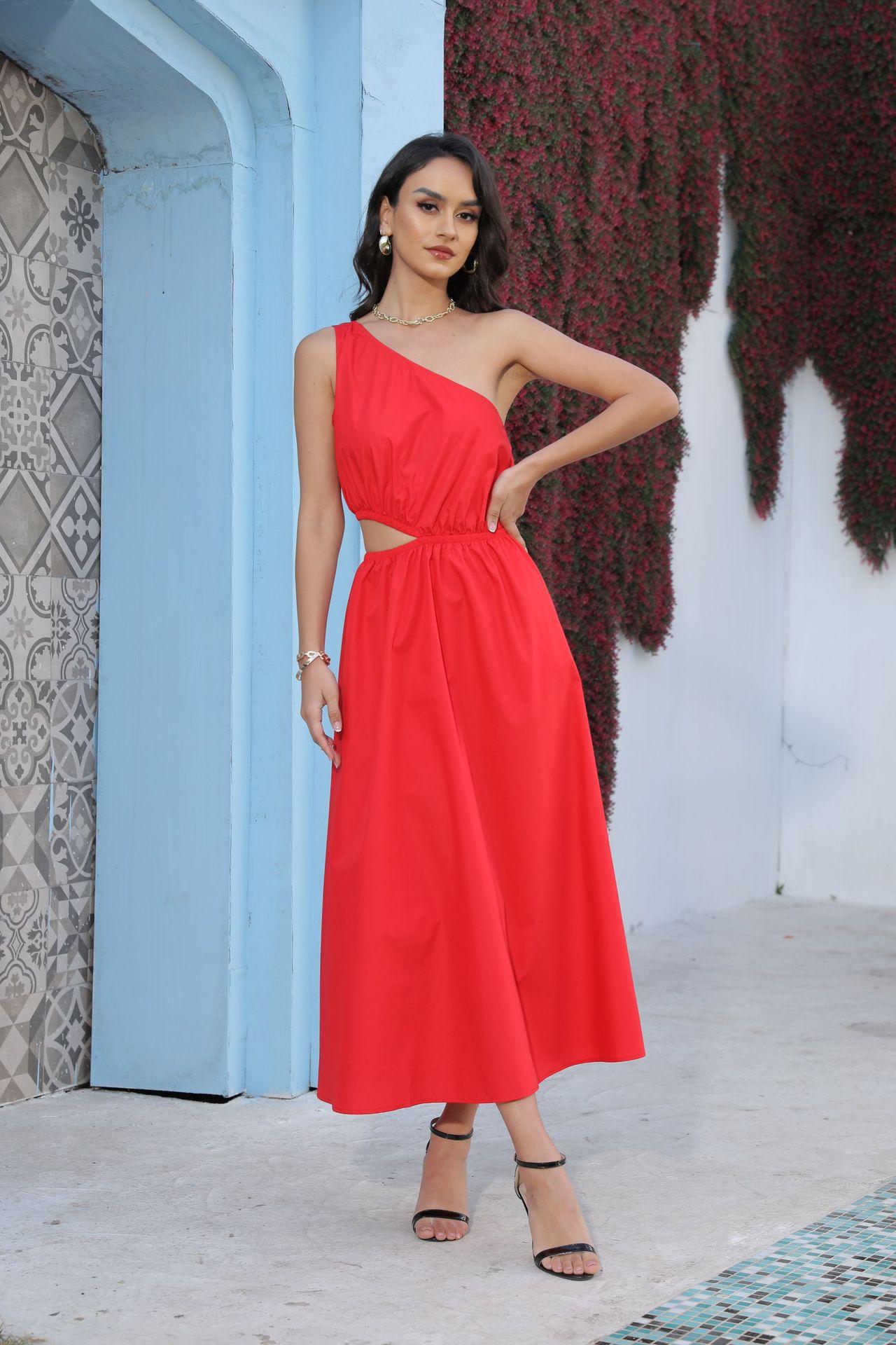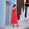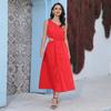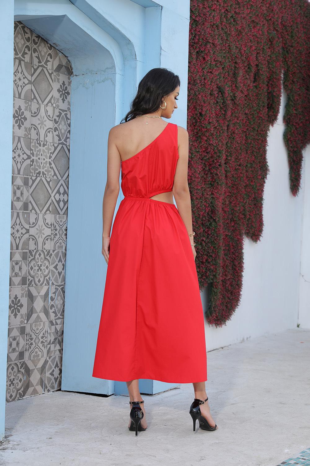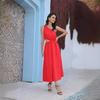 Vestido rojo ropa de mujer 2024 Nuevo vestido francés de fiesta con hombros descubiertos y cintura ajustada Falda de playa