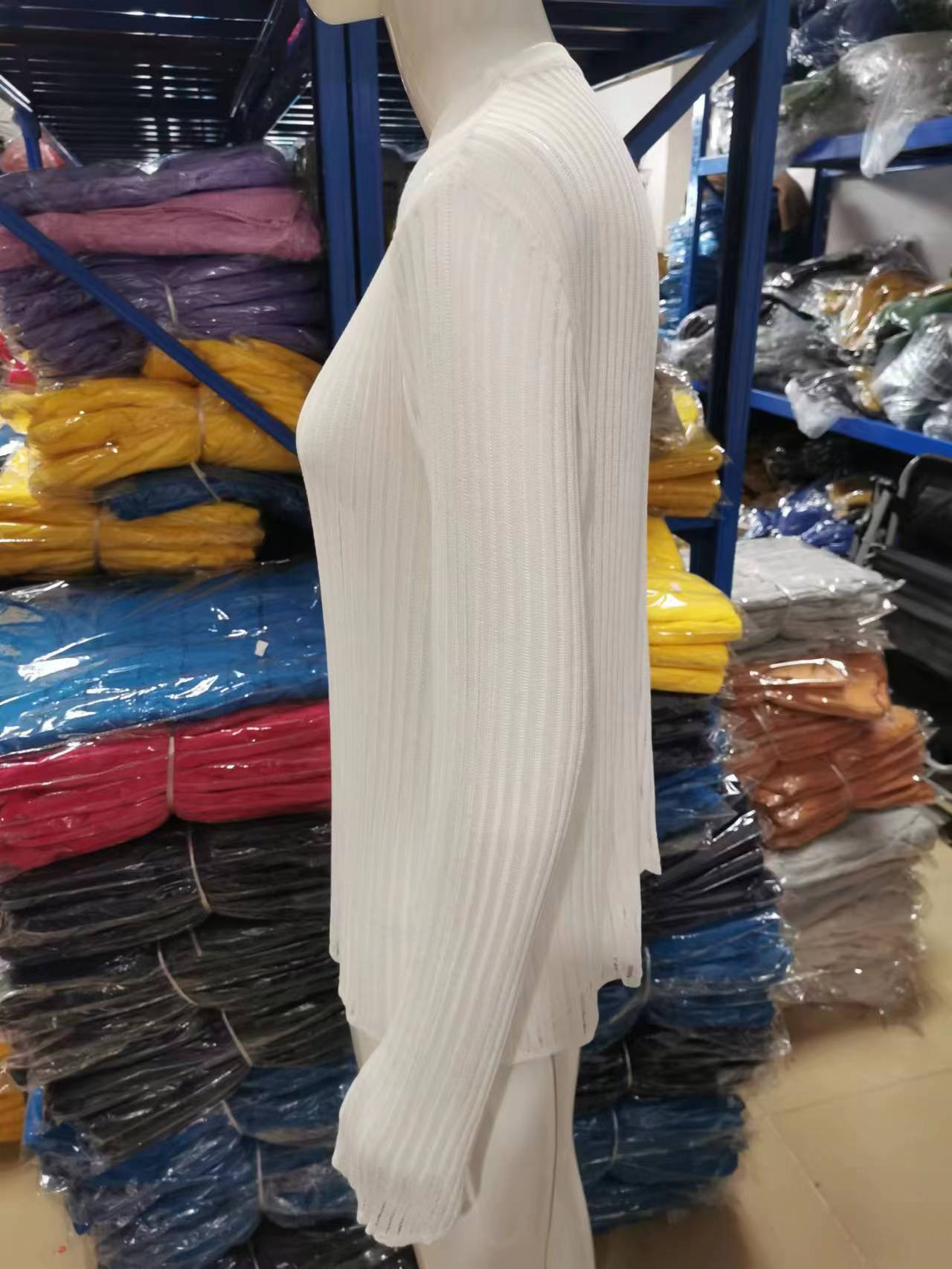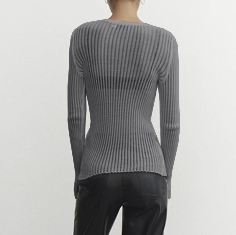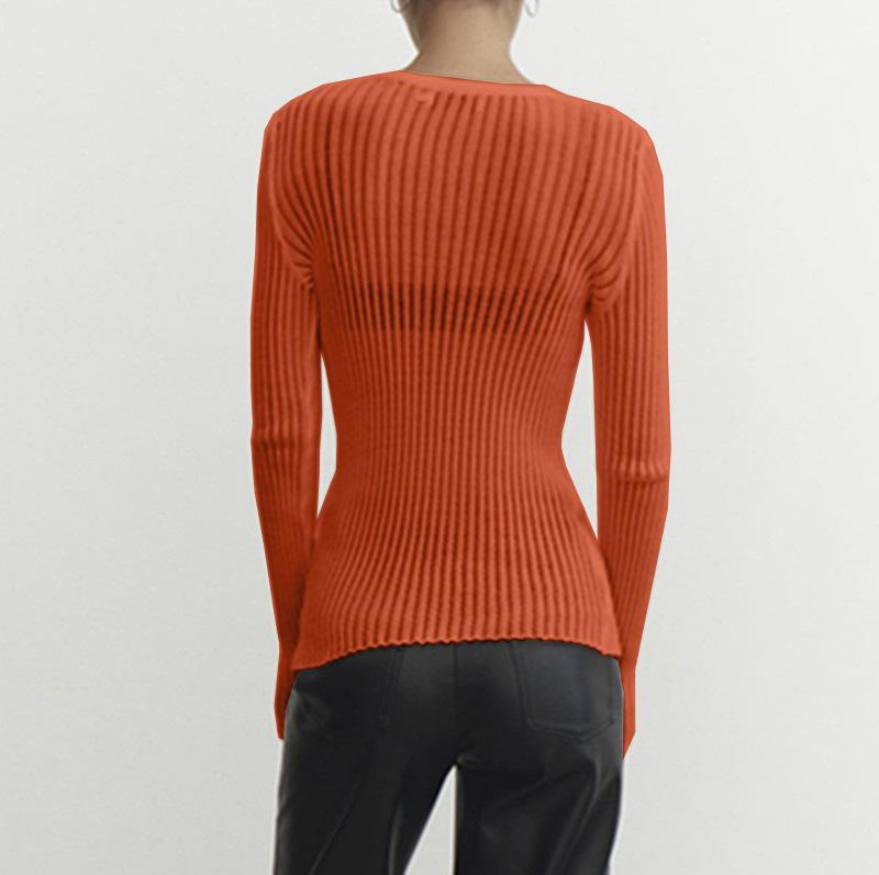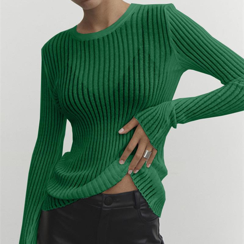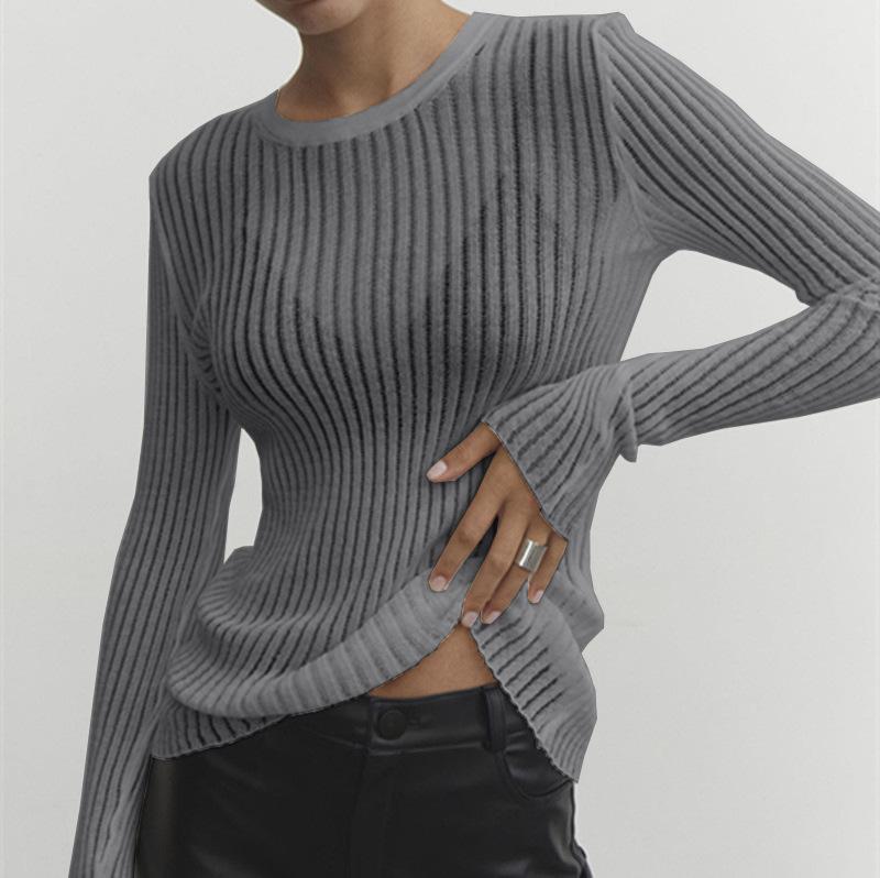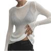 2025 Primavera y Verano Europeo y Americano Nuevo Más Vendido Manga Larga Cuello Redondo Delgado Transpirable Punto Top Blusa Protección Solar