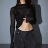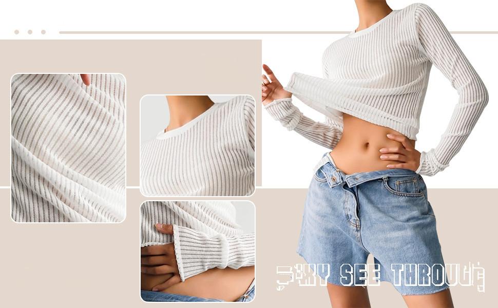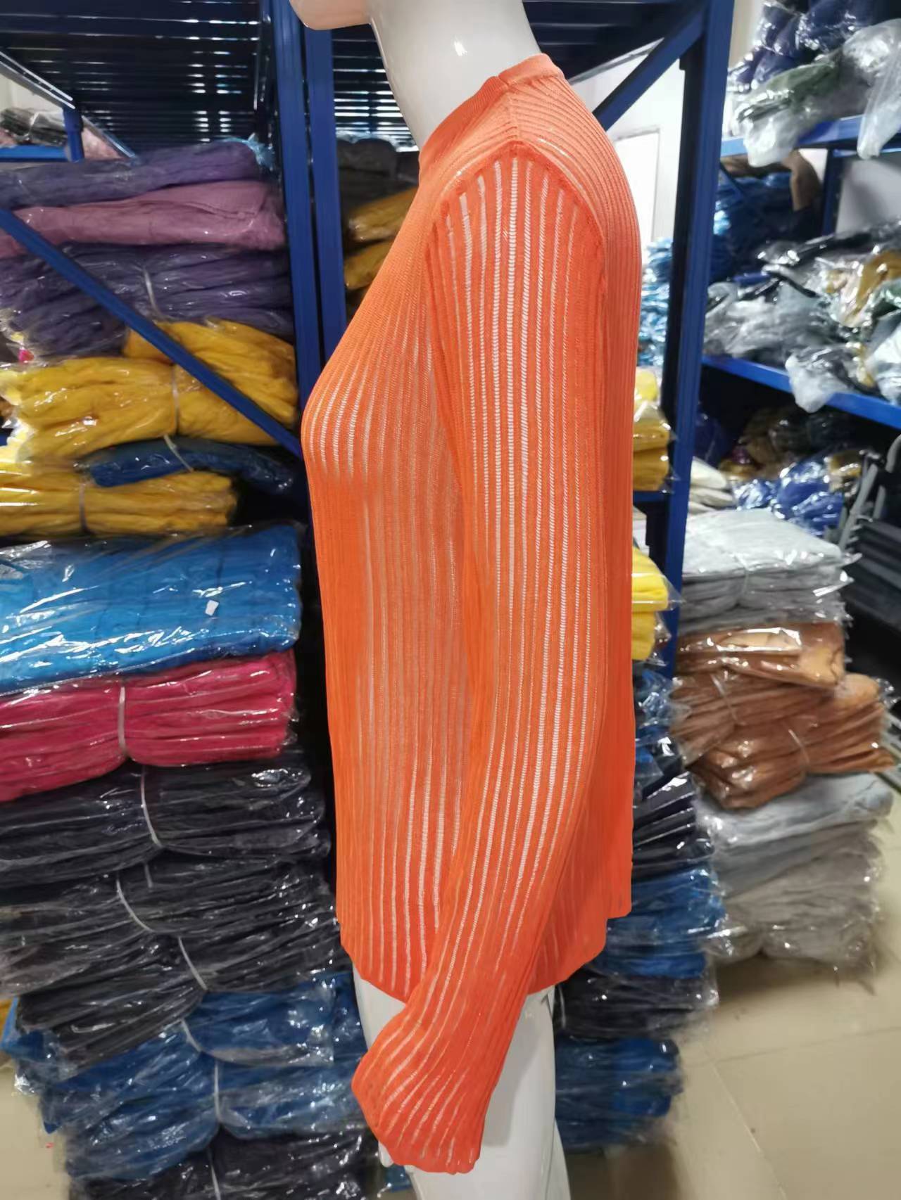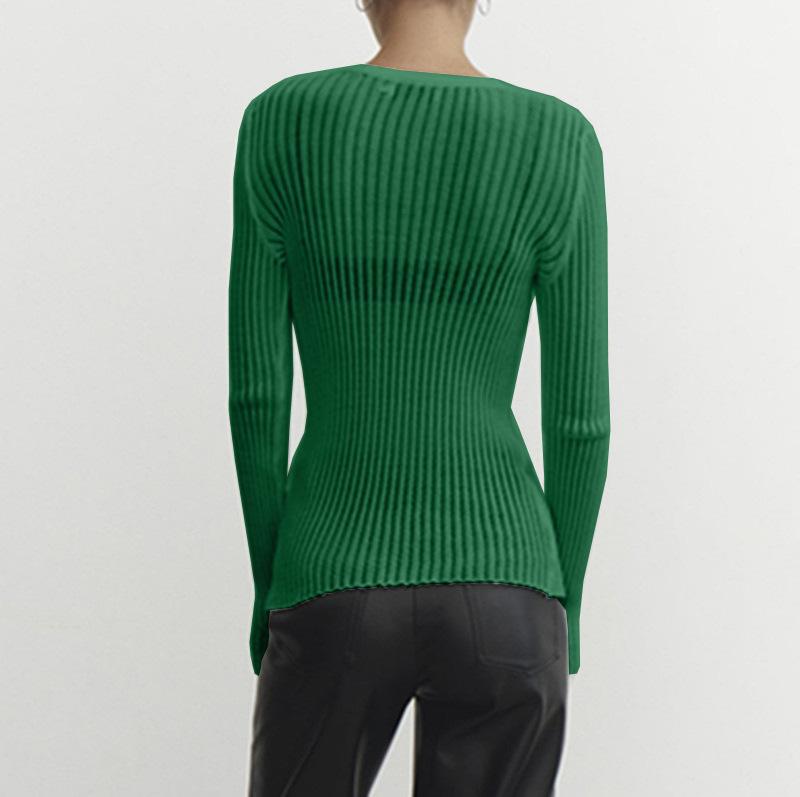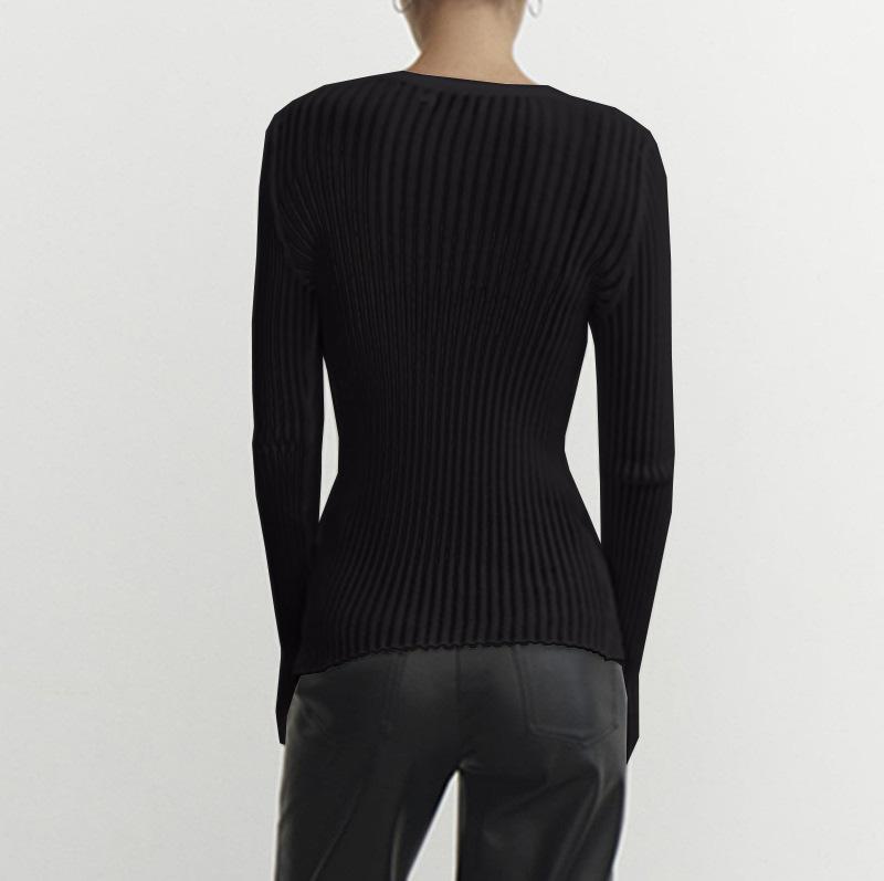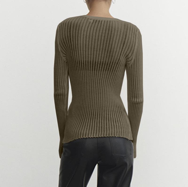 2025 Primavera y Verano Europeo y Americano Nuevo Más Vendido Manga Larga Cuello Redondo Delgado Transpirable Punto Top Blusa Protección Solar