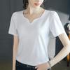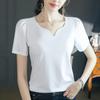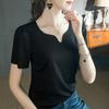 Camiseta de algodón modal con cuello redondo y parte inferior de terciopelo fino para mujer, ropa de otoño 2025, nuevo estilo, ropa interior con mangas de cinco puntos, camiseta de corte entallado para mujer