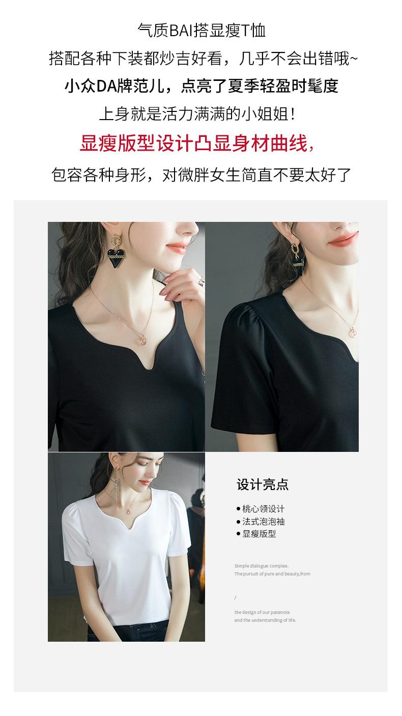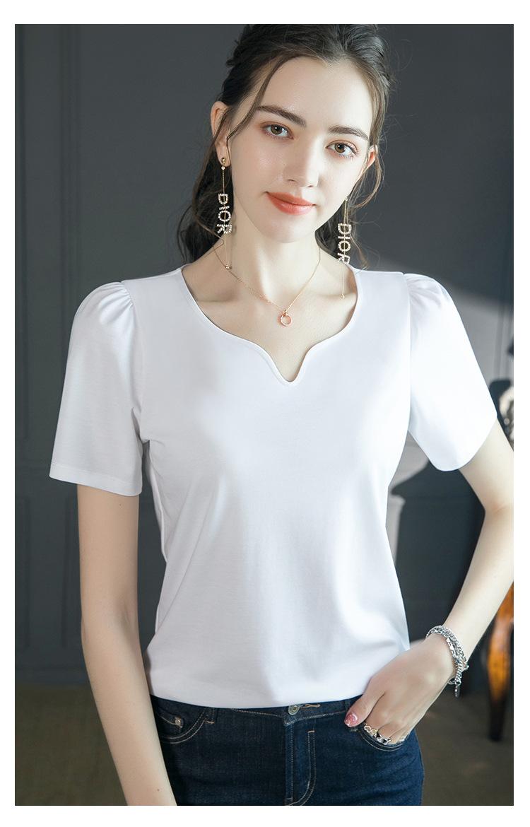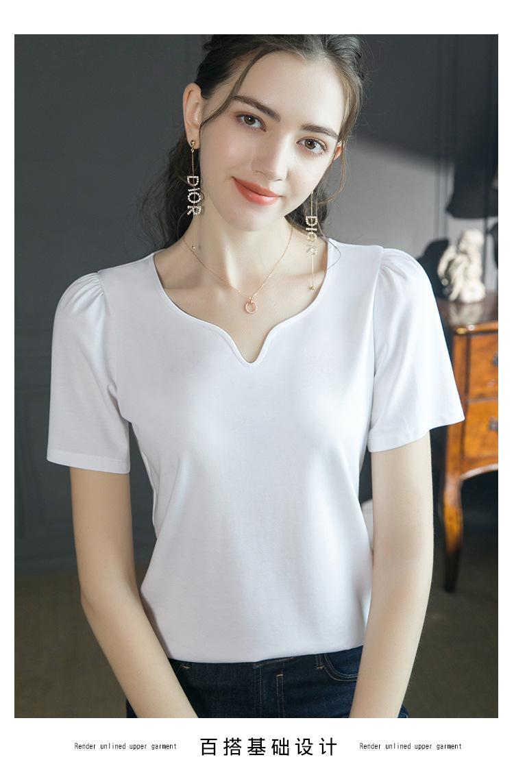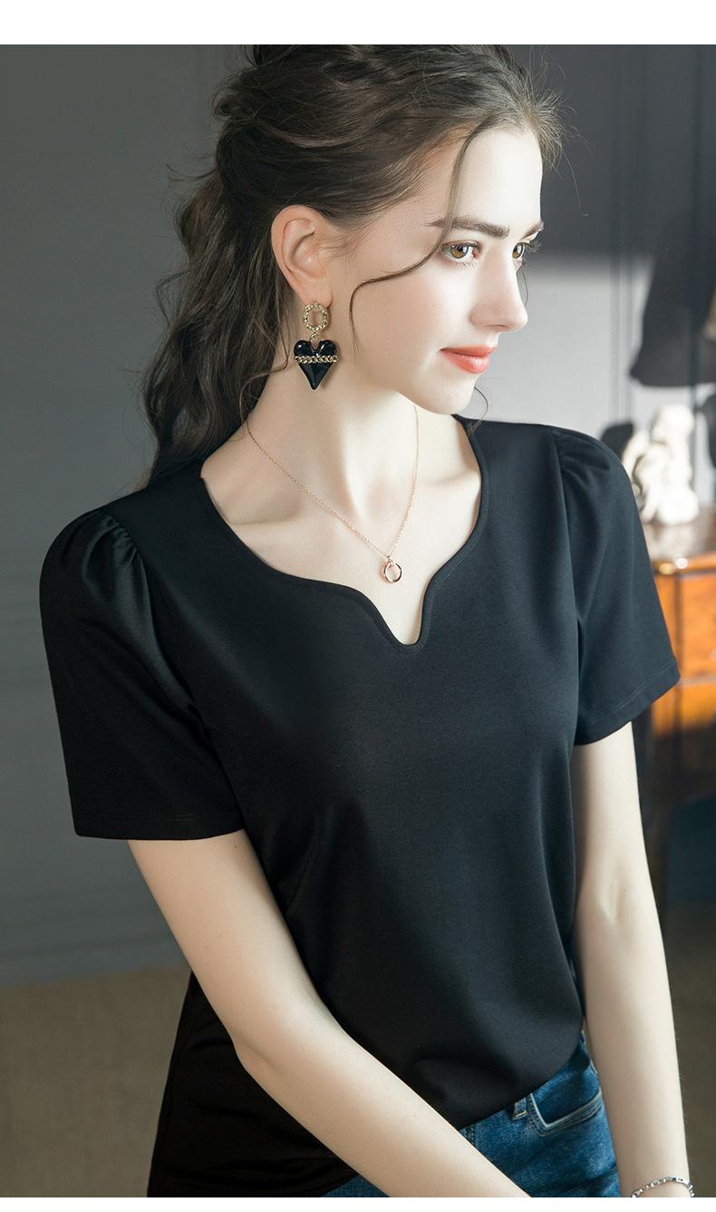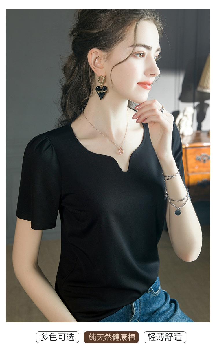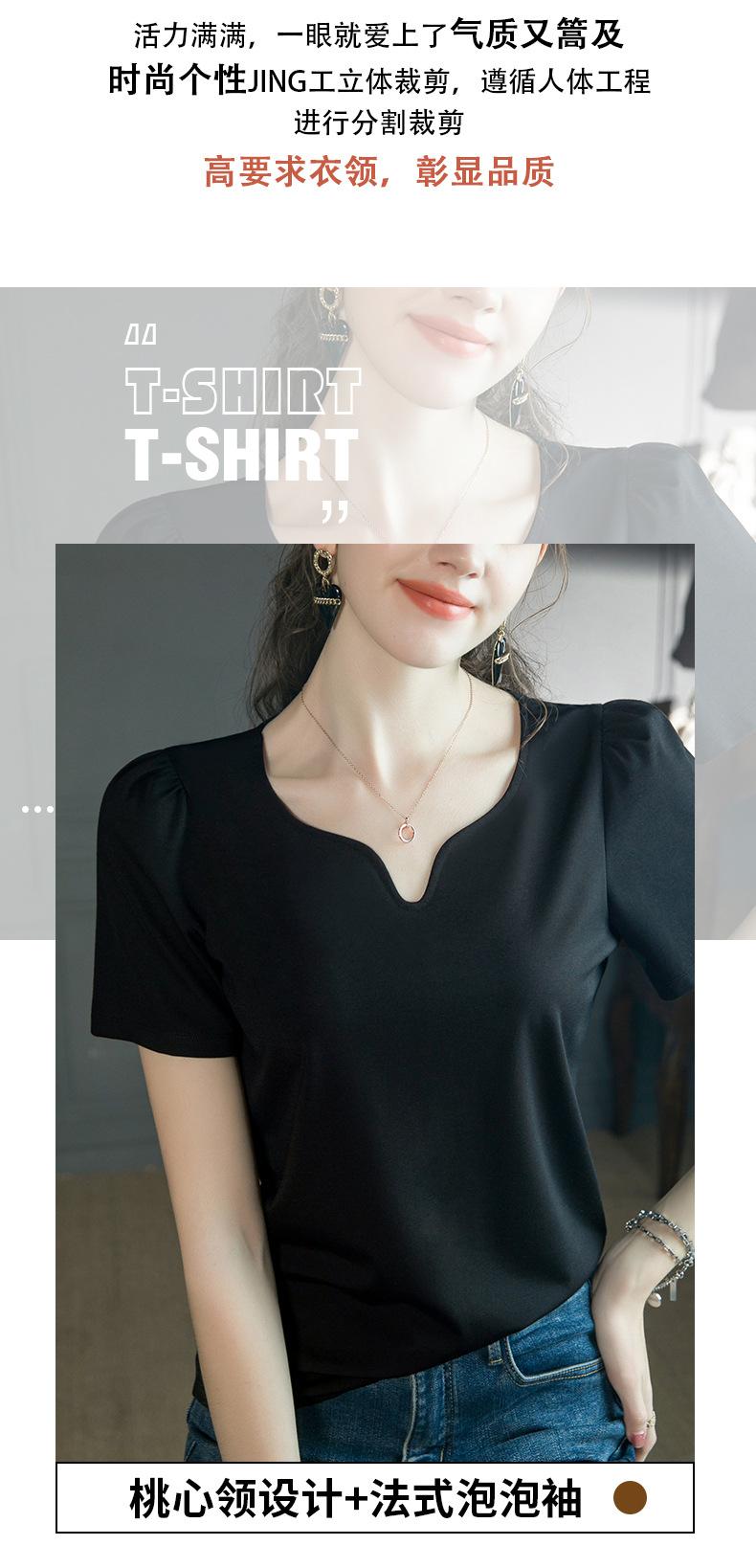 Camiseta de manga corta para mujer Verano para mujer Nueva camiseta de manga media de color sólido Diseño con sentido de manga abullonada Top Cuello U Camiseta básica