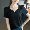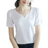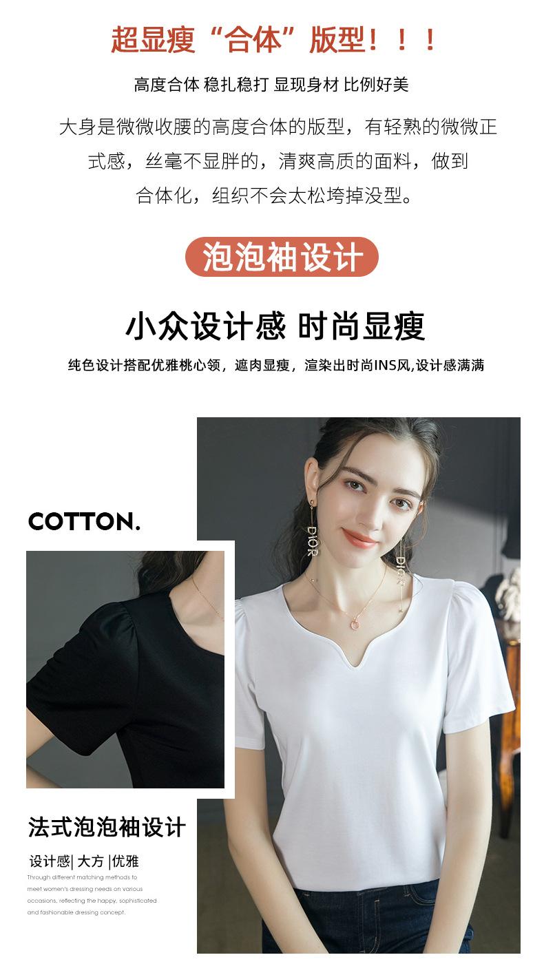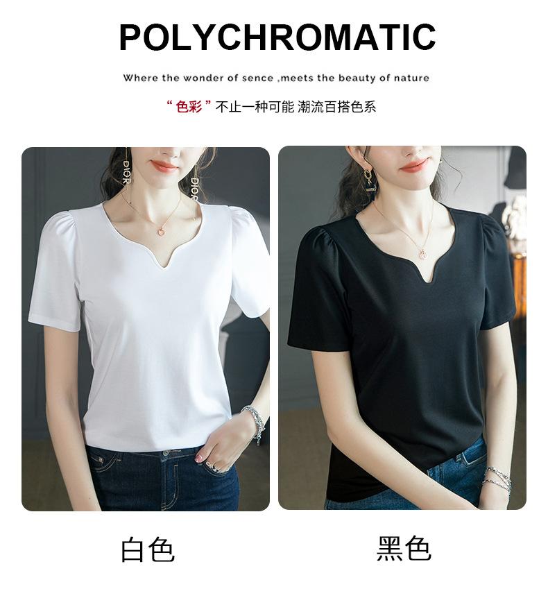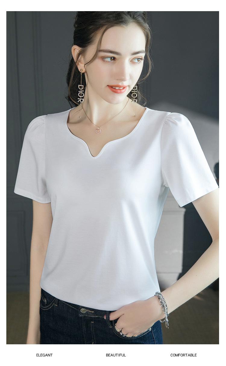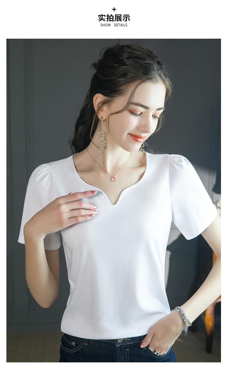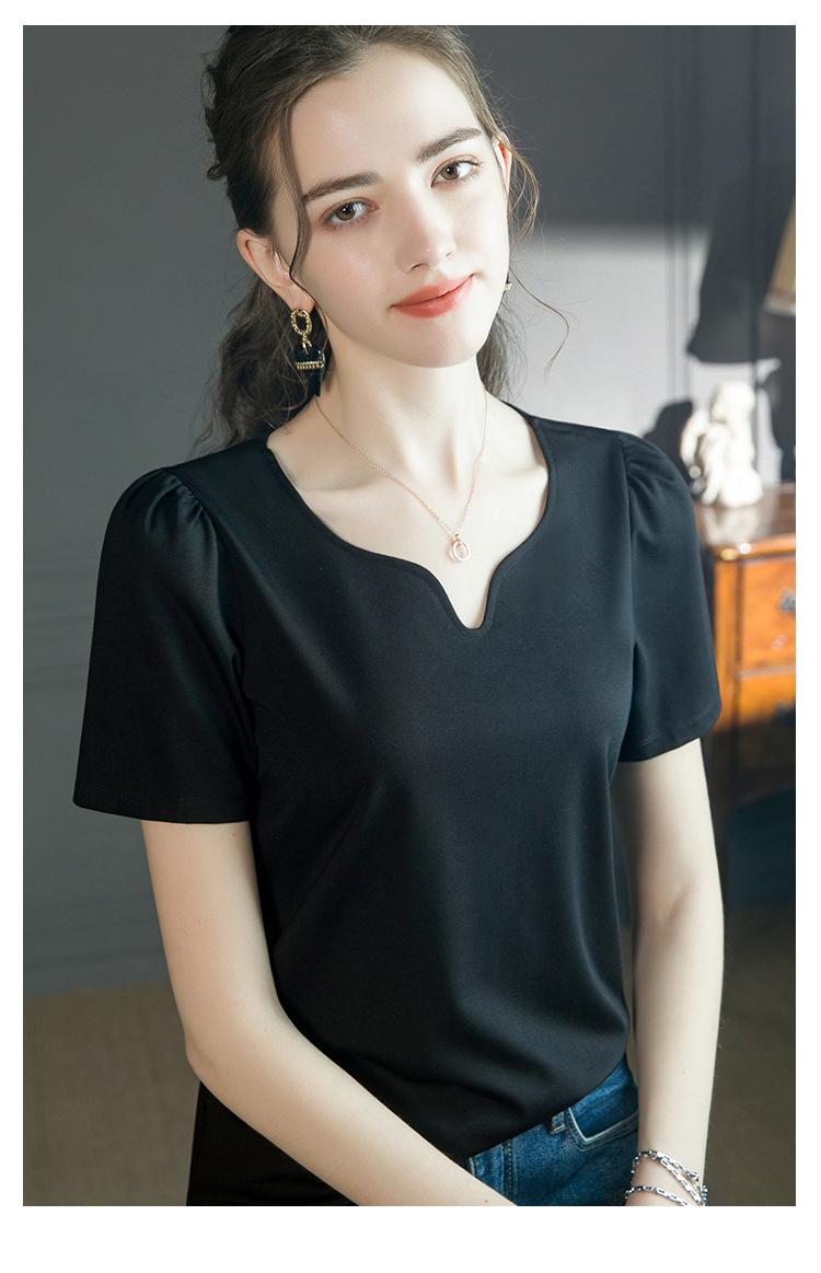 Camiseta de manga corta para mujer Verano para mujer Nueva camiseta de manga media de color sólido Diseño con sentido de manga abullonada Top Cuello U Camiseta básica