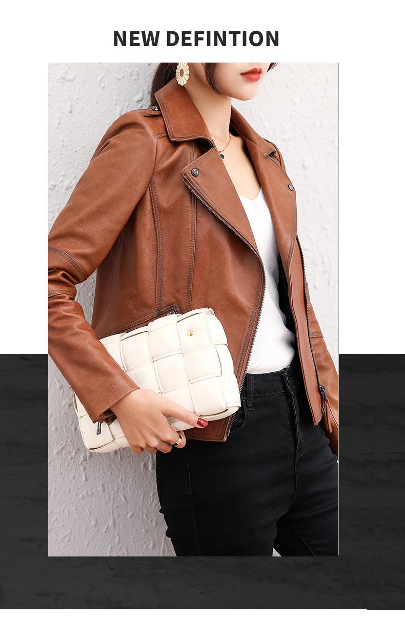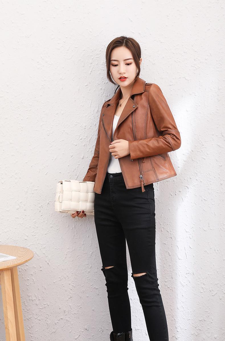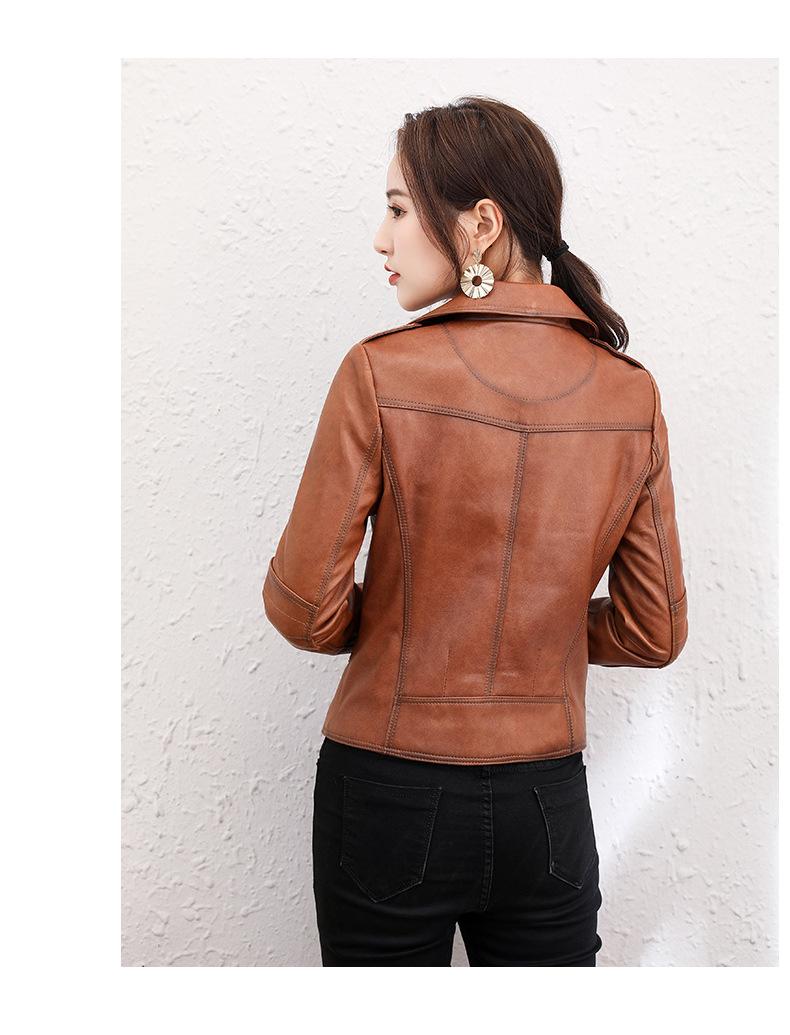 Cuero Genuino para Mujer Chaqueta Corta de Primavera y Otoño Nueva Coreana de Cuero de Motocicleta Piel de Oveja Abrigo Outlet de Fábrica