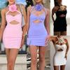 Comercio Exterior Transfronterizo Americano Nuevo Vestido de Manga Larga para Exterior Sexy con Volantes Hombro Inclinado Falda a la Cadera Venta al por Mayor en Stock