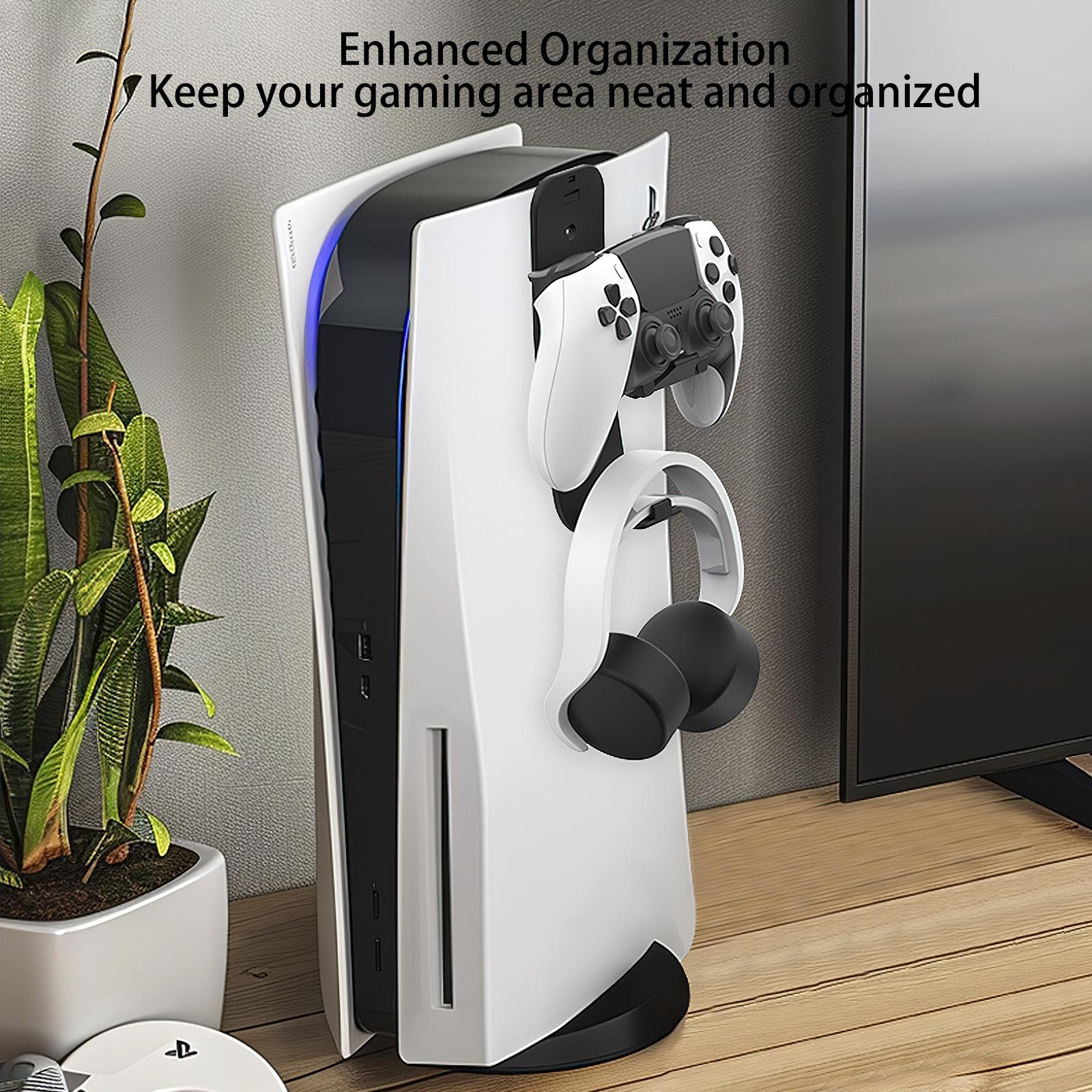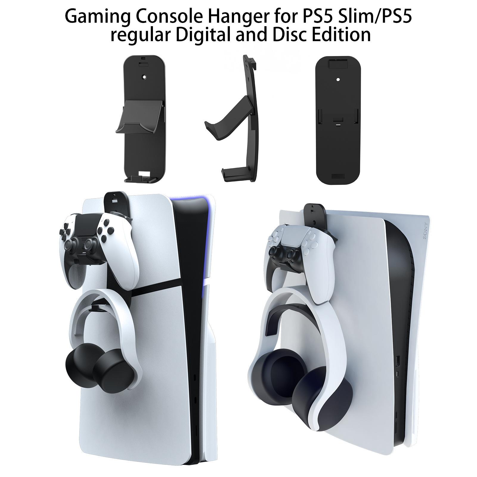 *El diseño de gancho desmontable en la parte superior se puede colgar en la consola PS5 para almacenar accesorios como controladores y auriculares de manera ordenada; los orificios para tornillos reservados en la parte superior también pueden utilizar el espacio de la pared para almacenar accesorios como controladores y auriculares de manera ordenada; también puede usar adhesivo 3M importado para adherirlo de manera firme y estable a la mayoría de las superficies lisas y usar el espacio libre para almacenar accesorios como controladores y auriculares.