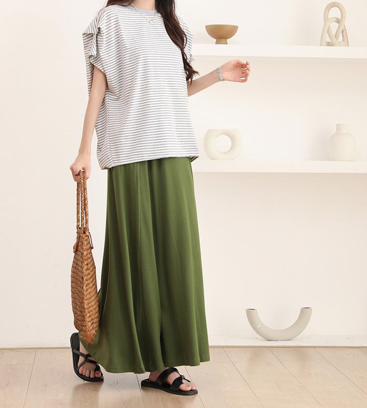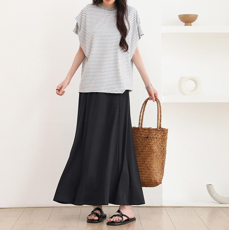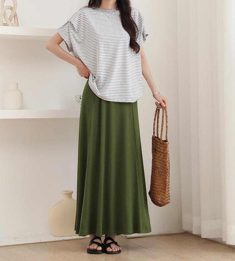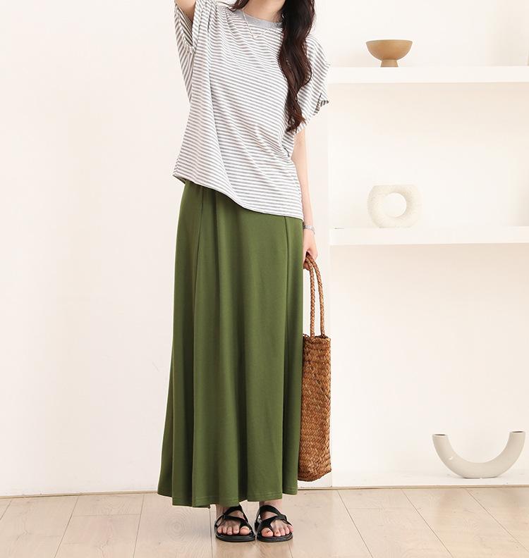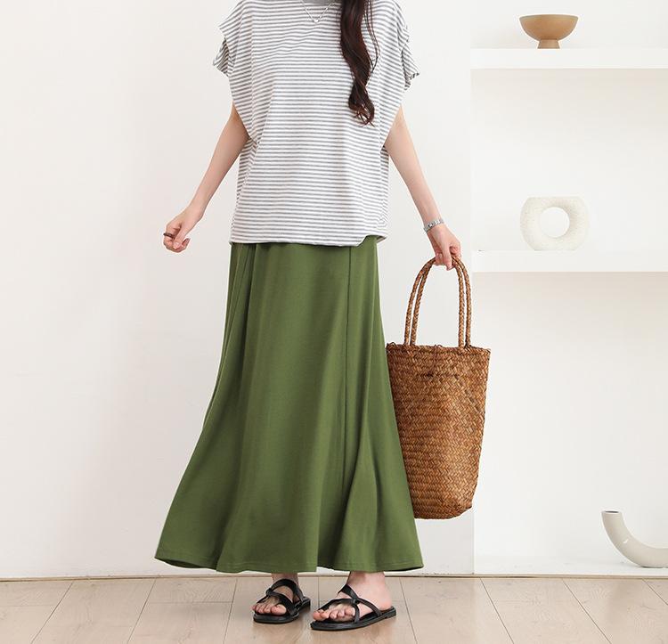 Falda Japonesa y Coreana 5 Colores Primavera Verano 2025 Falda Larga de Cintura Elástica para Mujer Nuevo Estilo de Amazon