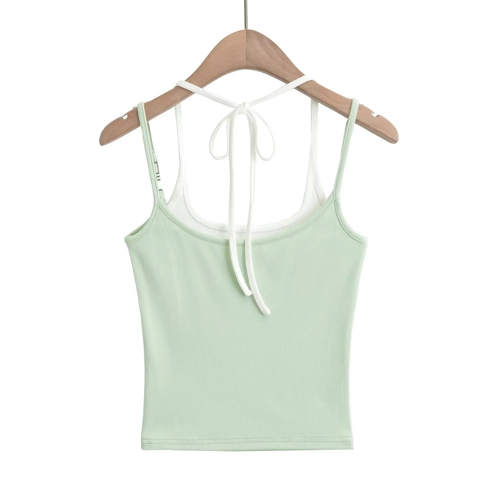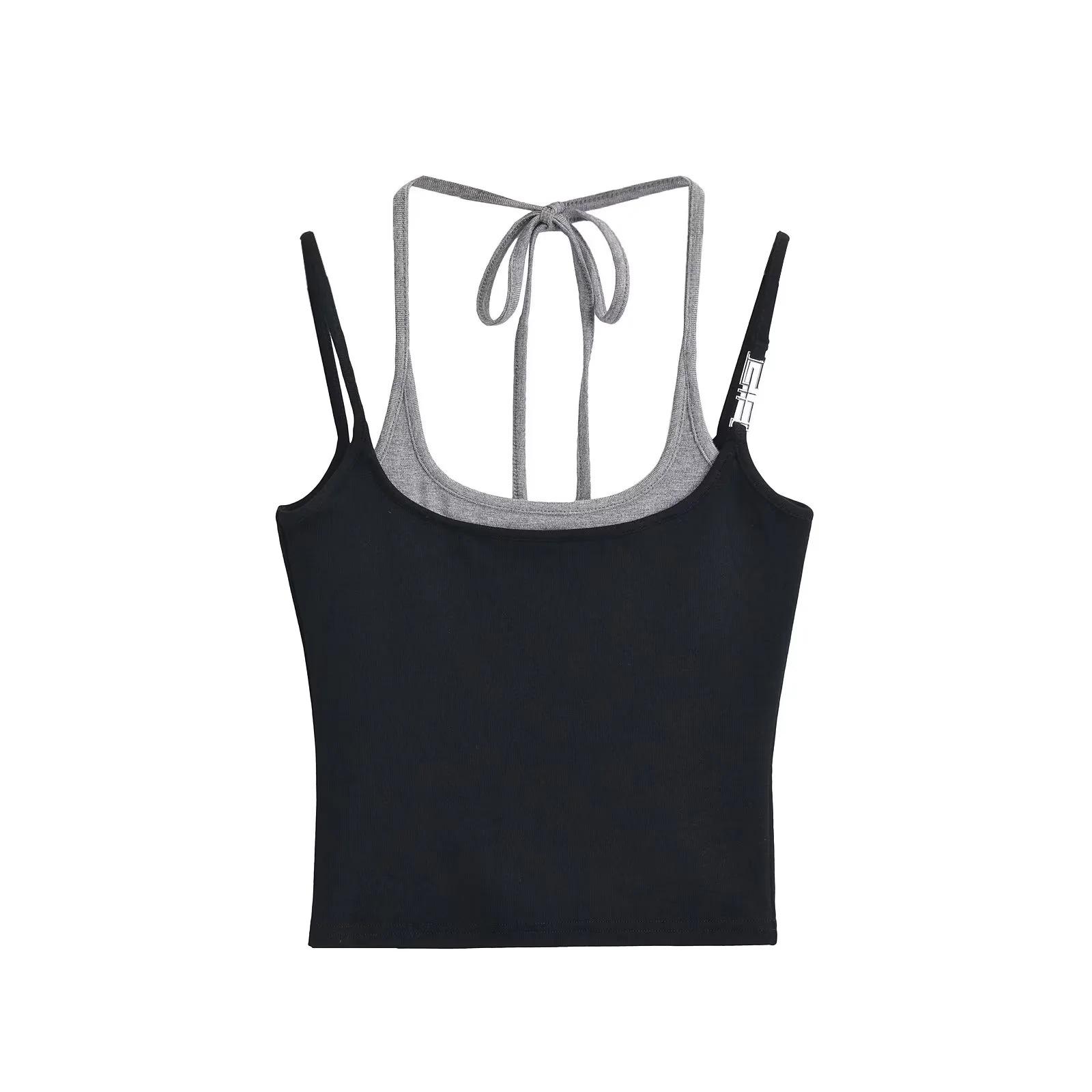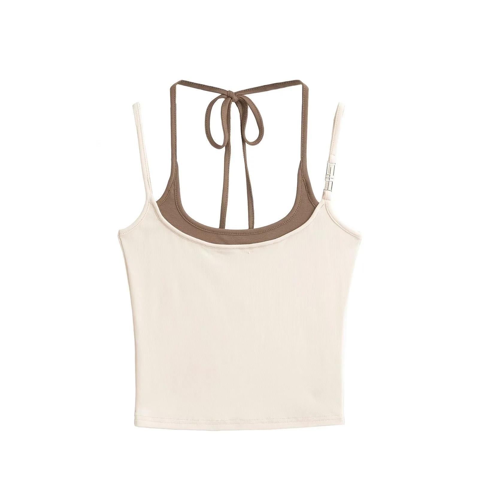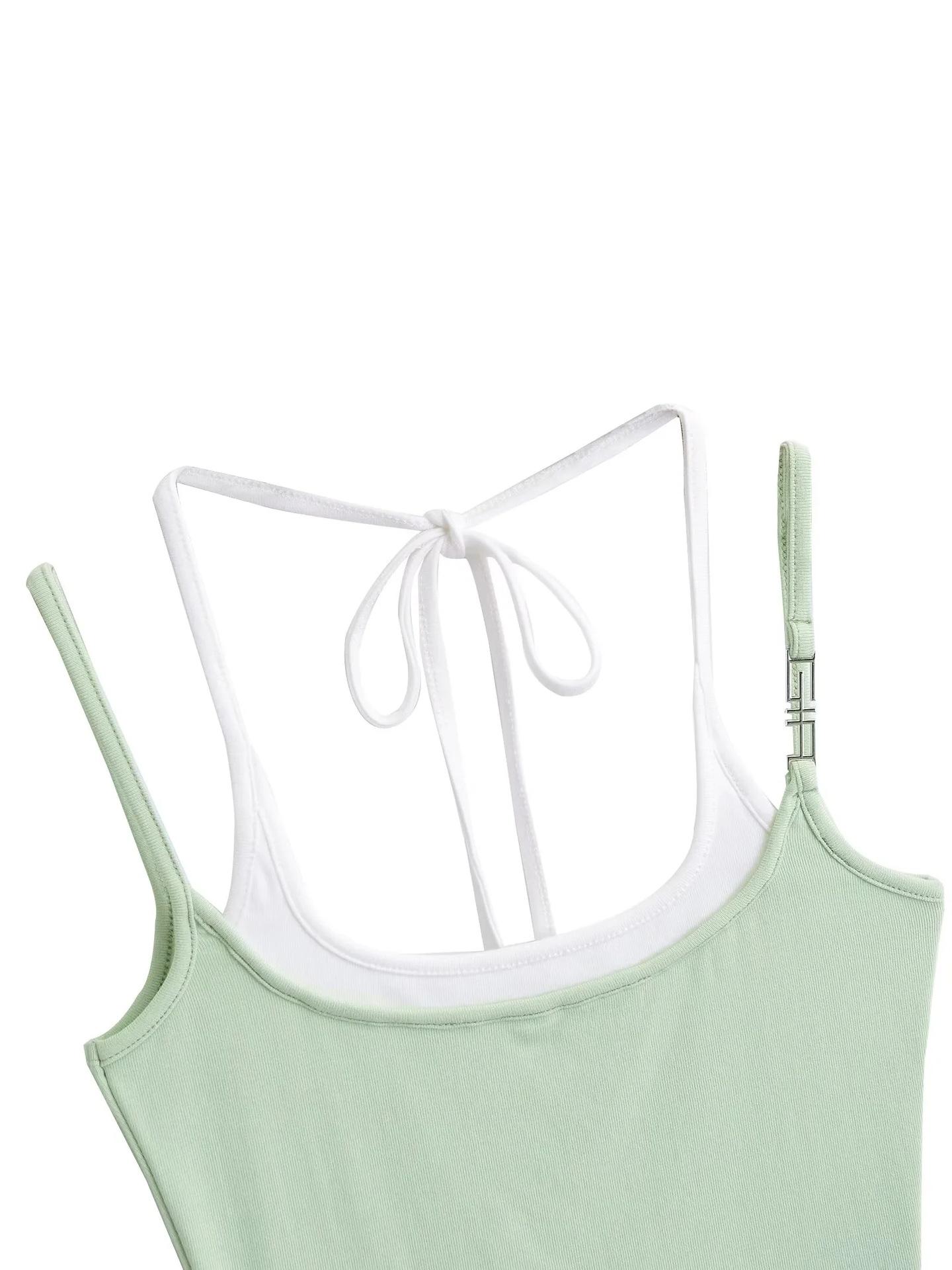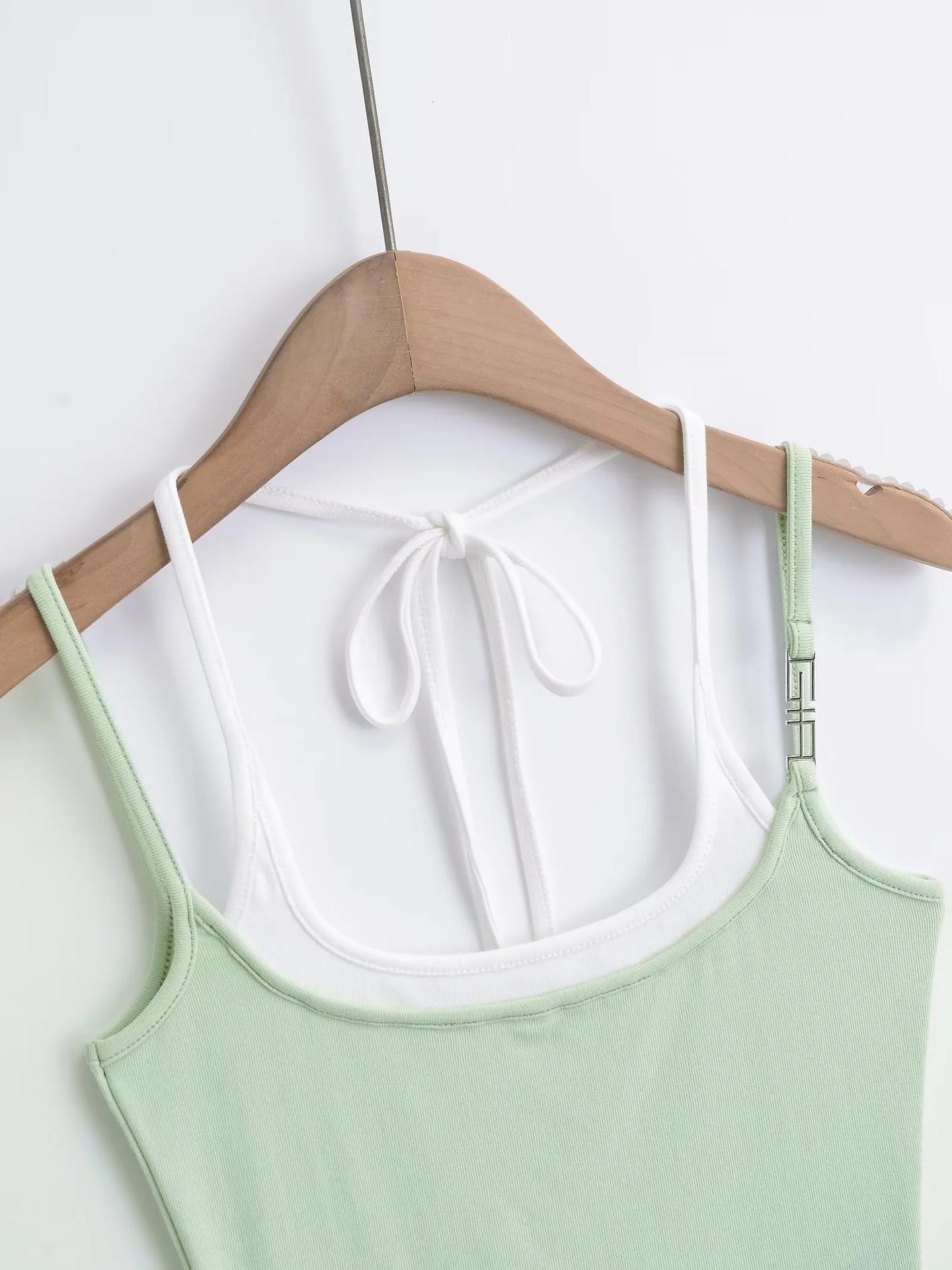 Chaleco de dos piezas con doble tirante para mujer, sexy, con cuello en V, contraste de colores, base que combina con todo, escote en la espalda, tirantes falsos