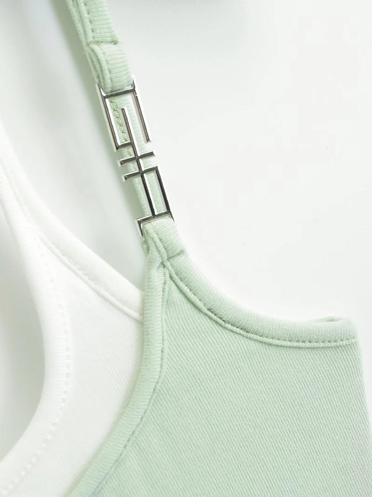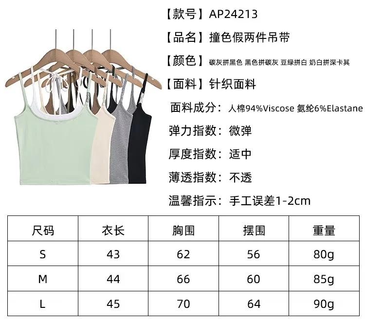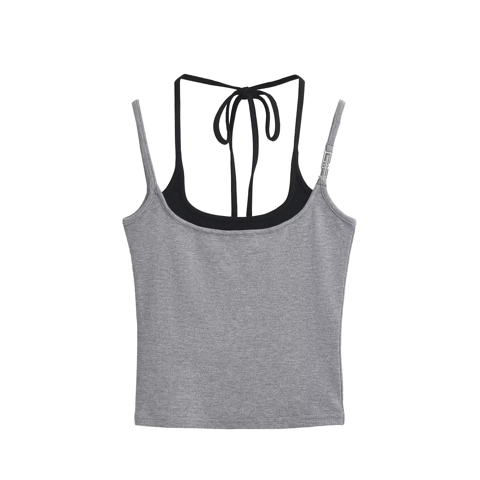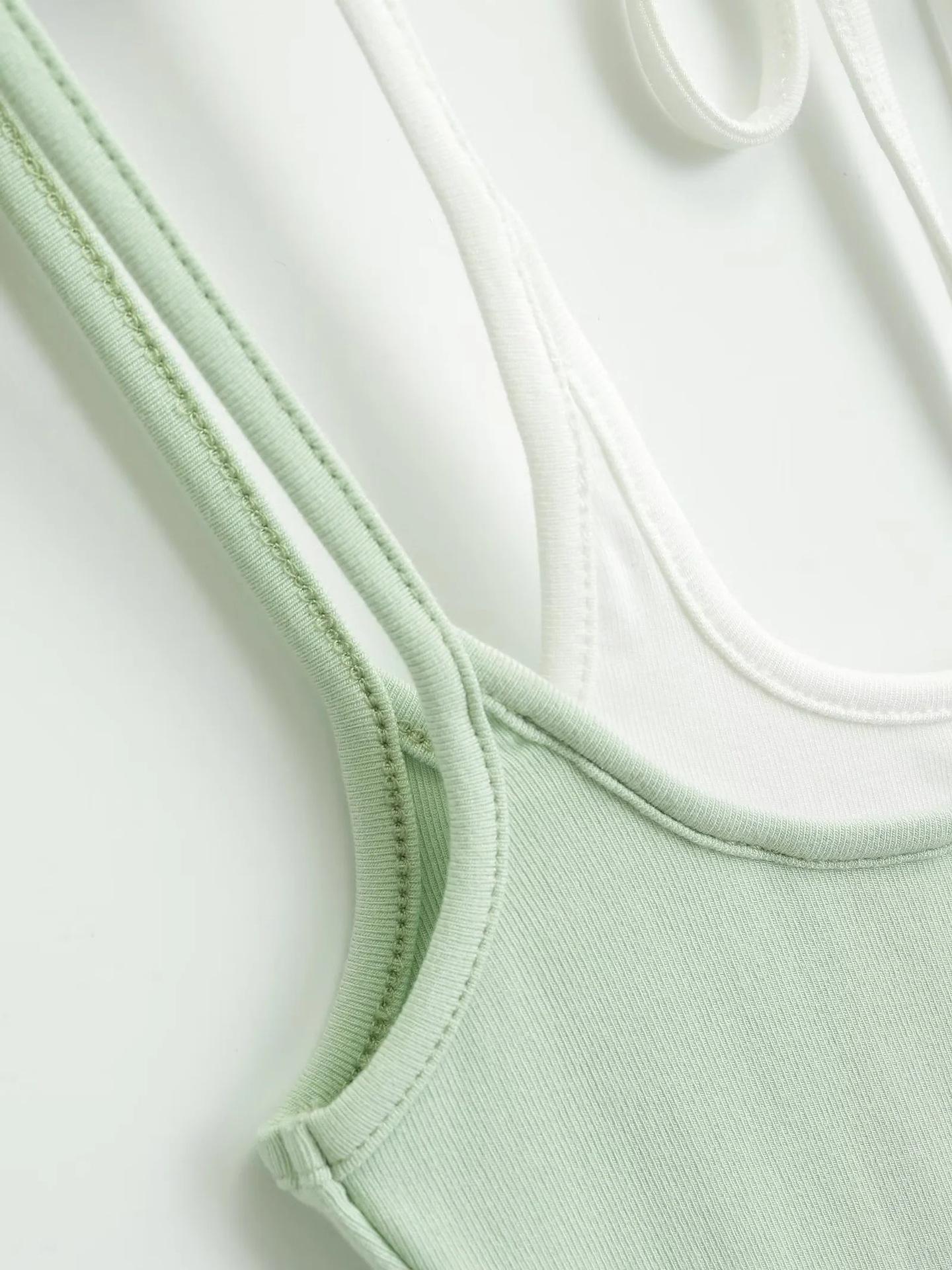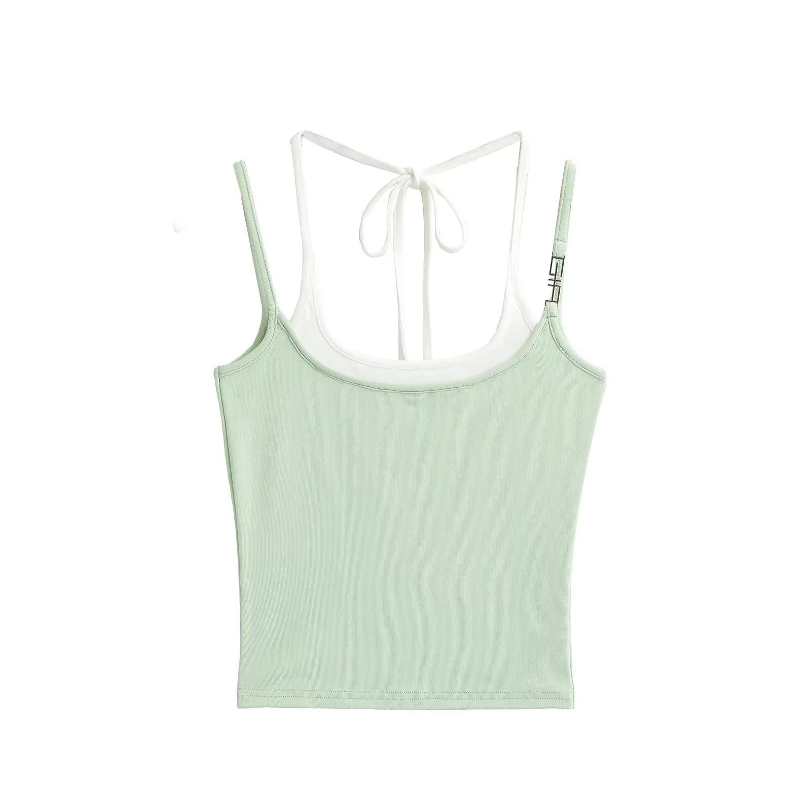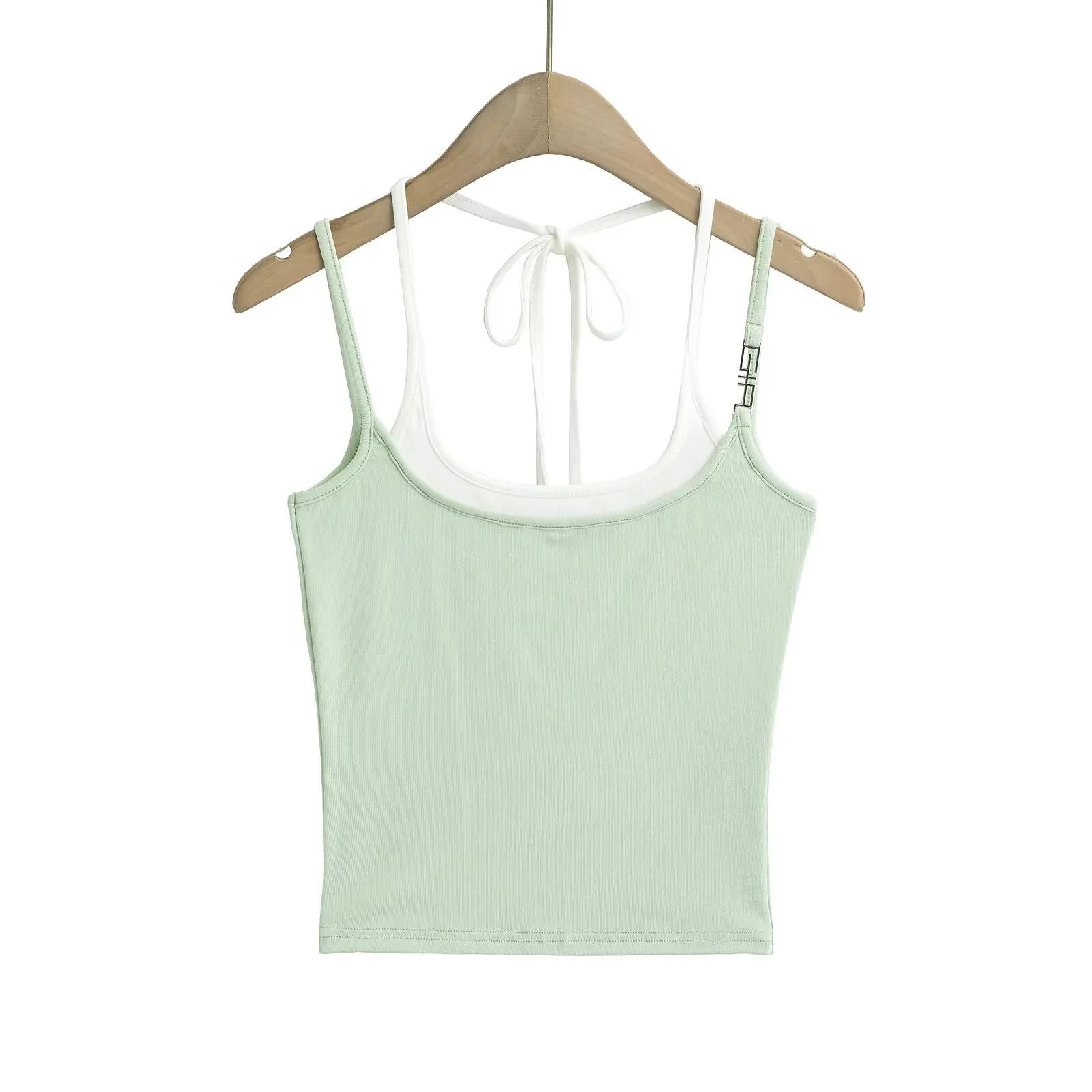 Chaleco de dos piezas con doble tirante para mujer, sexy, con cuello en V, contraste de colores, base que combina con todo, escote en la espalda, tirantes falsos