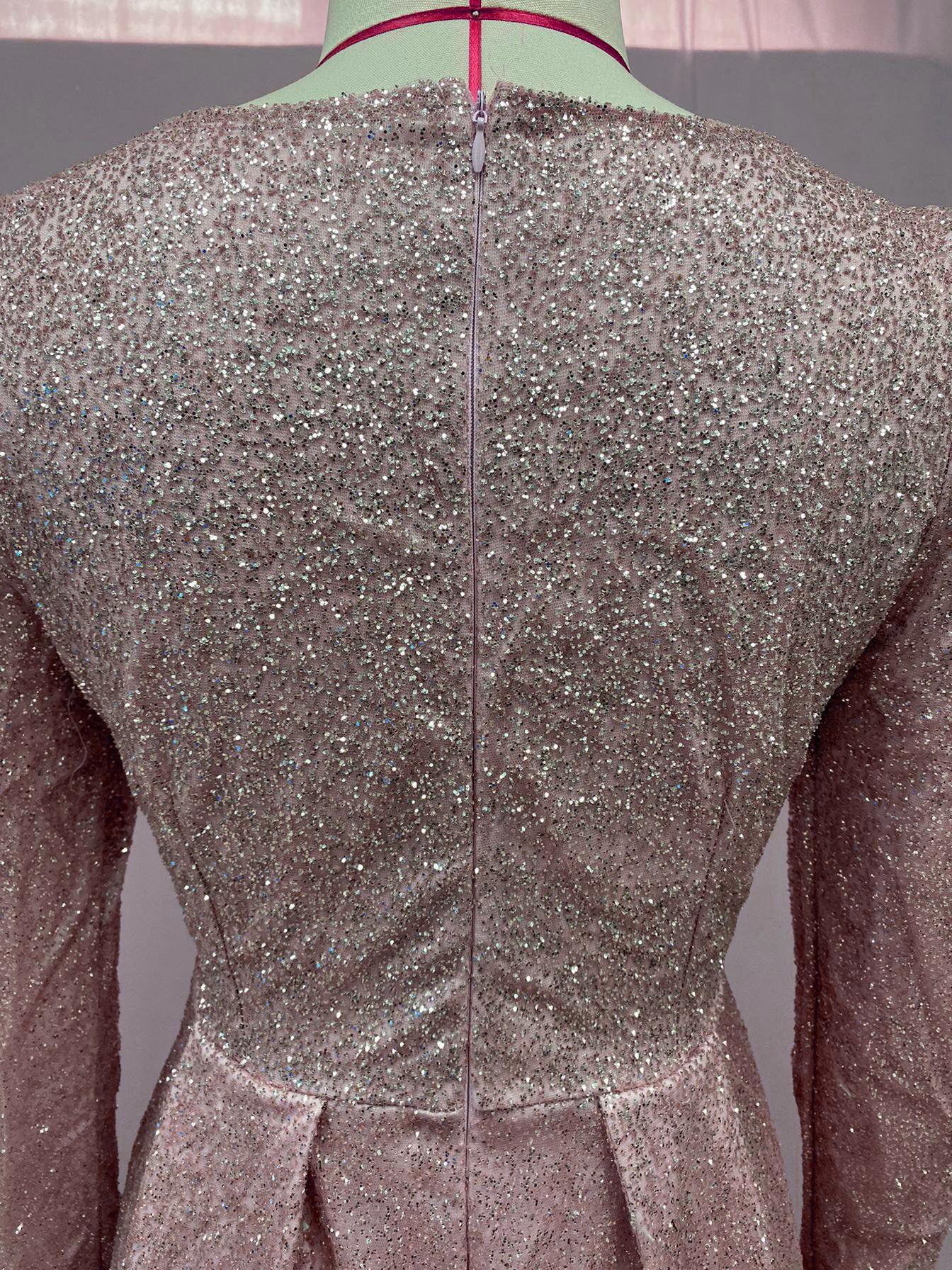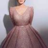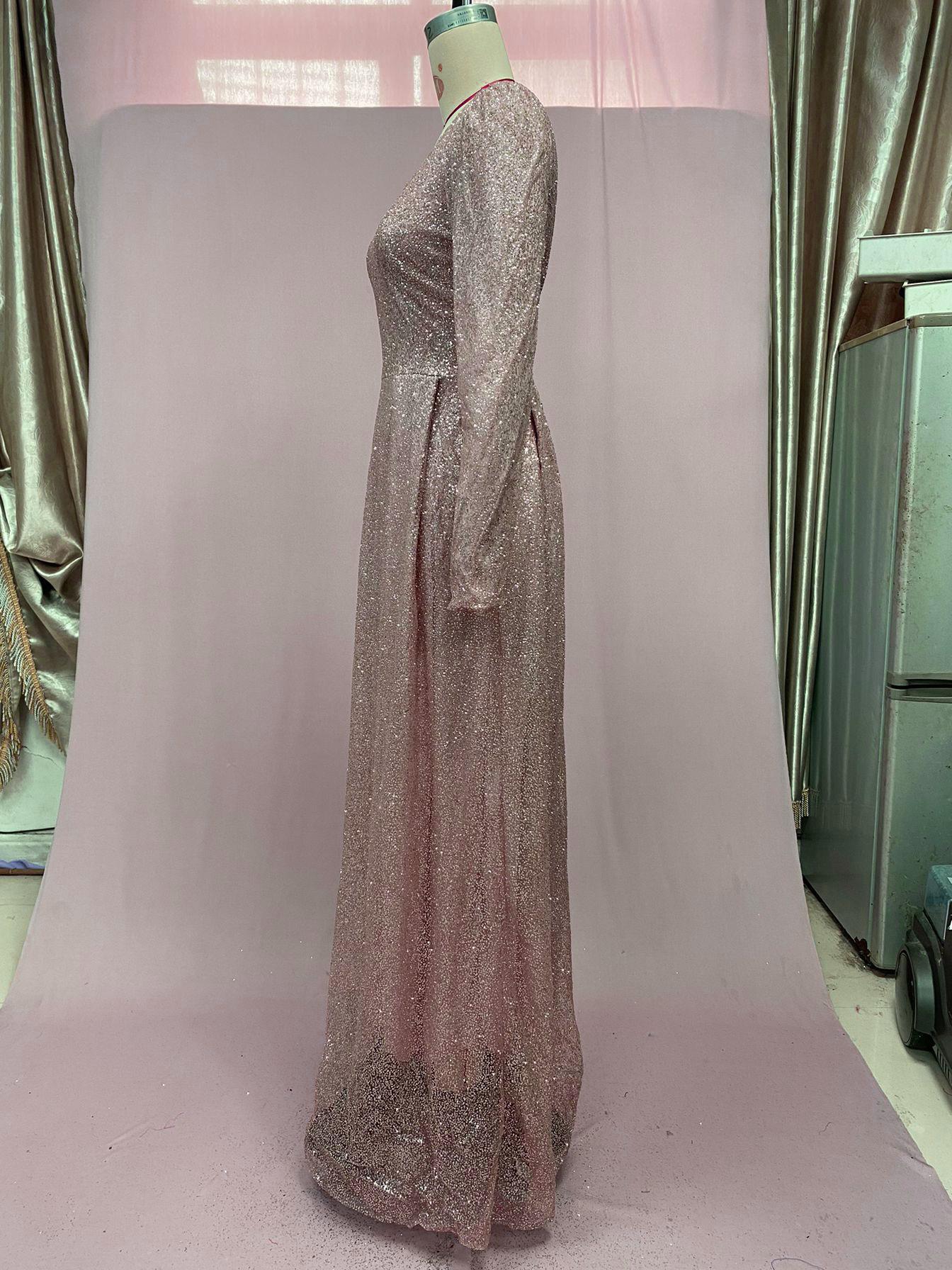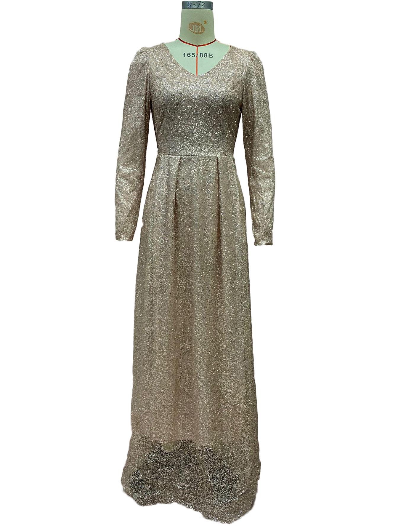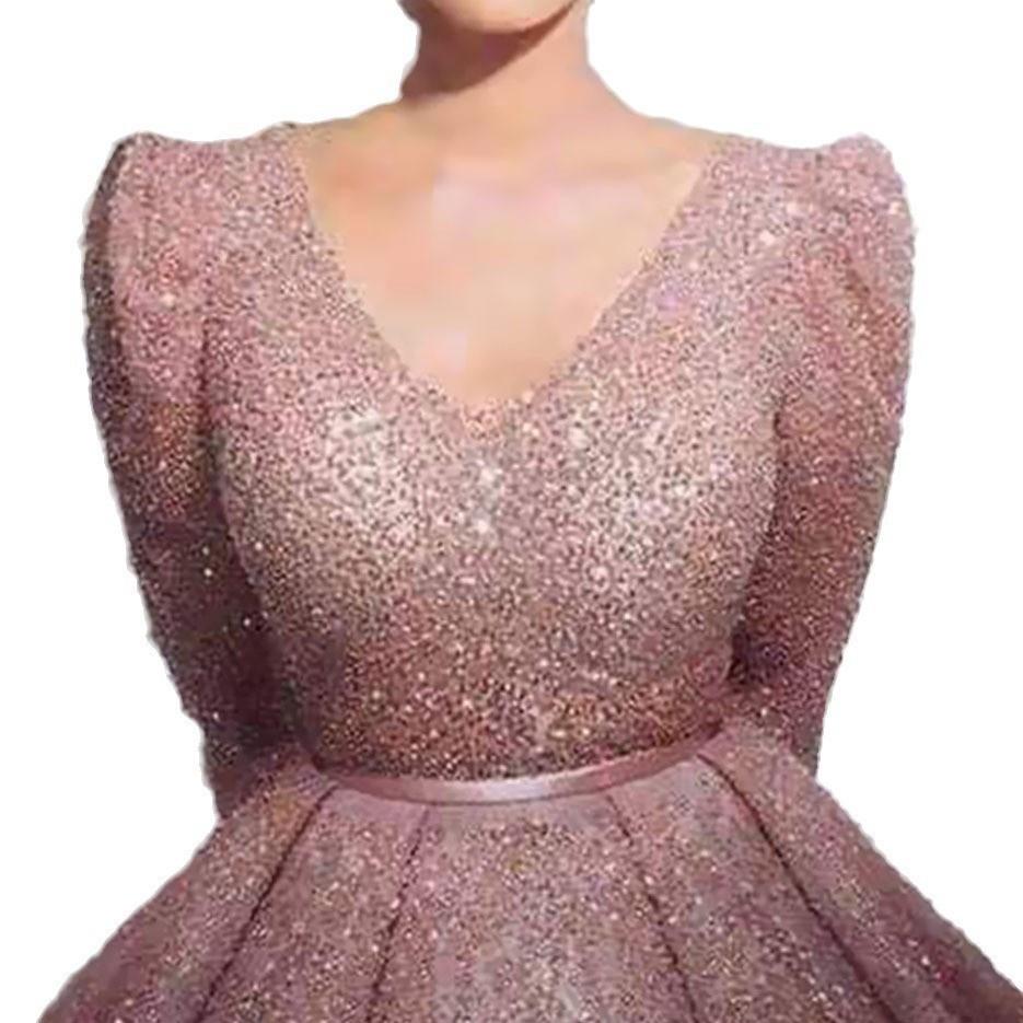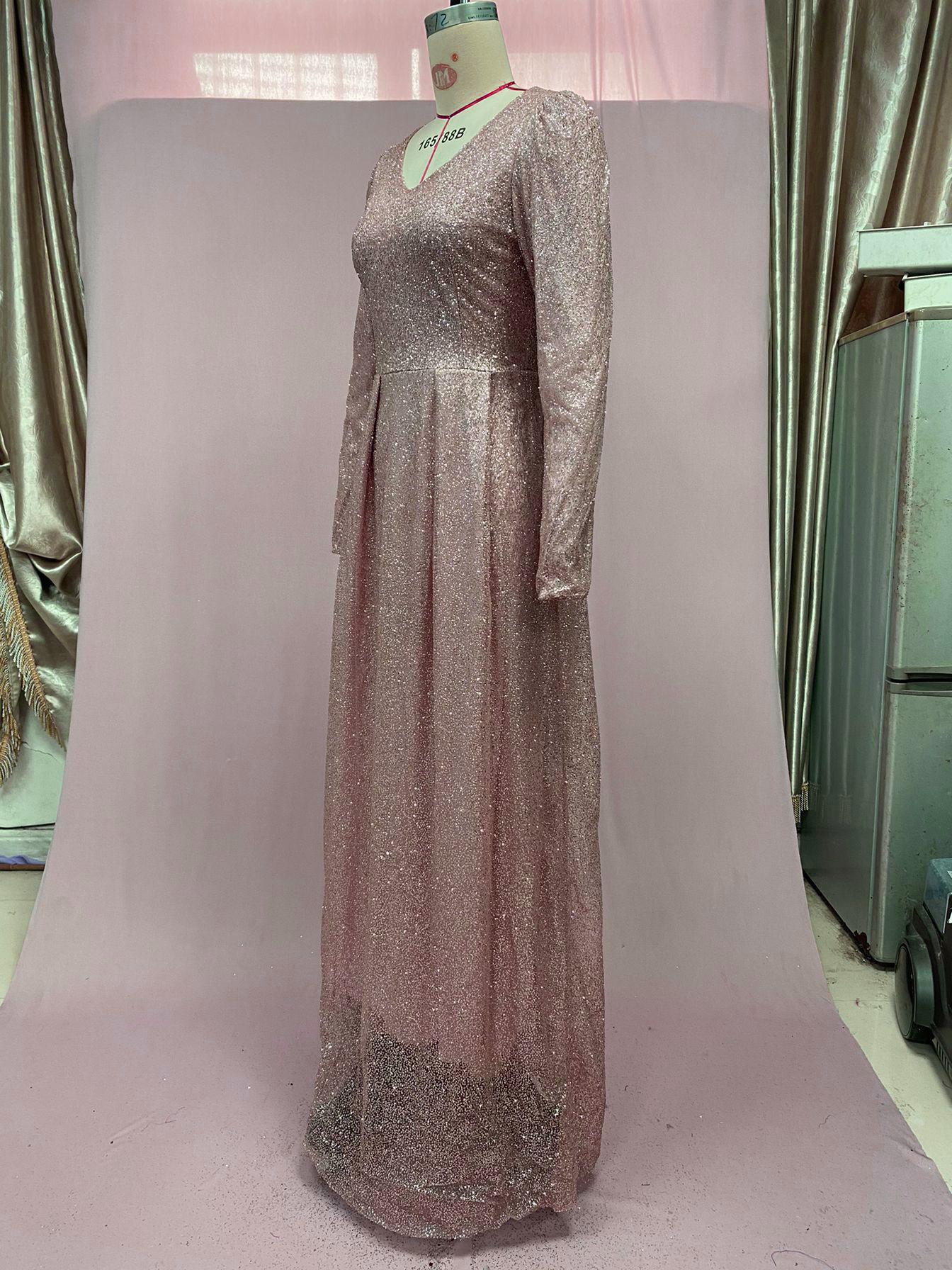 2025 Verano Nuevo Transfronterizo Amazon Ropa Europea y Americana Rosa Nude Cuello en V Cintura Salpicada de Dorado Vestido Largo