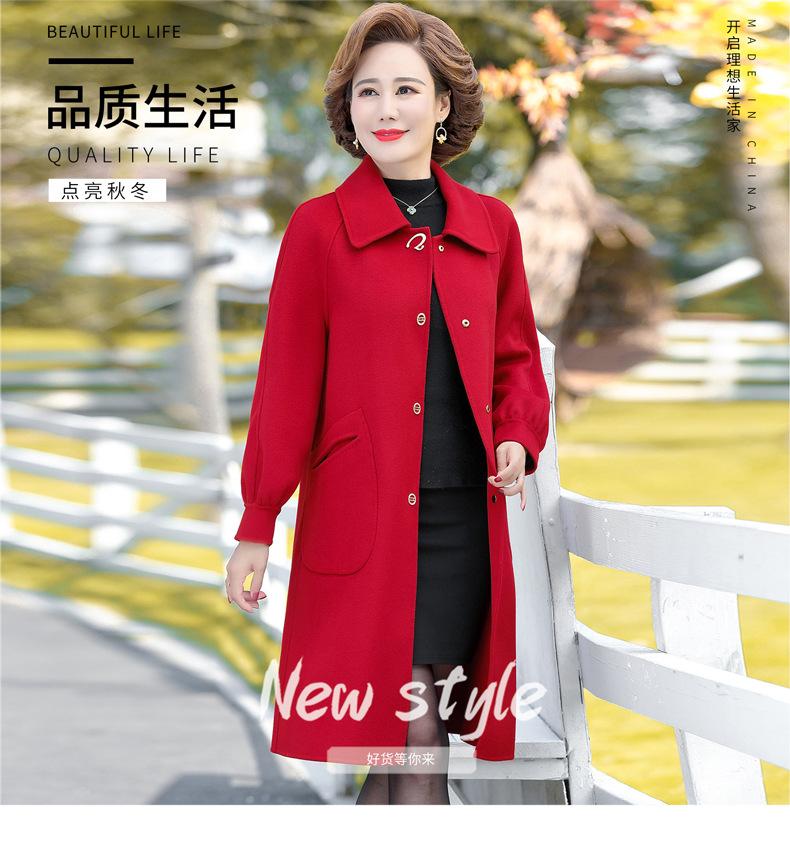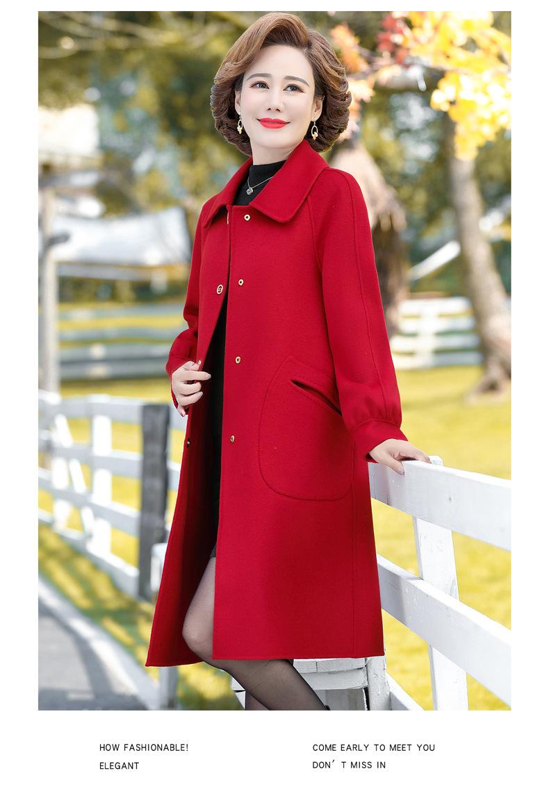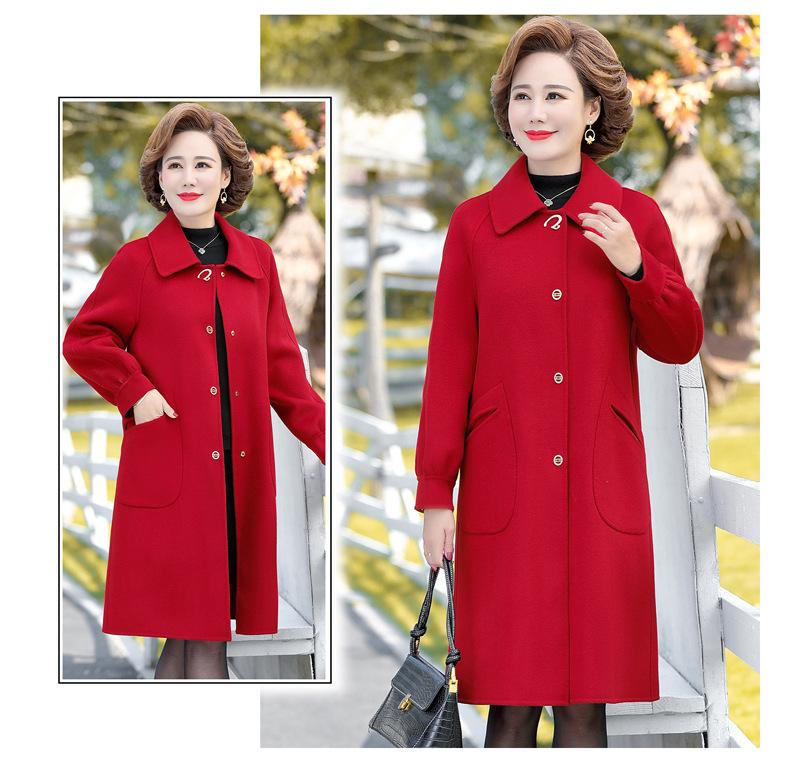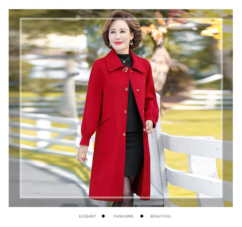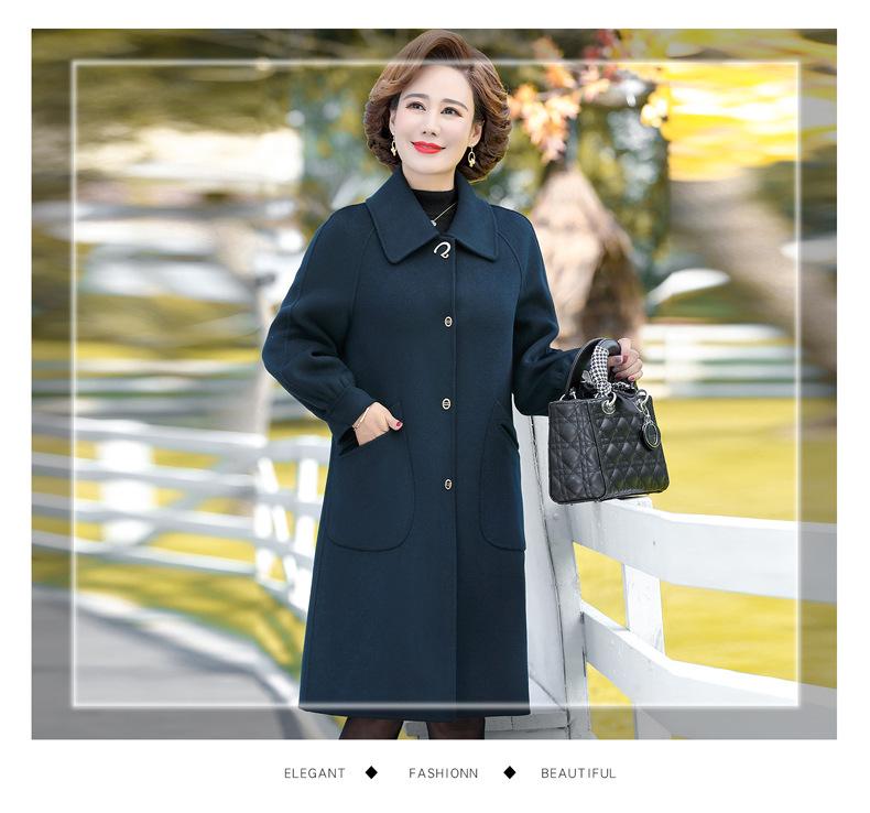 Abrigo de lana de doble cara para mujer, largo medio, otoño 2022, talla grande, para madres de mediana edad y mayores, abrigo de lana estilo occidental, invierno