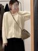 Cárdigan de Punto de Lana para Mujer 2025 Otoño e Invierno Nuevo Moda Holgada Color Sólido Manga Larga Chaqueta Suéter con Cuello de Traje