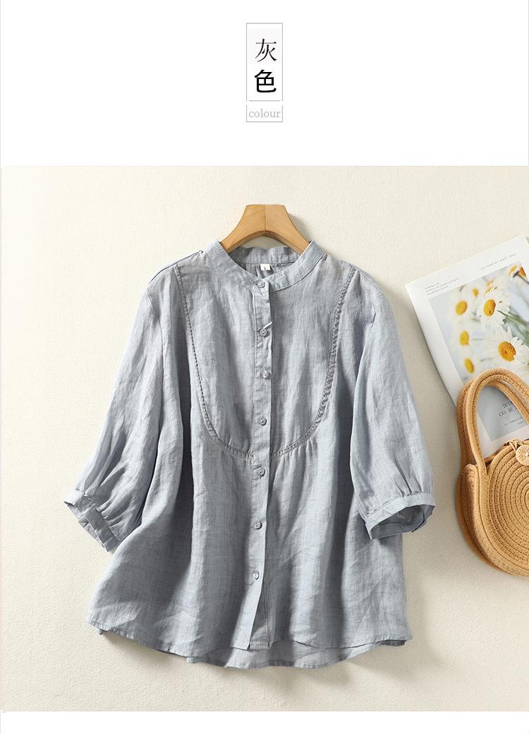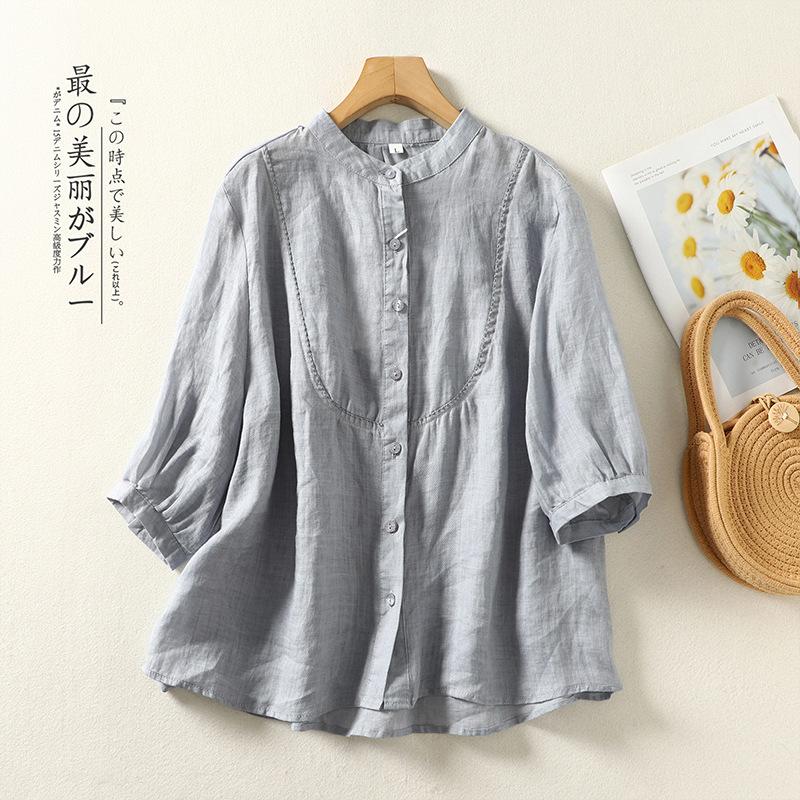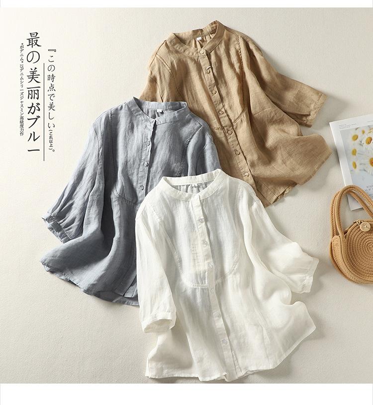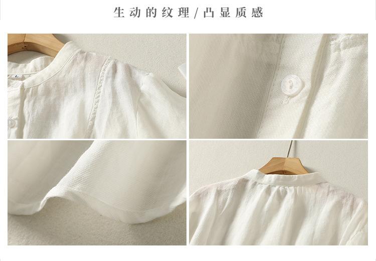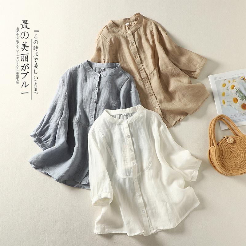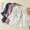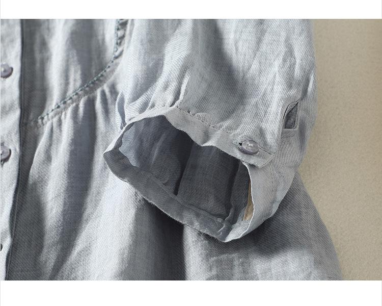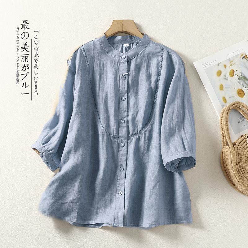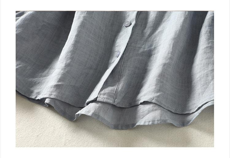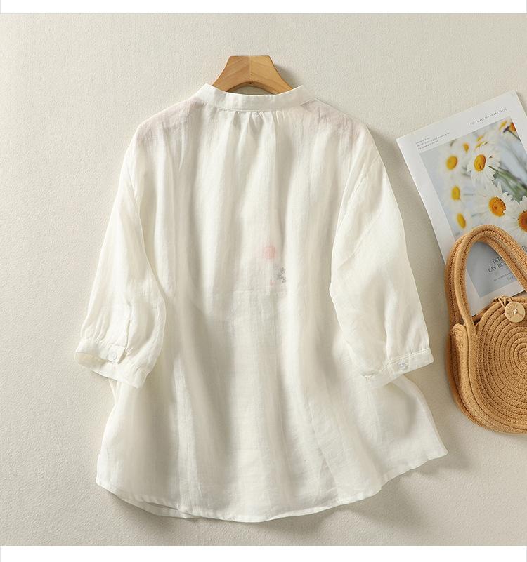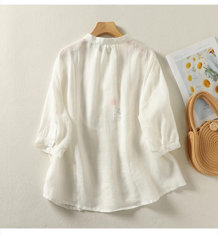 Foto Real de Camisas de Algodón y Lino 2025, Extracción de Verano Bordada a la Moda, Sueltas y Versátiles, Abotonadura Sencilla, Tops de Color Puro Estilo Occidental