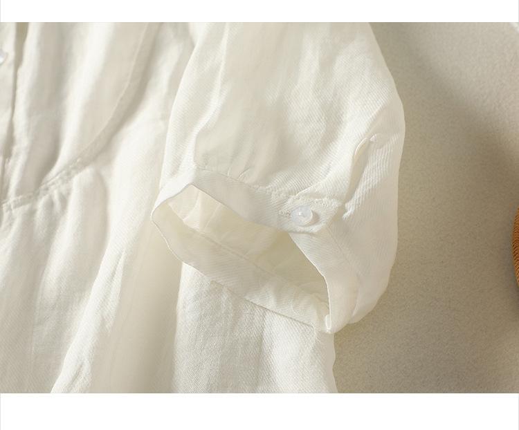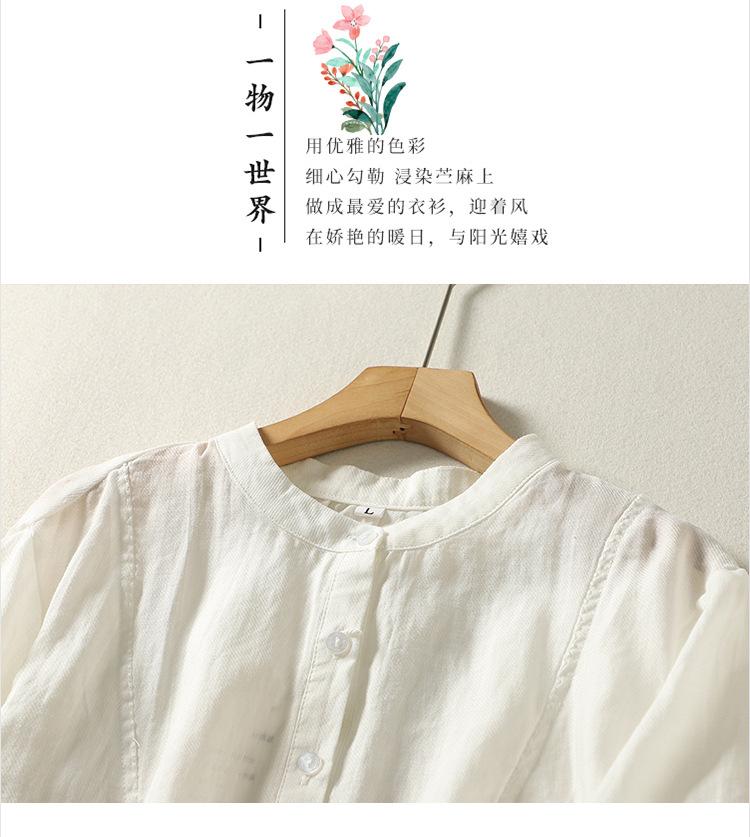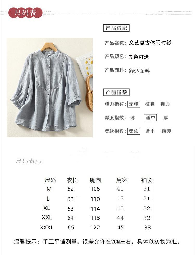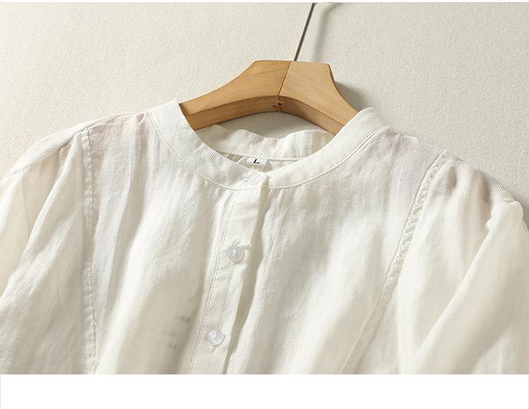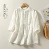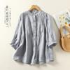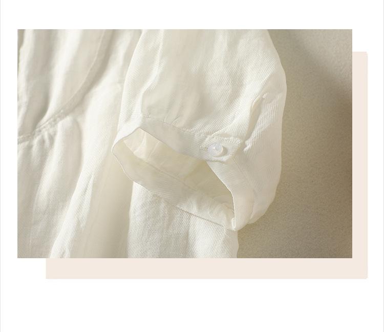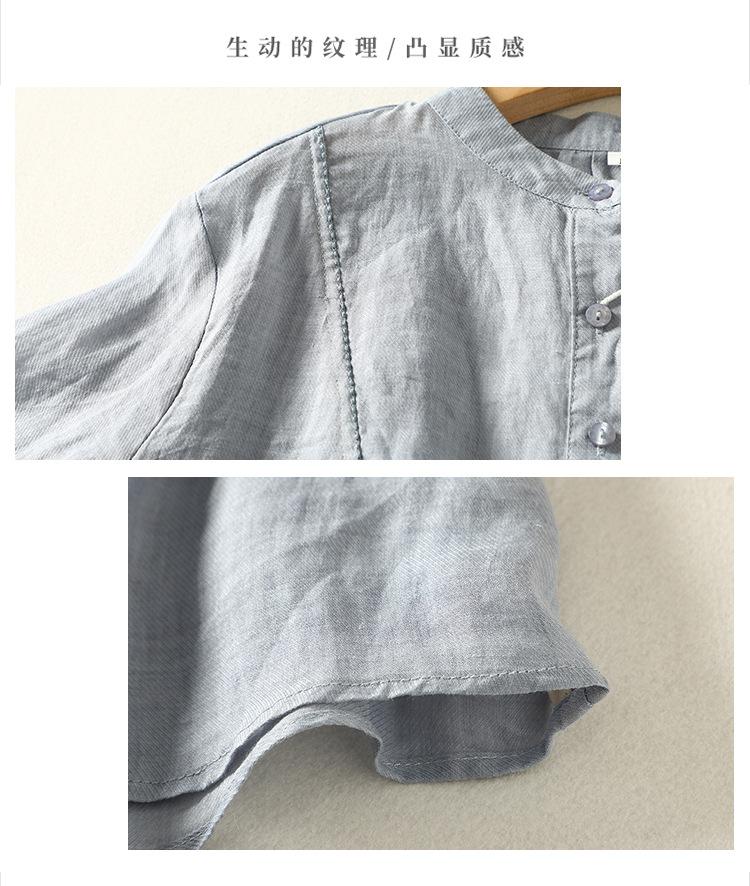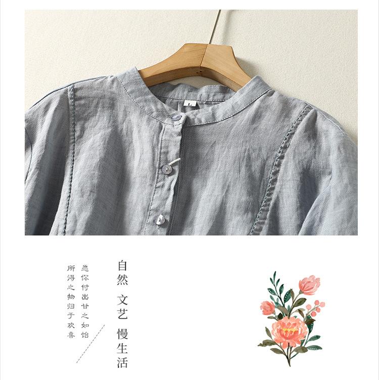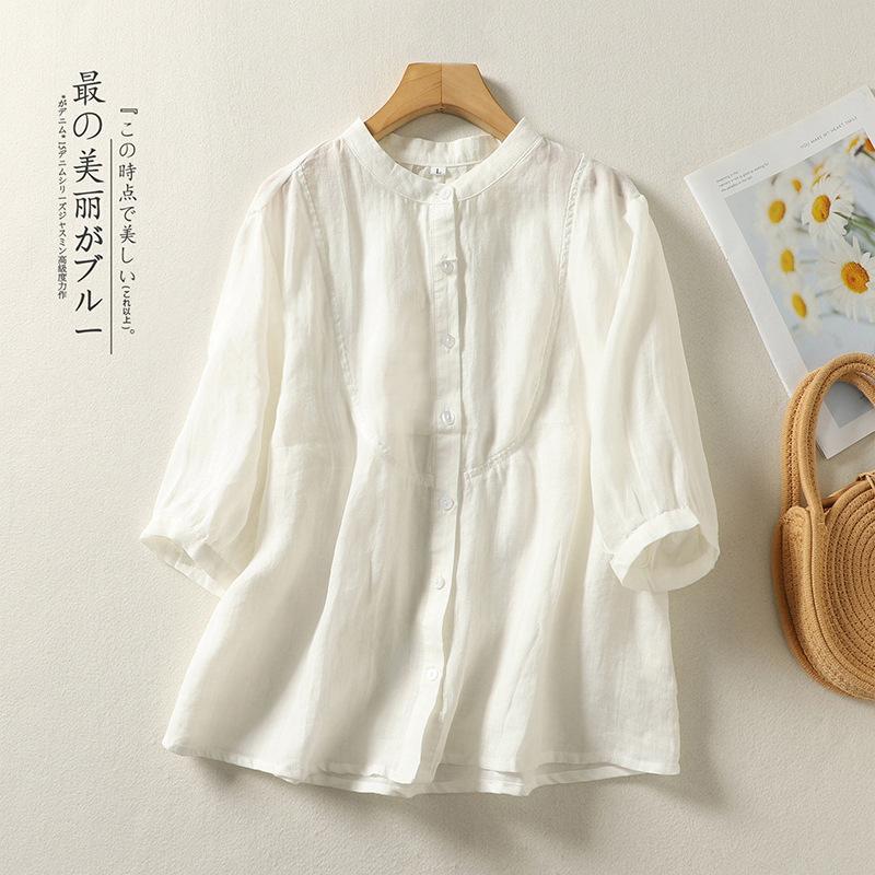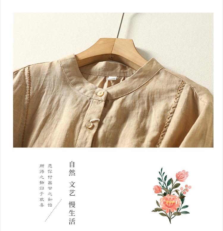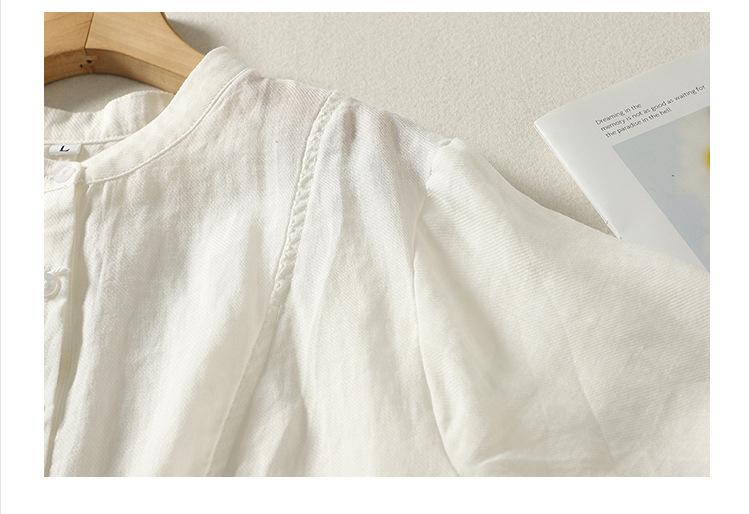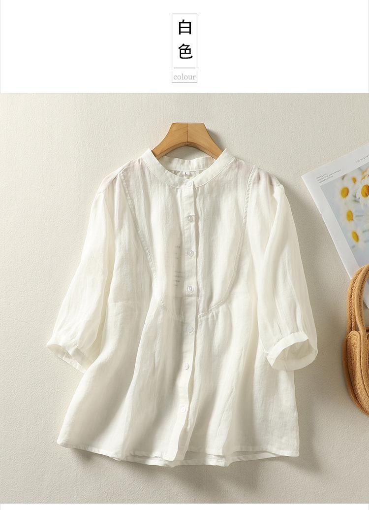 Foto Real de Camisas de Algodón y Lino 2025, Extracción de Verano Bordada a la Moda, Sueltas y Versátiles, Abotonadura Sencilla, Tops de Color Puro Estilo Occidental