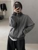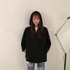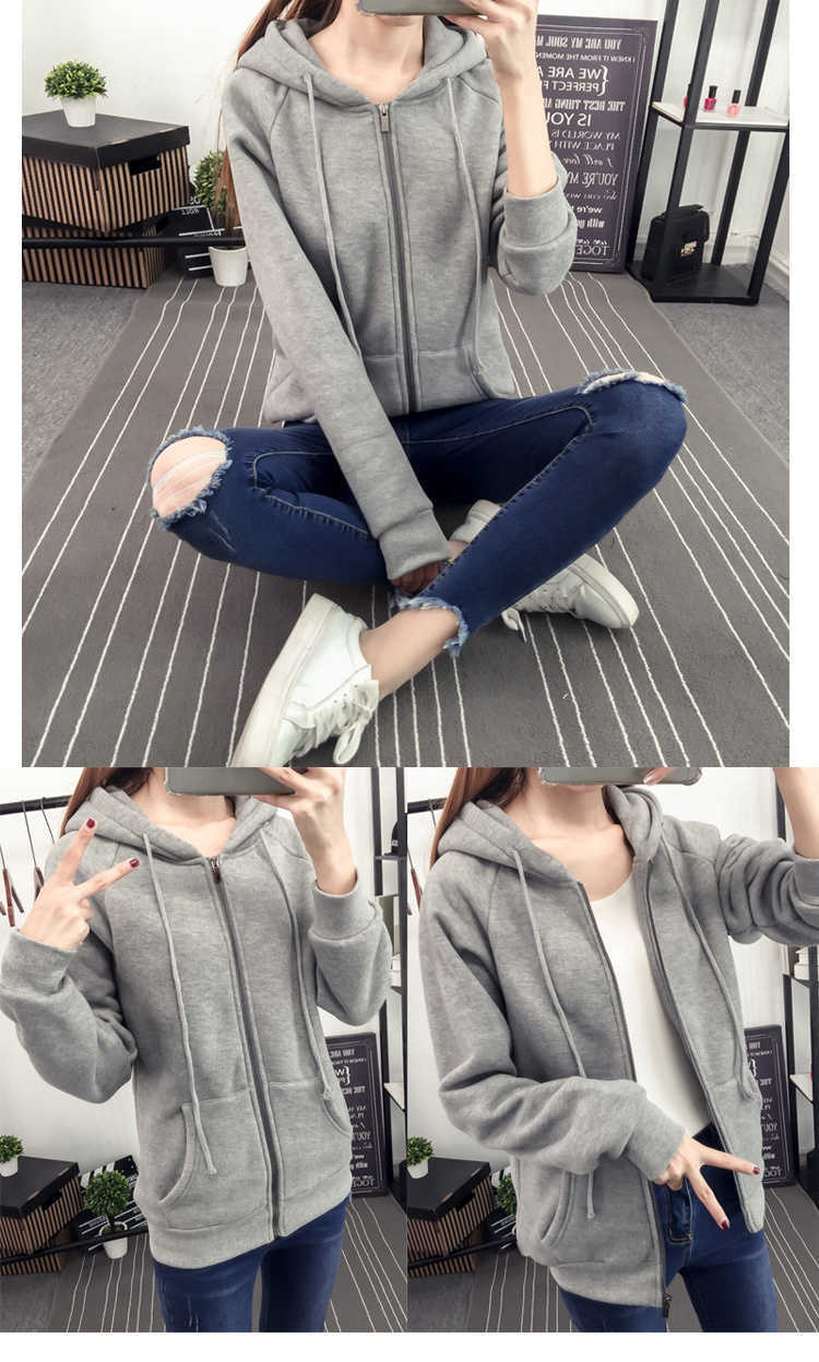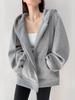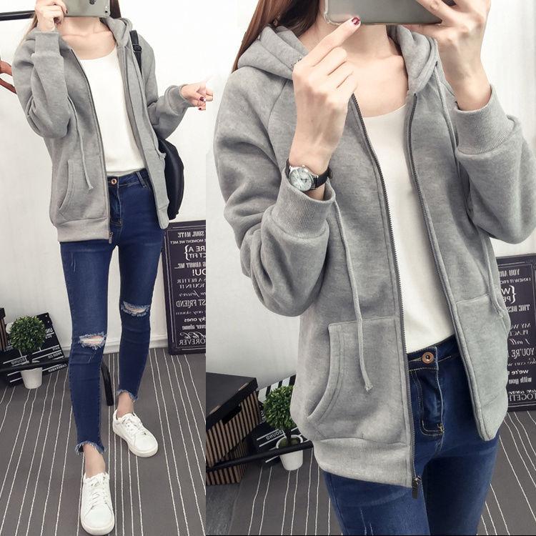 Suéter con capucha de color liso para mujer, cárdigan con cremallera, top deportivo informal para primavera y otoño, chaqueta holgada con forro polar que combina con todo.