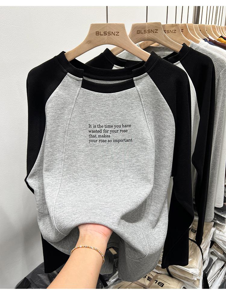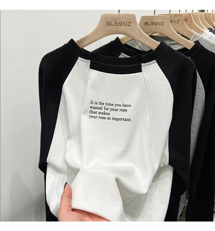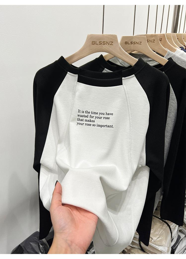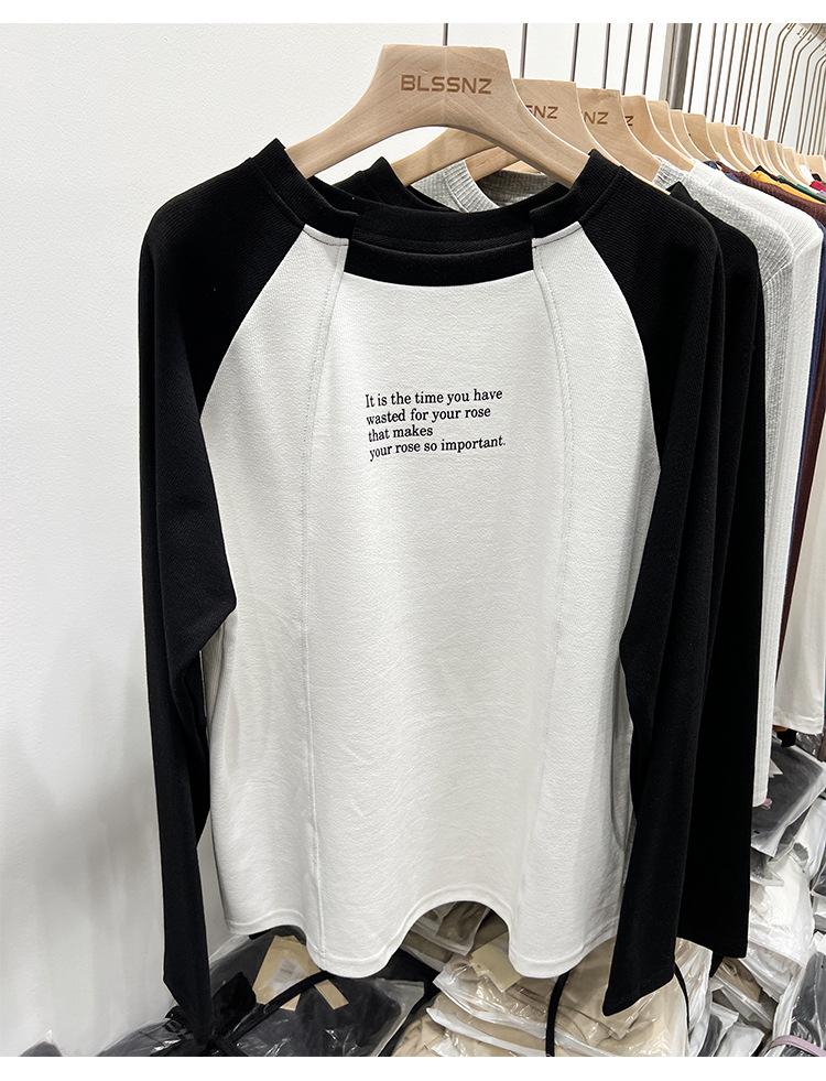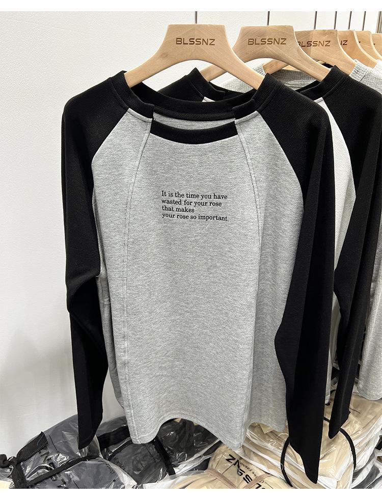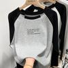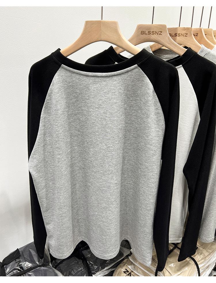 Camiseta de Manga Larga Raglán Empalmada para Mujer, Camiseta Básica de Corte Holgado, Nuevo Estilo Otoño 2023, Diseño Único, Top de Largo Medio