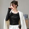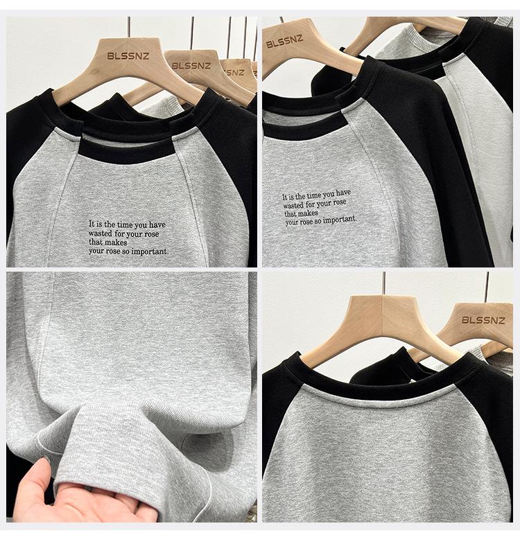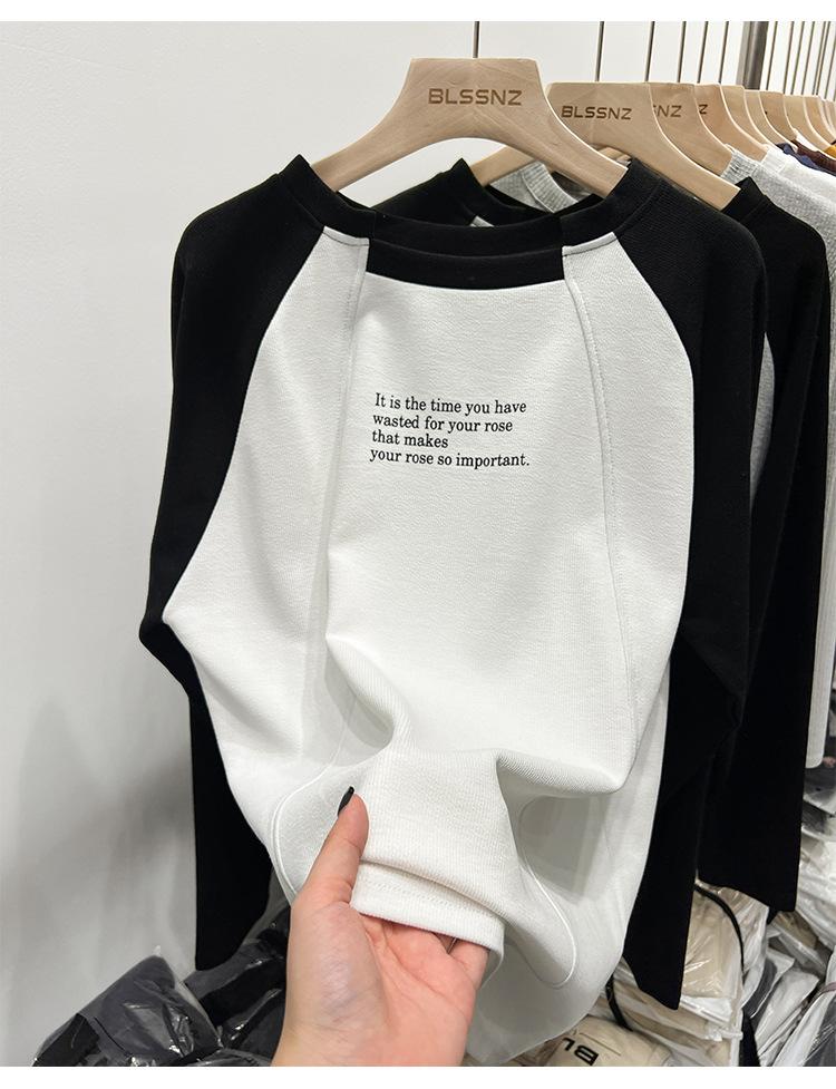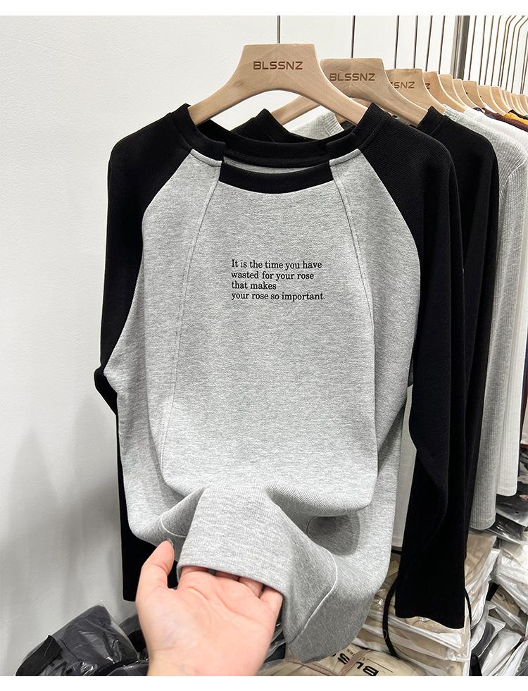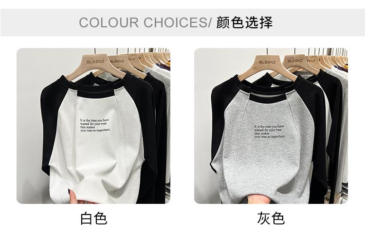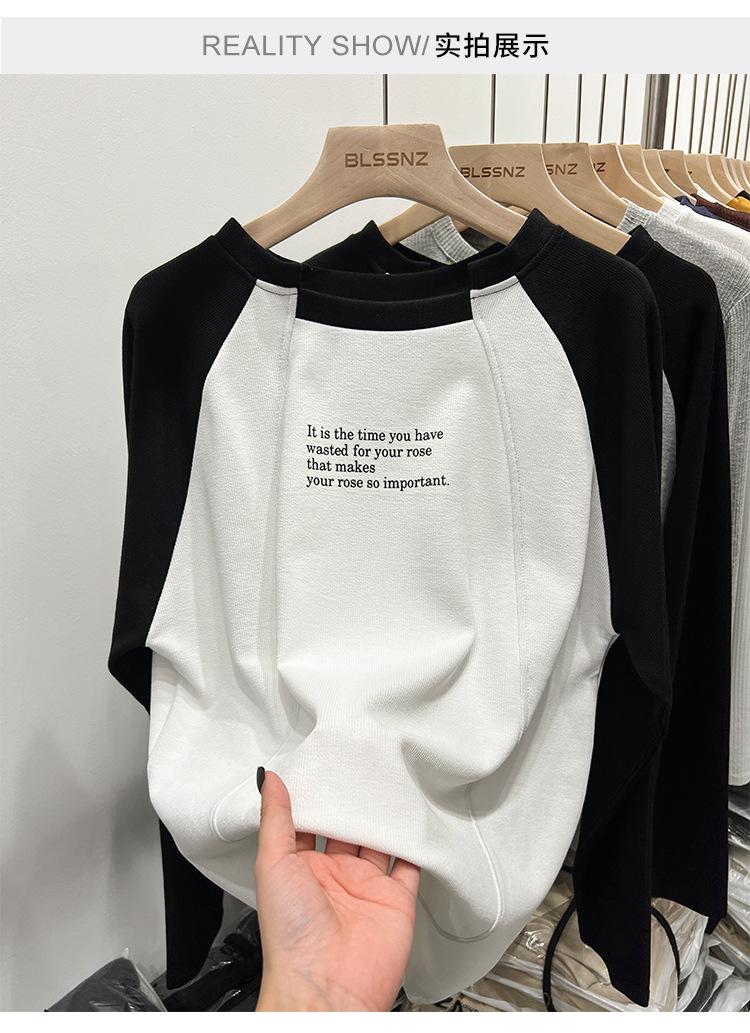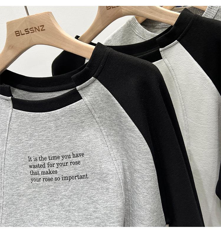 Camiseta de Manga Larga Raglán Empalmada para Mujer, Camiseta Básica de Corte Holgado, Nuevo Estilo Otoño 2023, Diseño Único, Top de Largo Medio