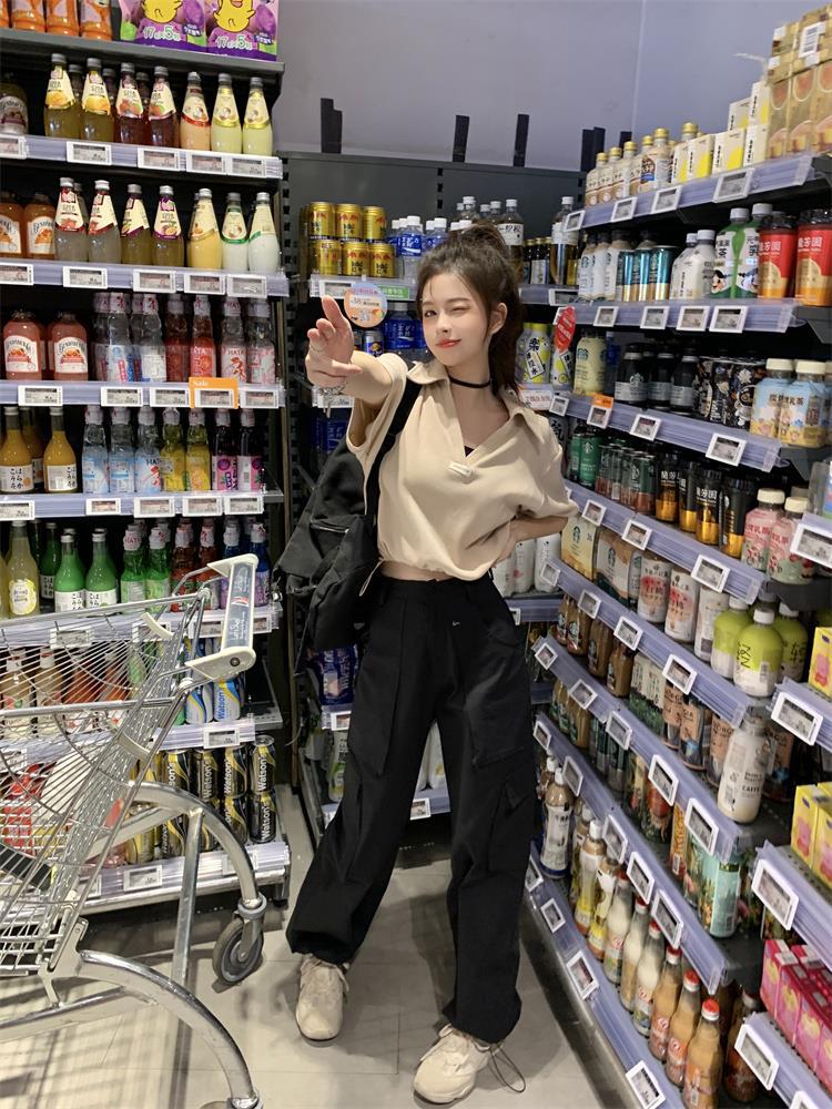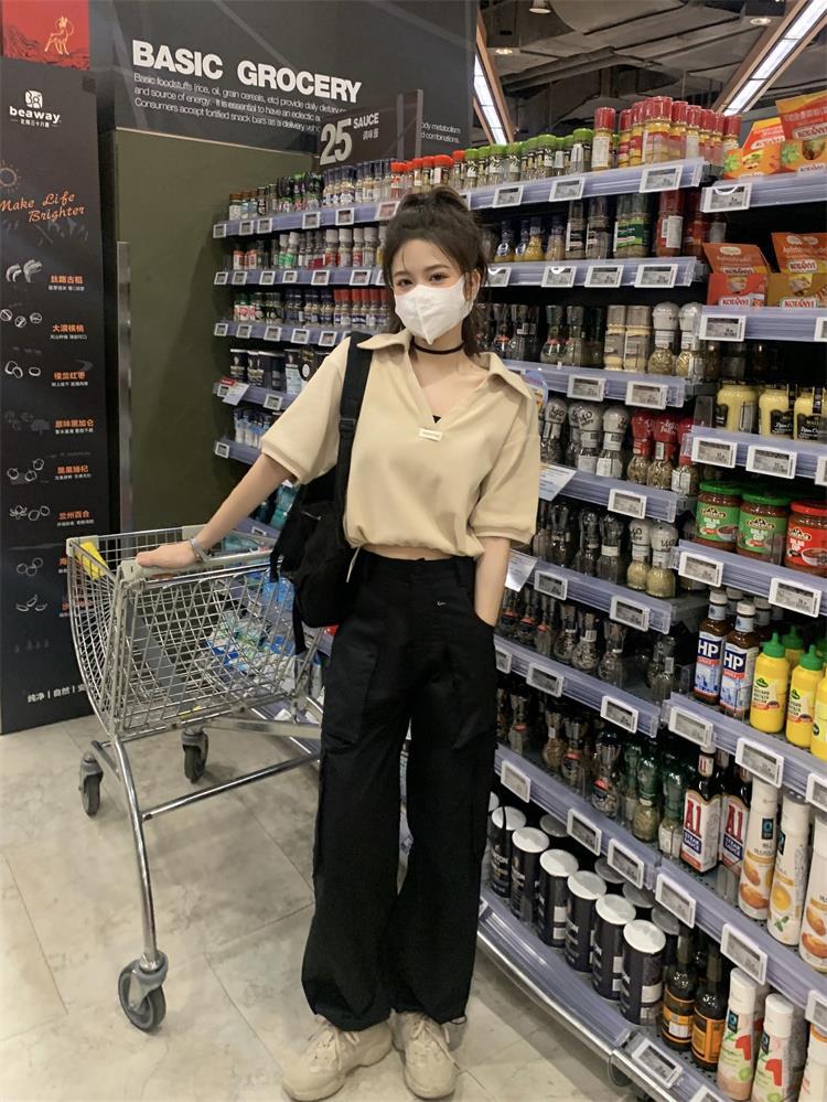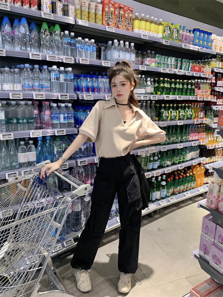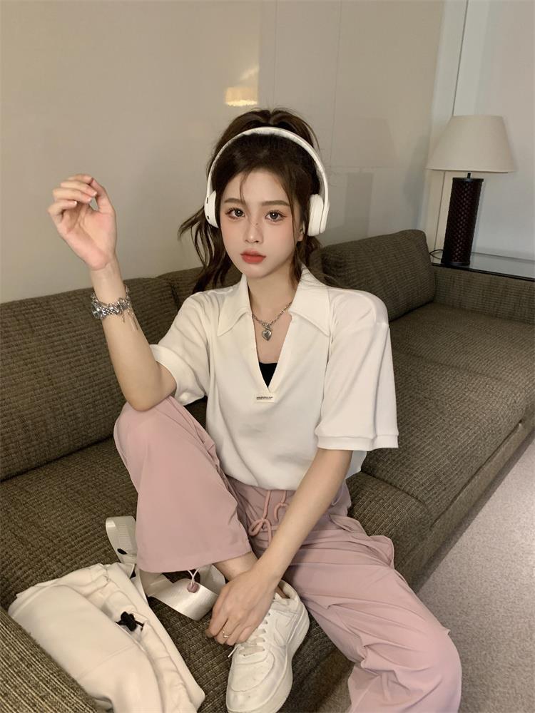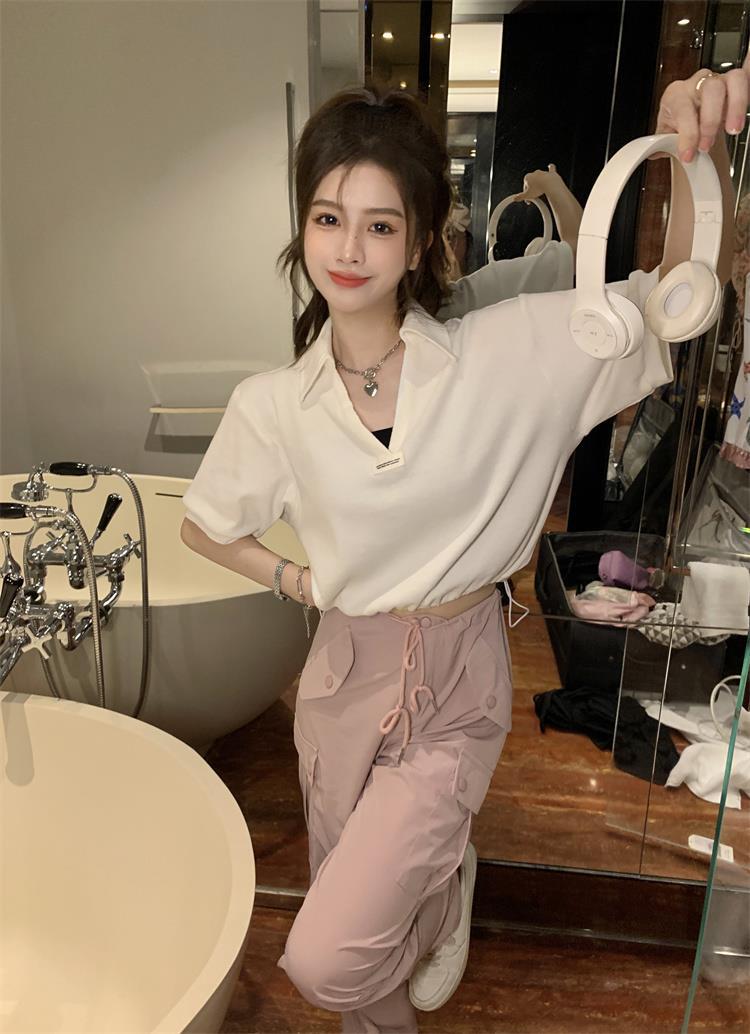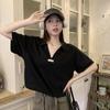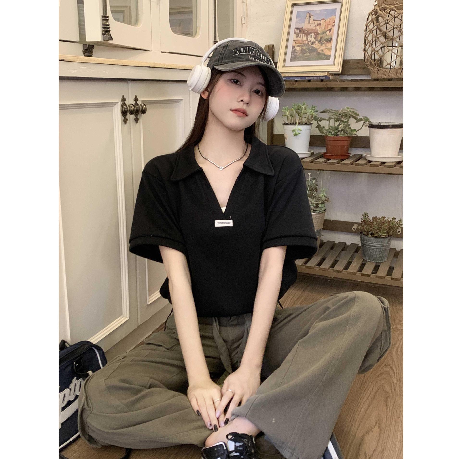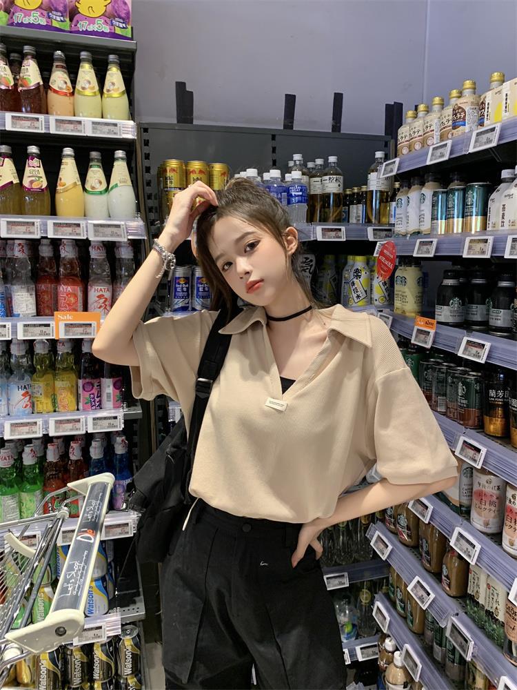 Cuello en V Solapa Manga Corta Mujer Coreano Verano Nuevo Diseño Estudiante Nicho Corto Cuello Polo Estación Europea Top