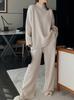 Conjunto de dos piezas de jersey y pantalones anchos de cuello alto para mujer, otoño e invierno 2023, informal, holgado, a la moda, con cuello alto y pierna ancha